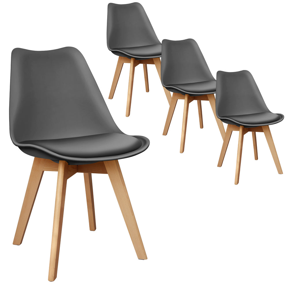 ALFORDSON 4x Dining Chairs Retro PU Leather Wooden Grey