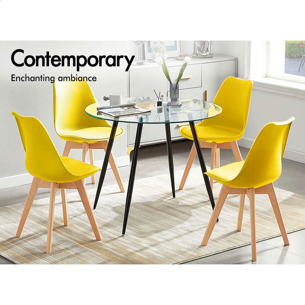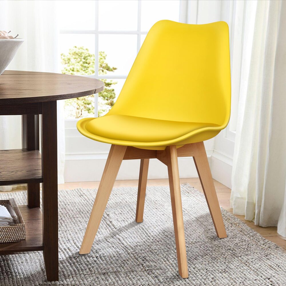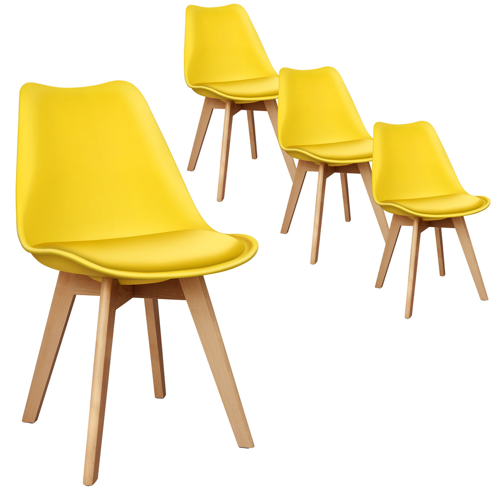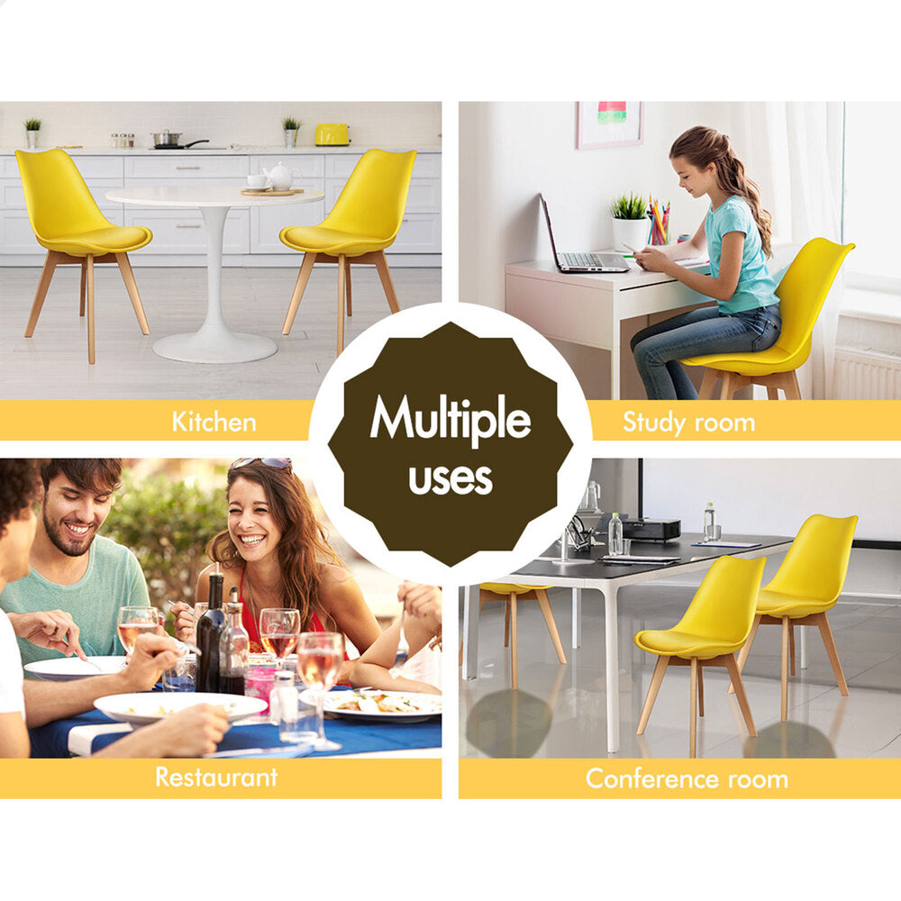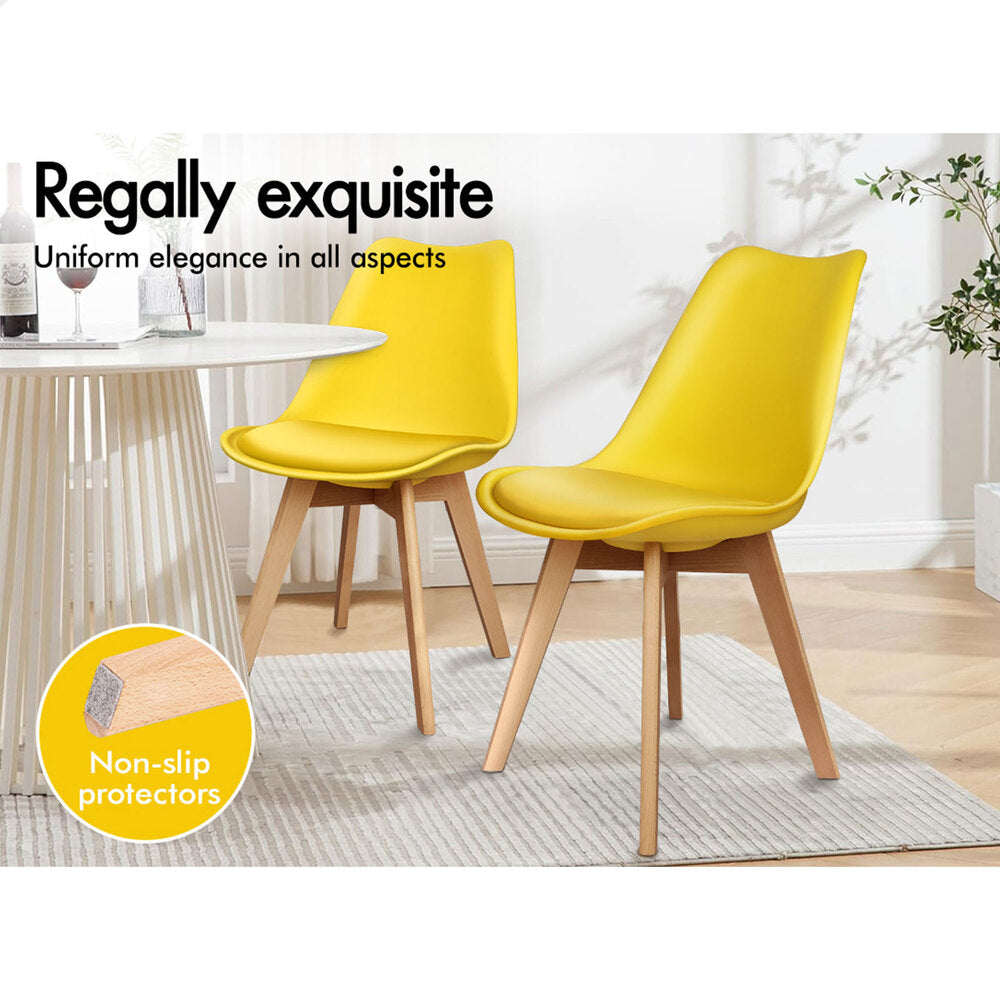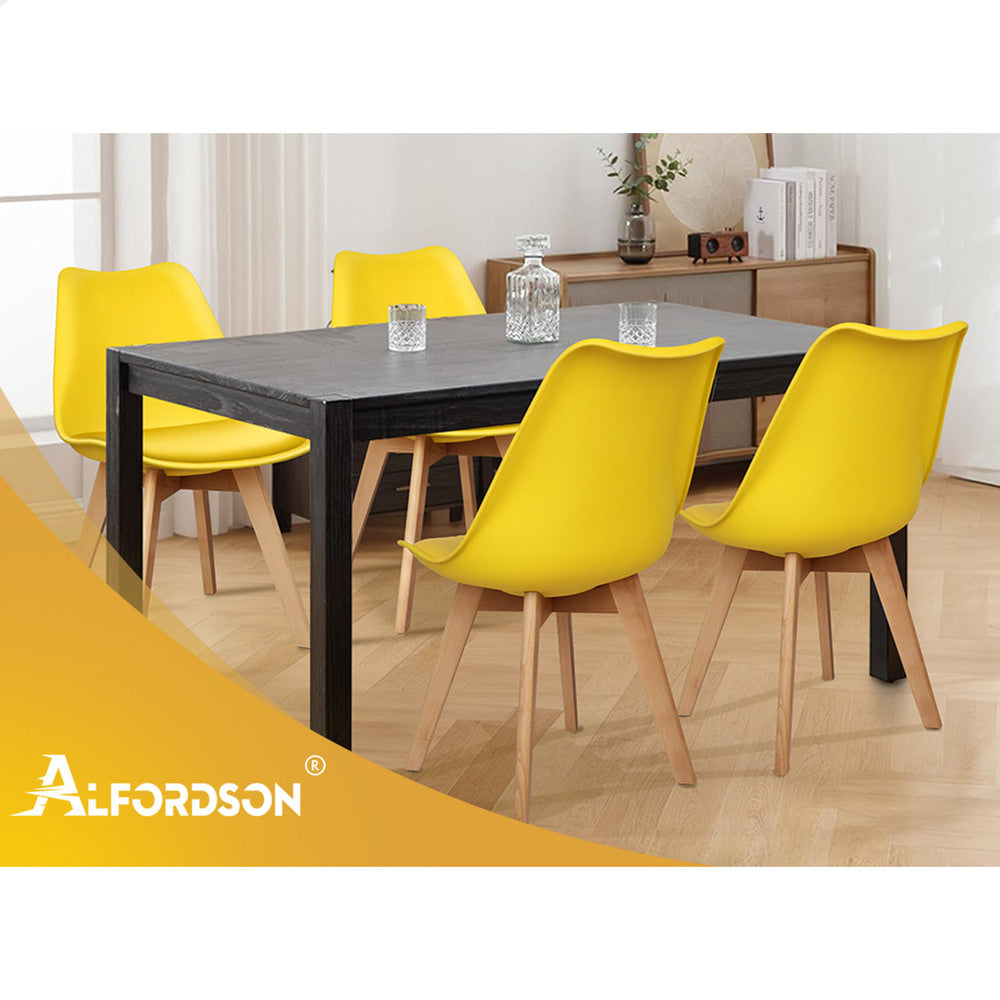 ALFORDSON 4x Dining Chairs Retro PU Leather Wooden Yellow