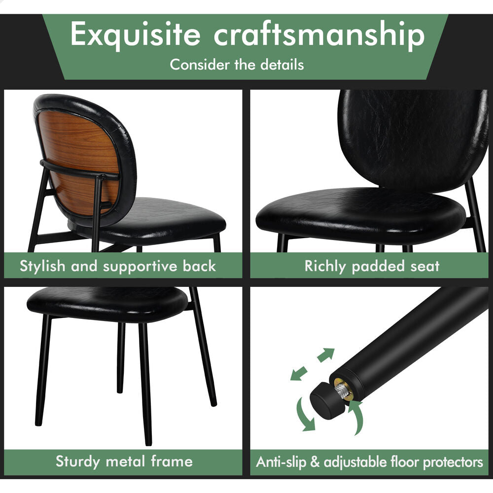 Ultimate comfort - Upholstered in premium glossy PU leather, the seat and backrest are generously padded with high-density foam, providing exceptional support and comfort. Combined with its ergonomic design, our chair offers a delightful seating experience so that you and your guests can enjoy long, leisurely meals without discomfort.