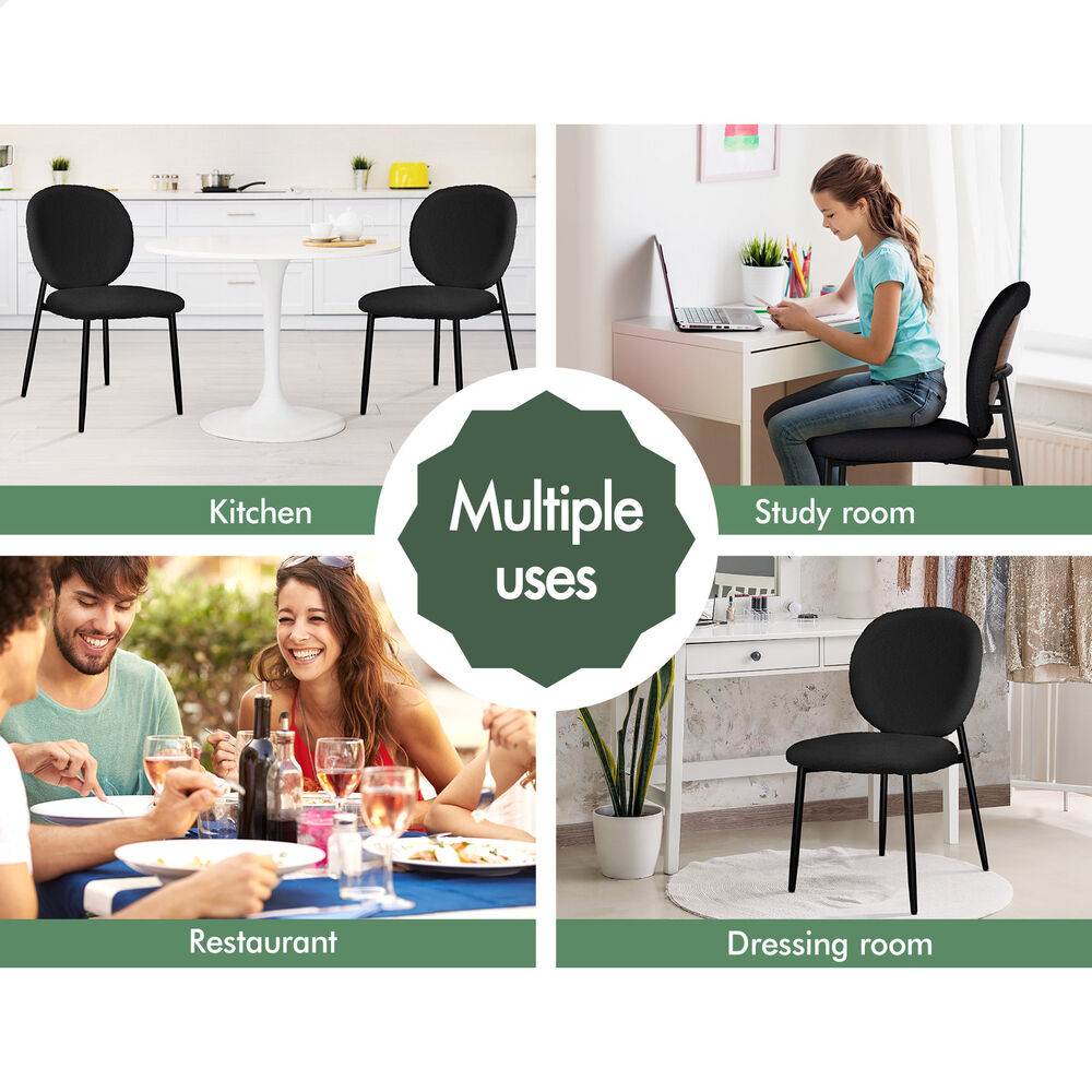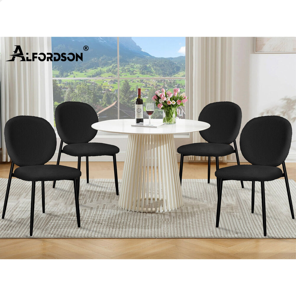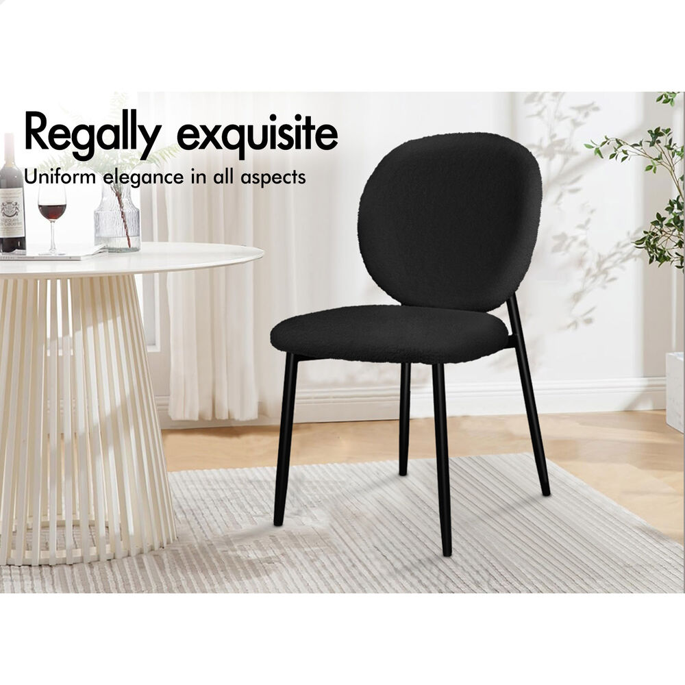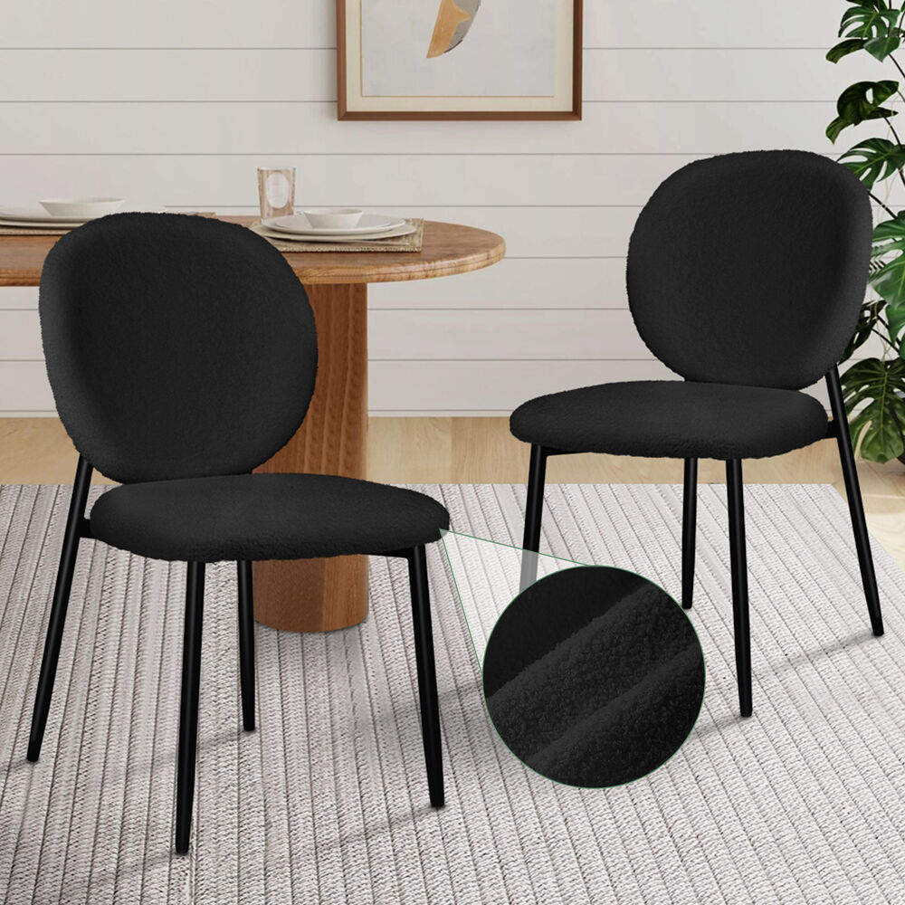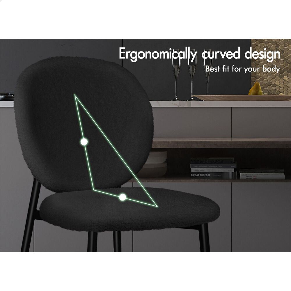 ALFORDSON 2x Dining Chairs Cafe Kitchen Lounge Curved Wooden Back Sherpa Black