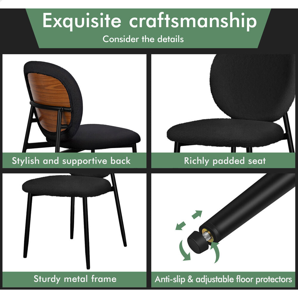 Ultimate comfort - Upholstered in premium sherpa fabric, the seat and backrest are generously padded with high-density foam, providing exceptional support and comfort. Combined with its ergonomic design, our chair offers a delightful seating experience so that you and your guests can enjoy long, leisurely meals without discomfort.