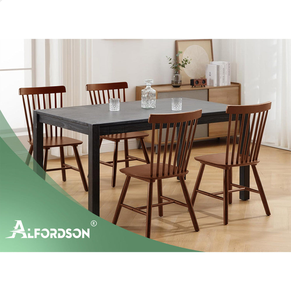 ALFORDSON 2x Dining Chairs Retro Walnut Modern Seat Dark Oak