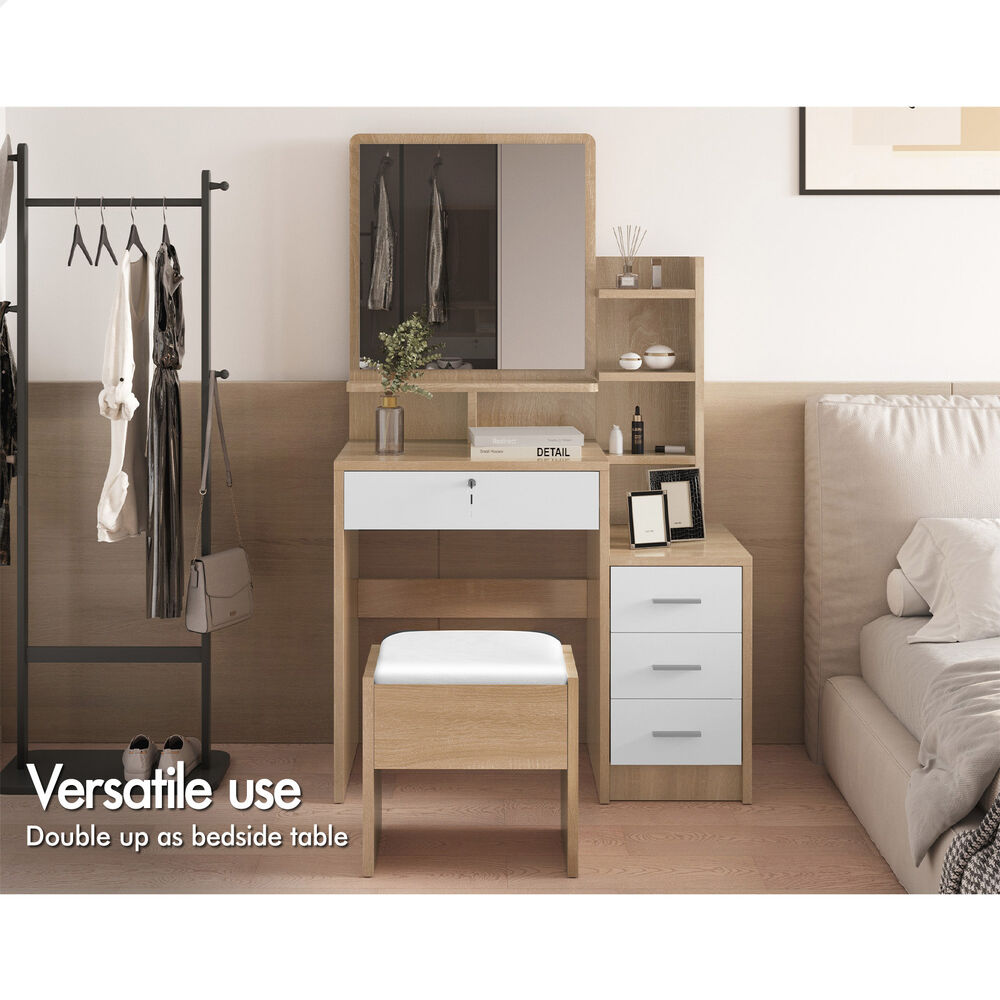 Keep your items organized - It features mutiple shelves and 4 drawers for ample storage space. For items you want to access easily, like make-up products, lotions, or perfumes, you can simply put them on desktop of table. For other items, like jewellery, you can store them away in drawers so they won't gather dust. Featuring a side cabinet, this dressing table can serve as nightstand next to your bed for use.