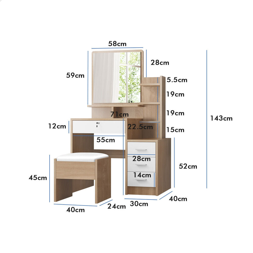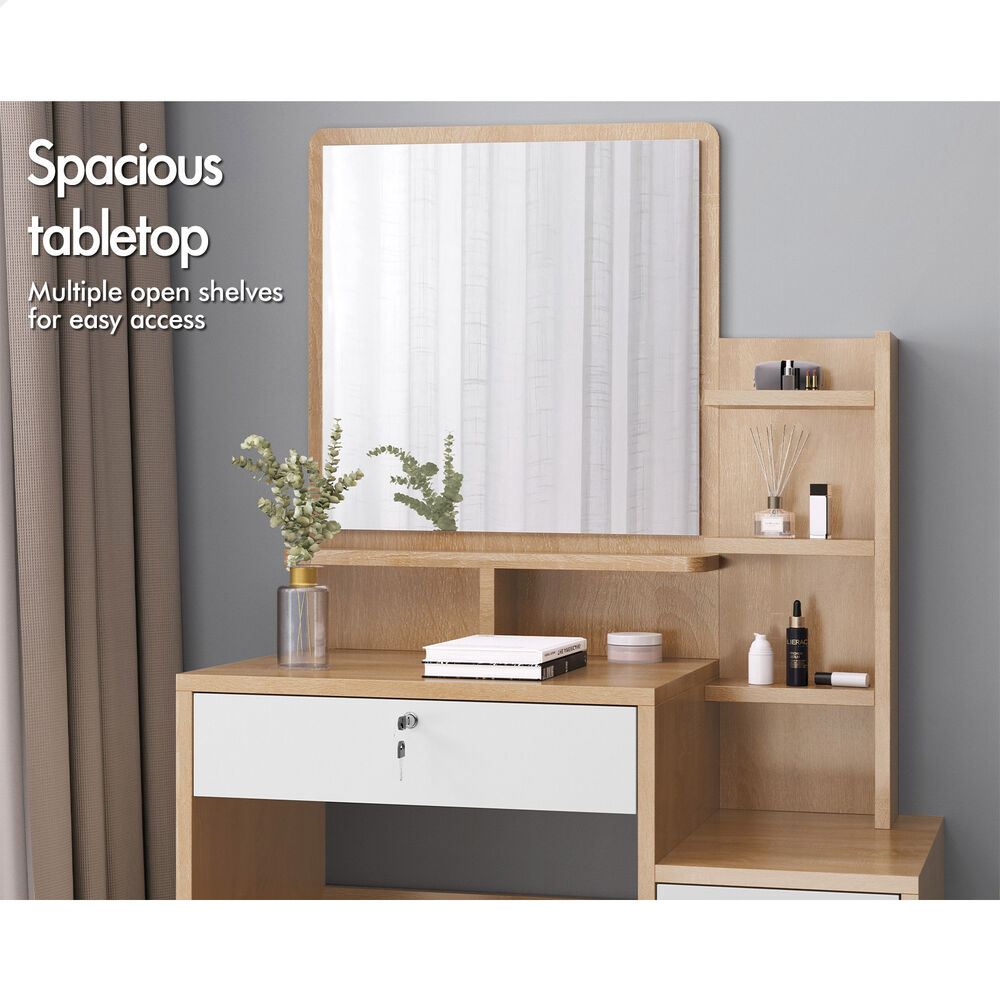 ALFORDSON Dressing Table Set Stool Side Cabinet Oak