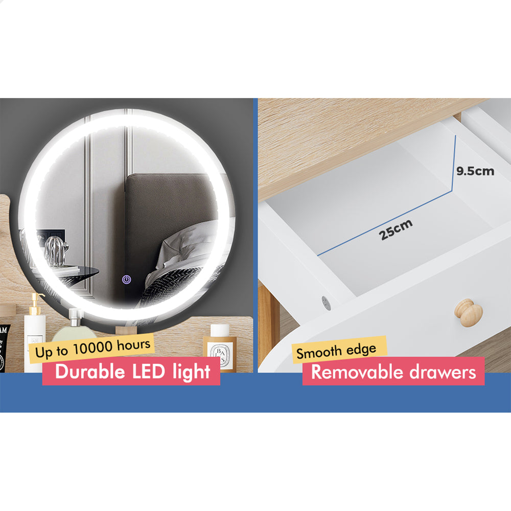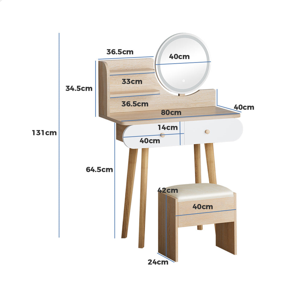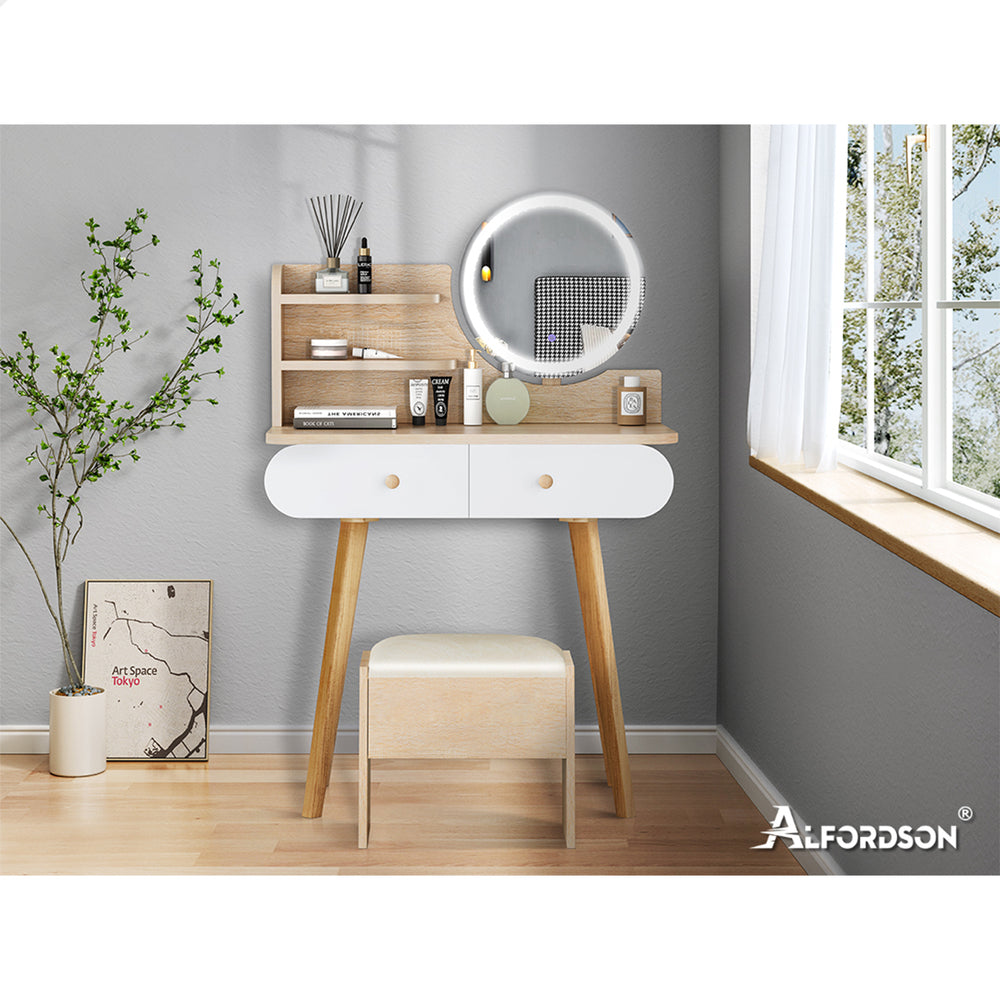 ALFORDSON Dressing Table Stool Set Makeup Mirror Vanity Desk LED Lights Wood
