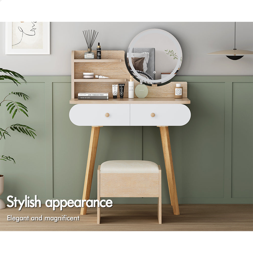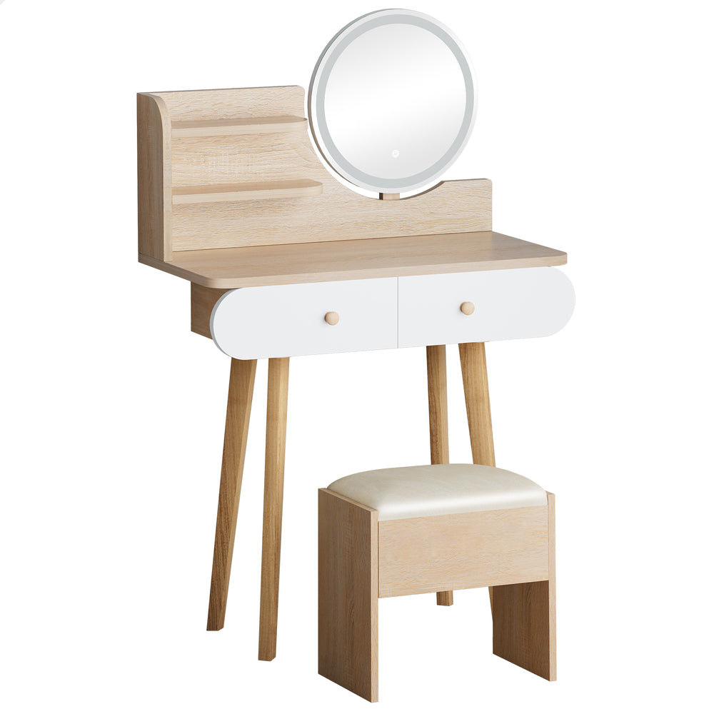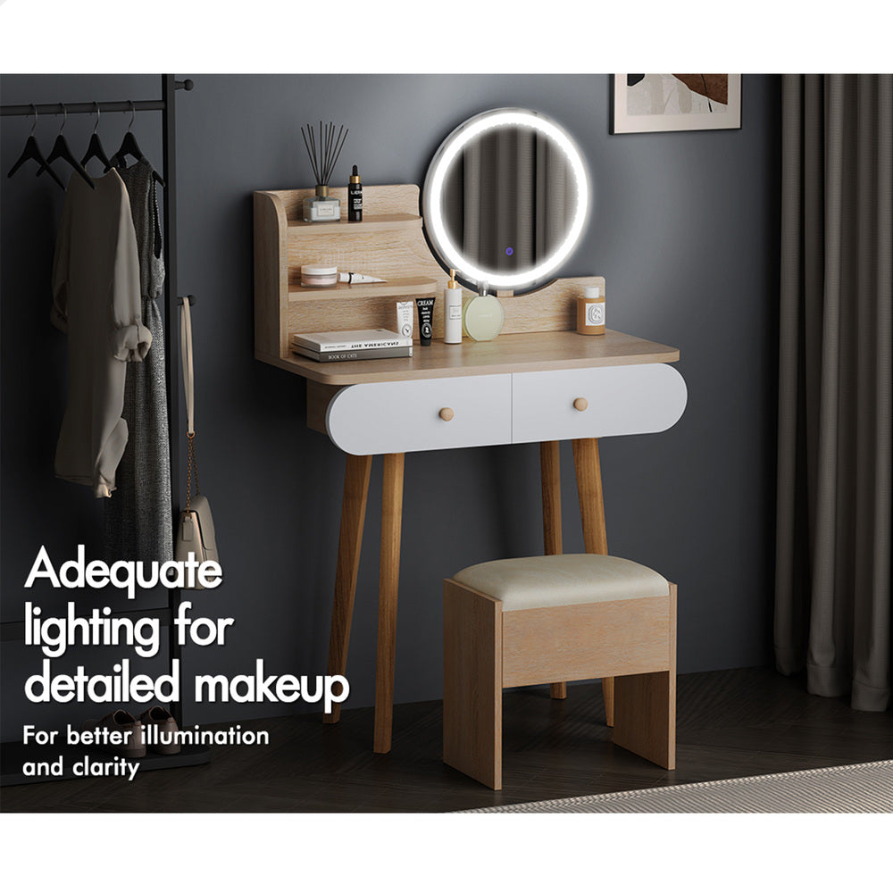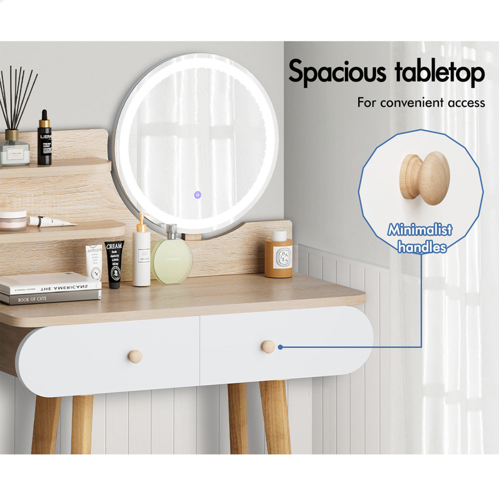 ALFORDSON Dressing Table Stool Set Makeup Mirror Vanity Desk LED Lights Wood