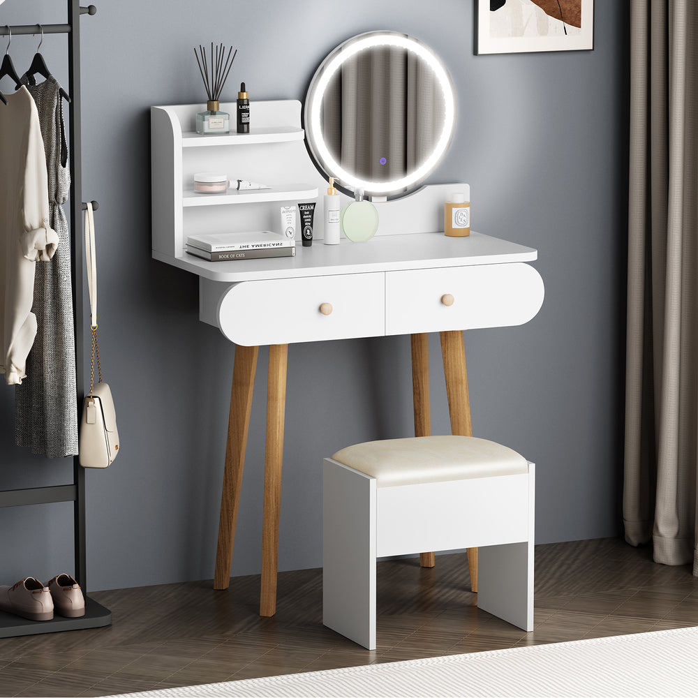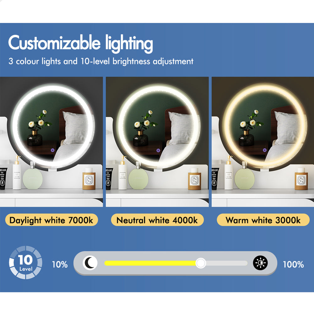 Customizable lighting - Good lighting is important to achieve your perfect glam look. The dressing table features 3 LED light colours - neutral white, warm white, and daylight white and the brightness of each colour can be adjusted in 10 levels, providing adequate light to complete your make-up.