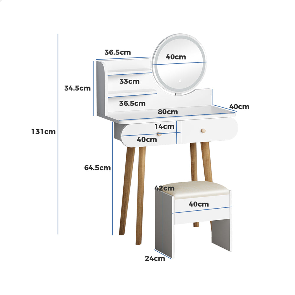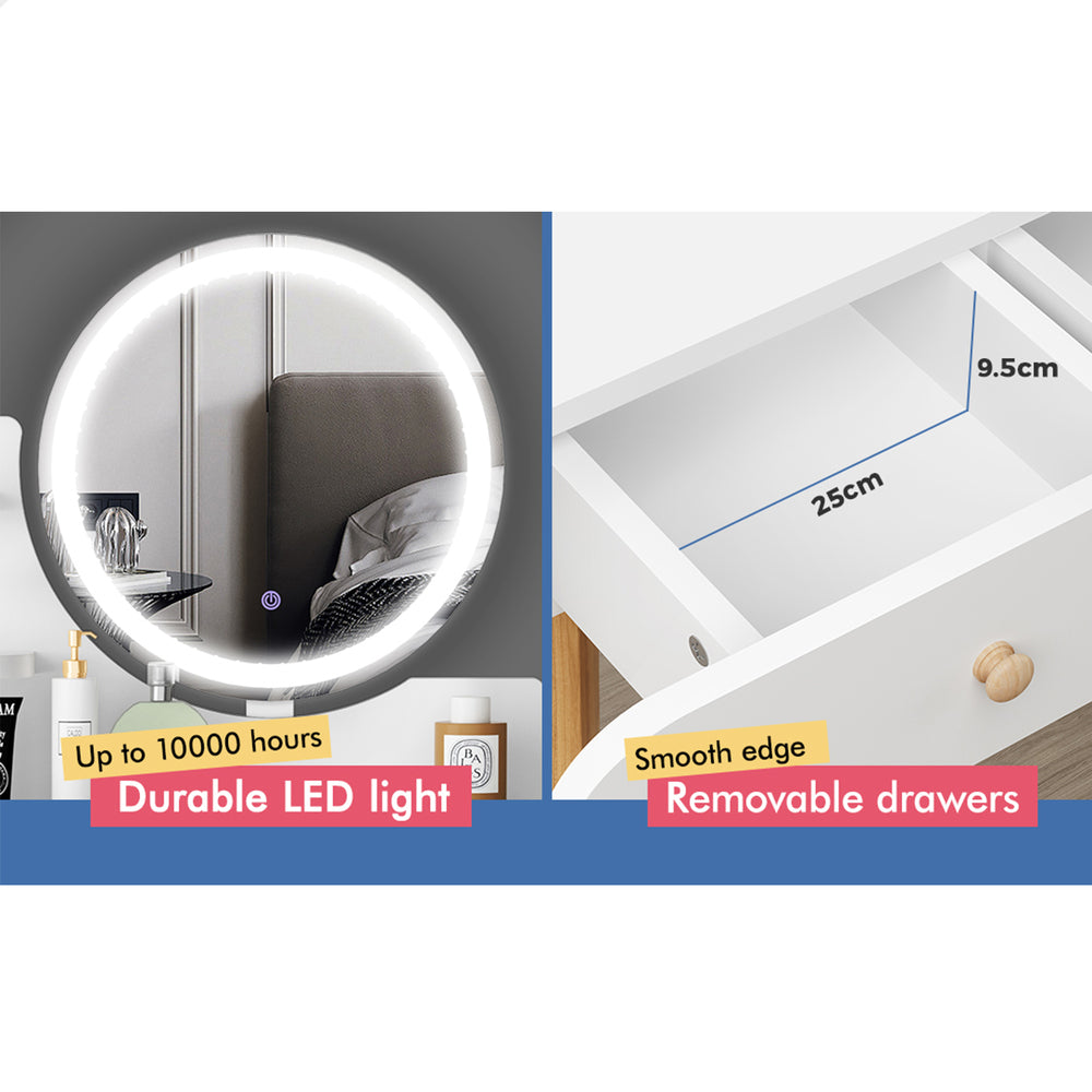 ALFORDSON Dressing Table Stool Set Makeup Mirror Vanity Desk LED Lights White