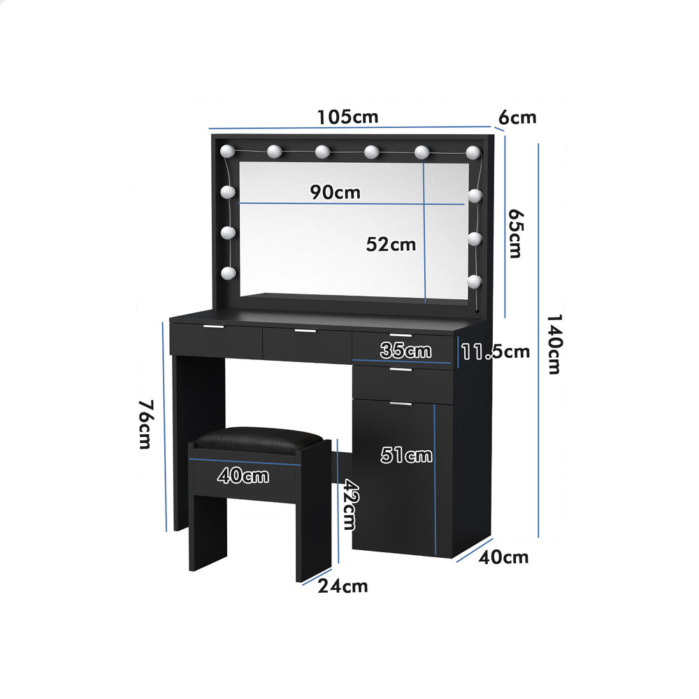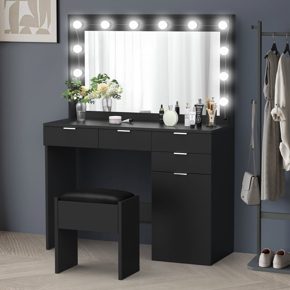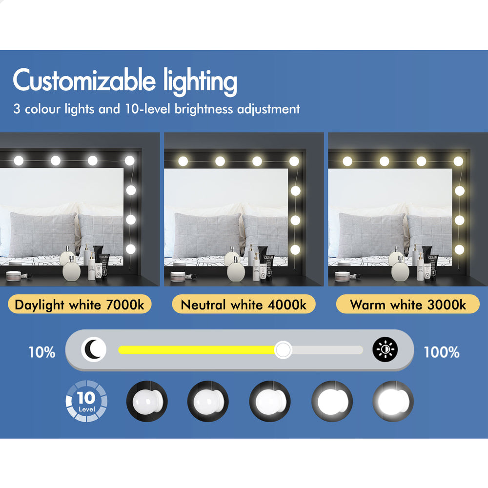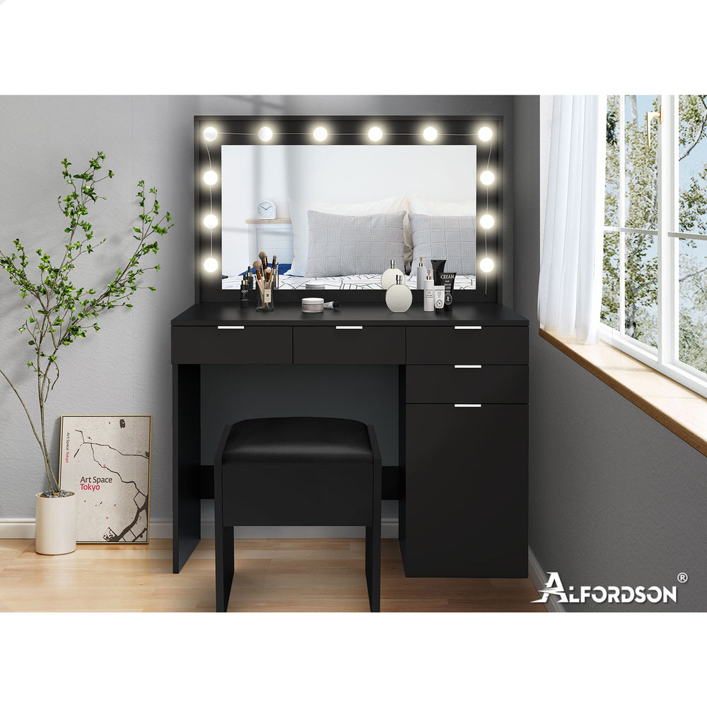 ALFORDSON Dressing Table Stool Set Makeup Mirror Desk 12 LED Bulbs Black