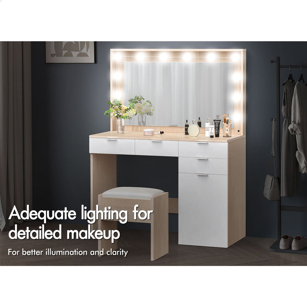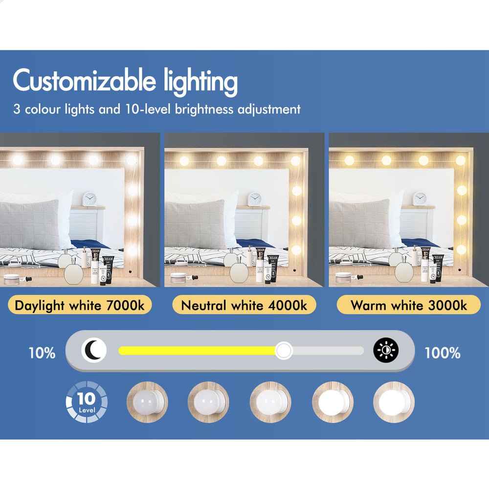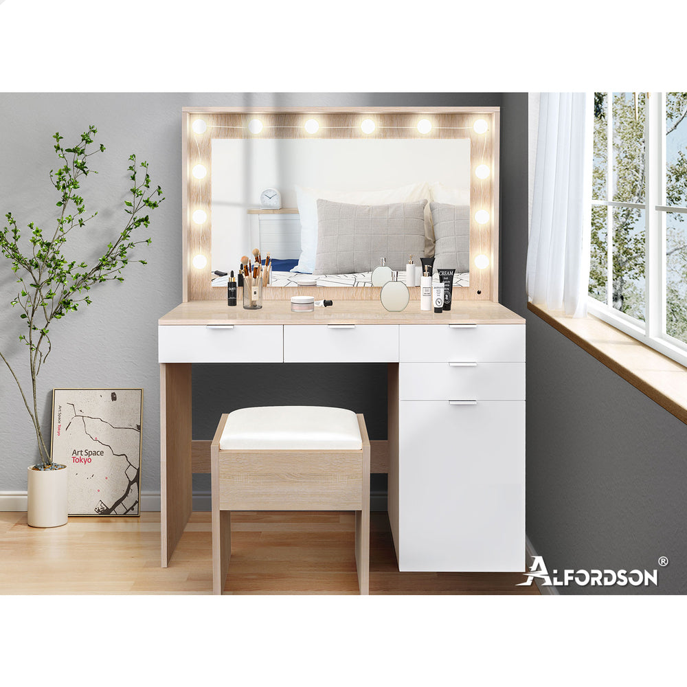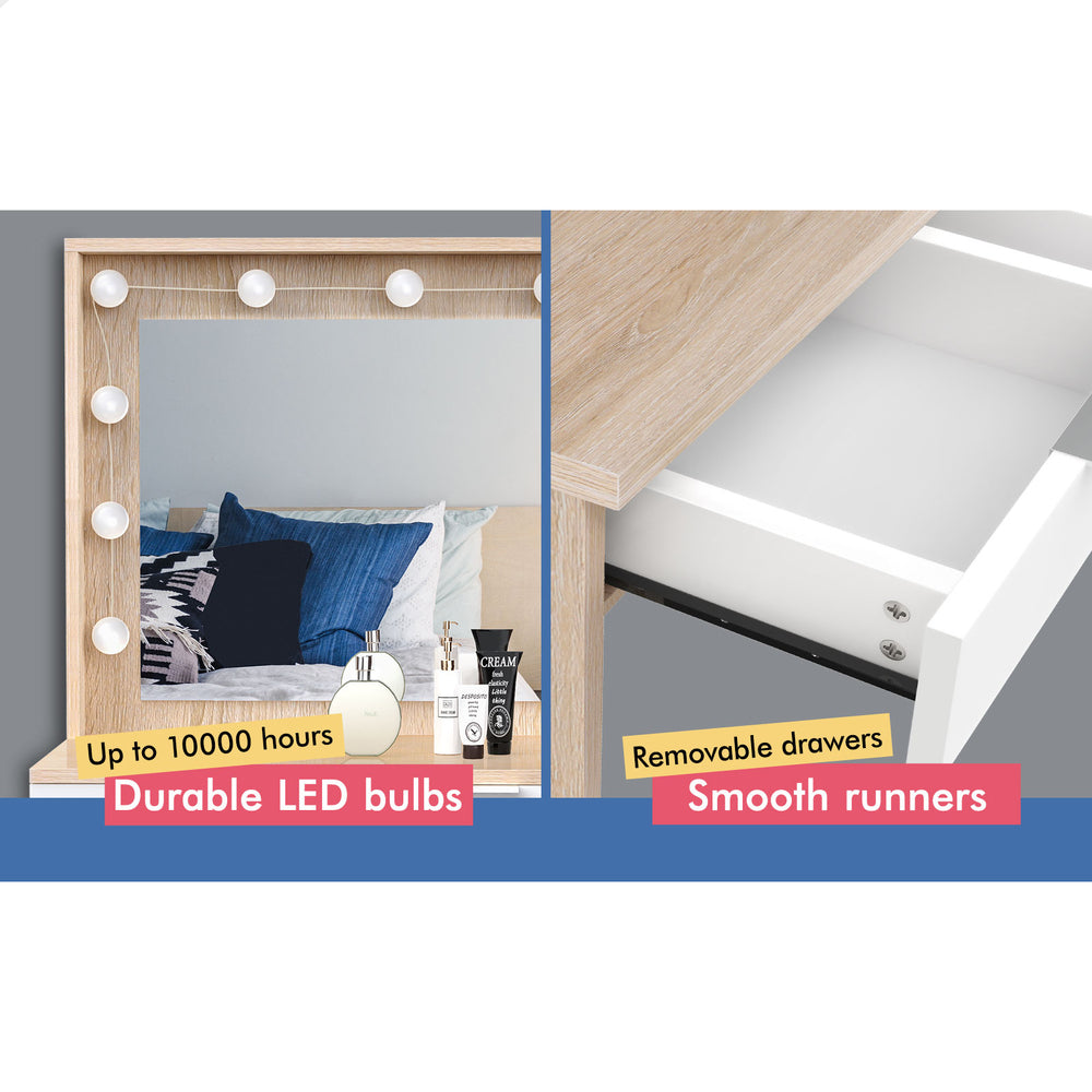 ALFORDSON Dressing Table Stool Set Makeup Mirror Desk 12 LED Bulbs Oak