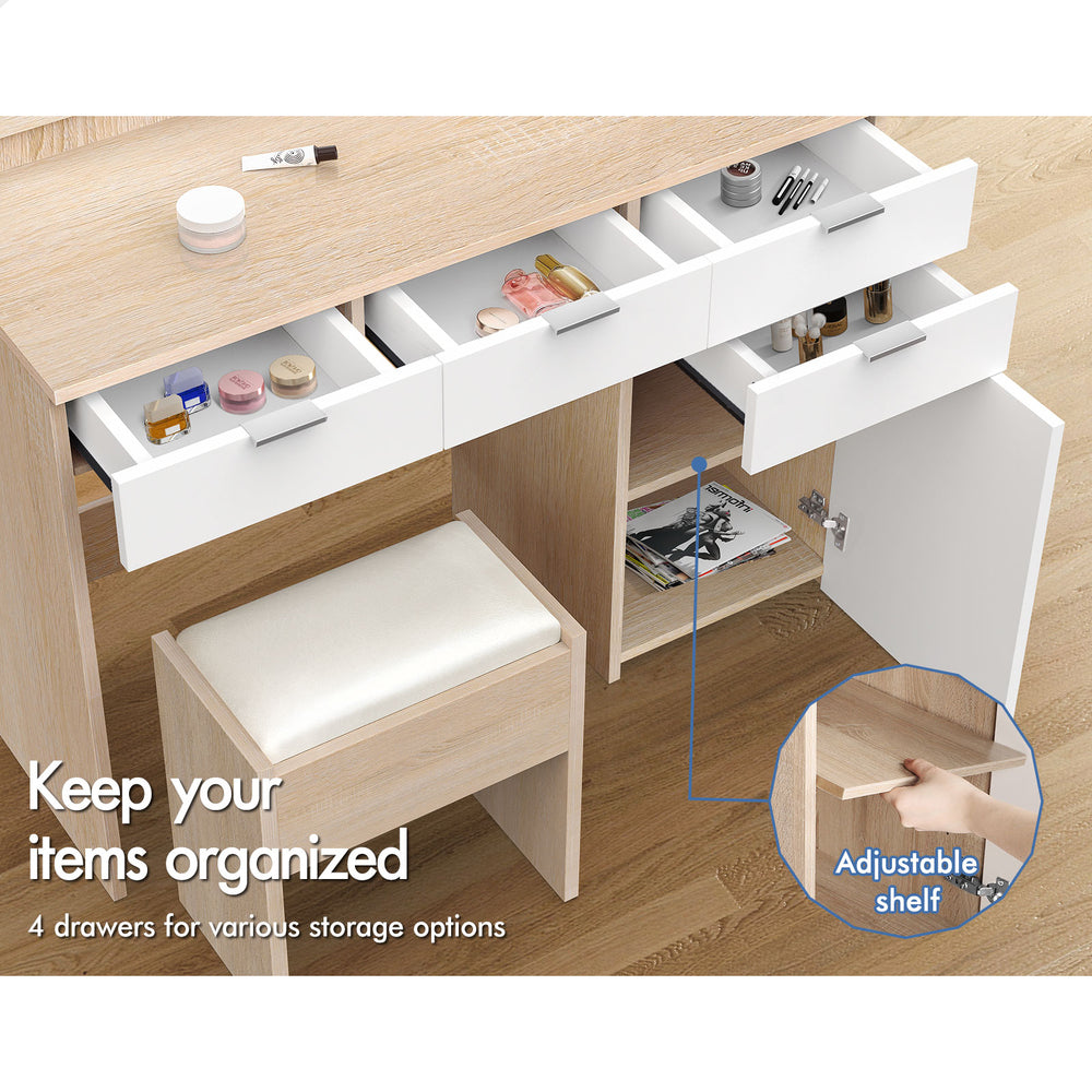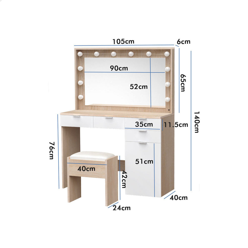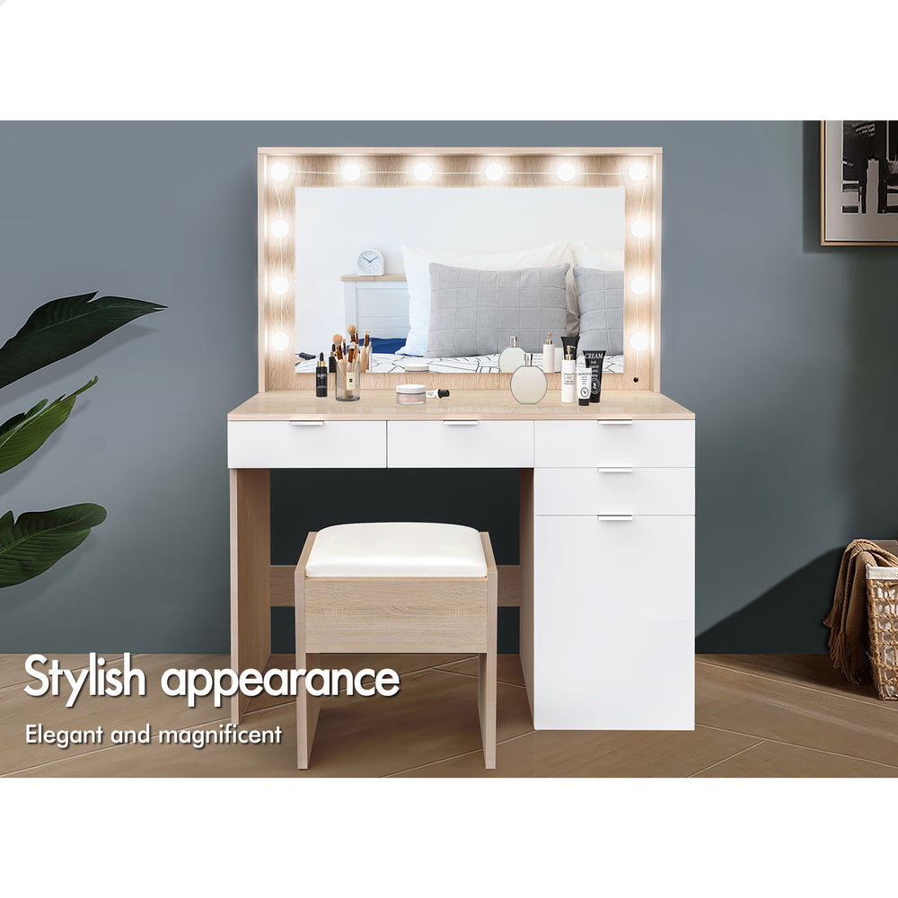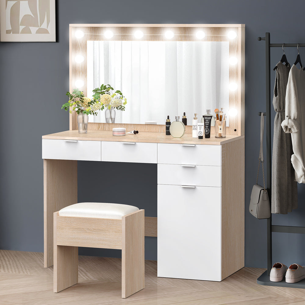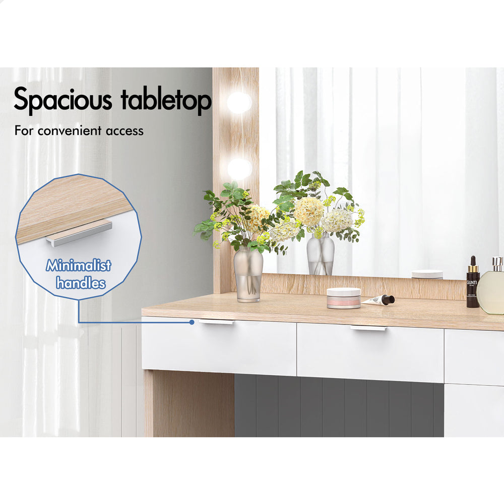 ALFORDSON Dressing Table Stool Set Makeup Mirror Desk 12 LED Bulbs Oak