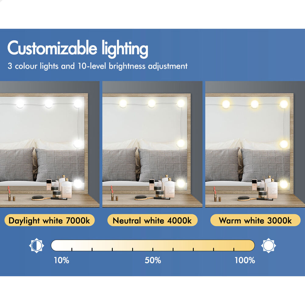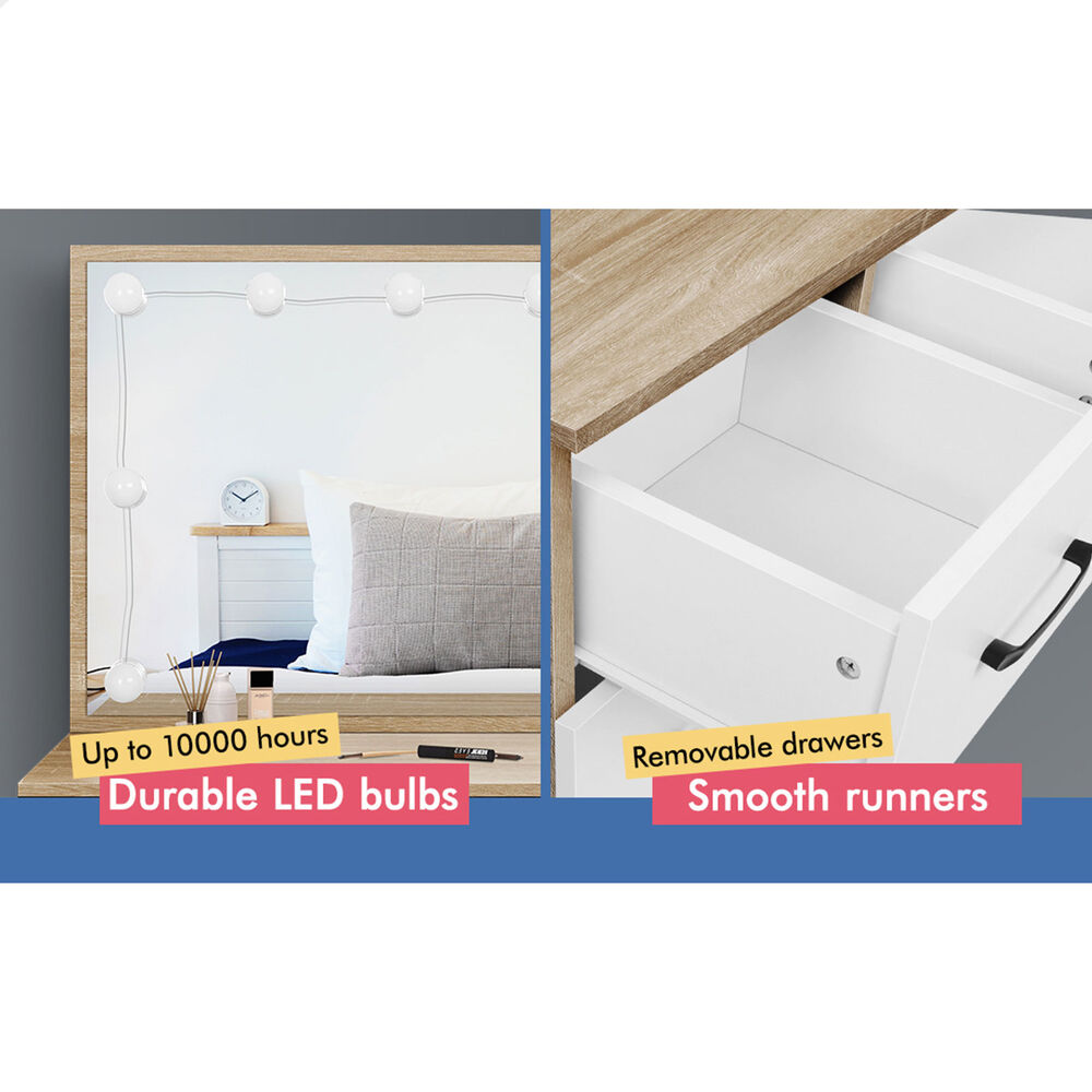 ALFORDSON Dressing Table Stool Set Makeup Mirror Desk LED 10 Bulbs Oak