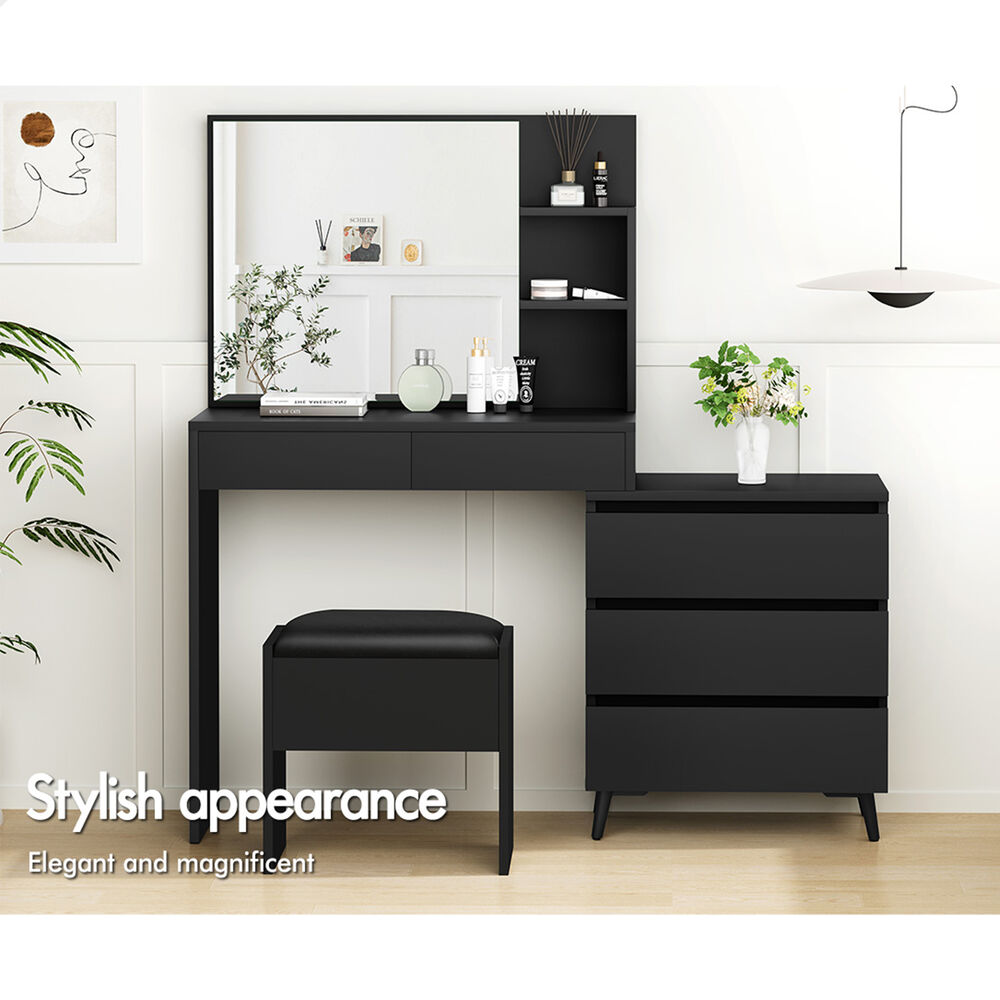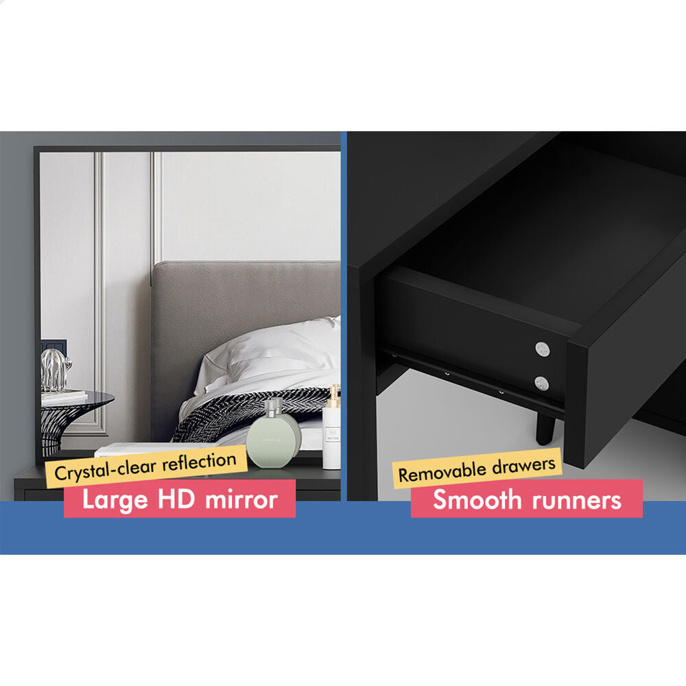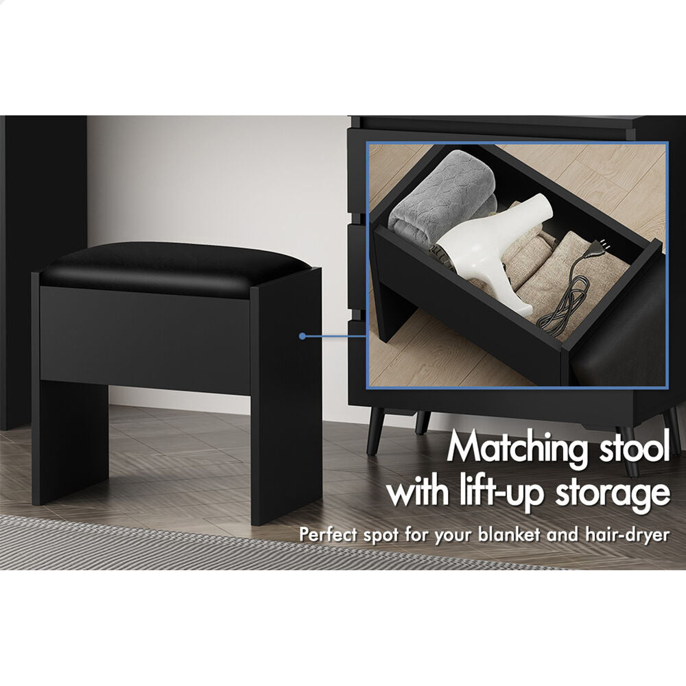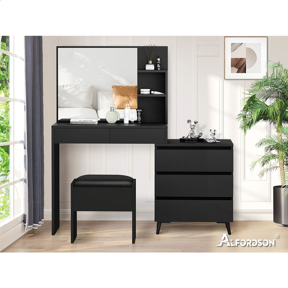 ALFORDSON Dressing Table Stool Set Makeup Mirror Desk Storage Cabinet Black