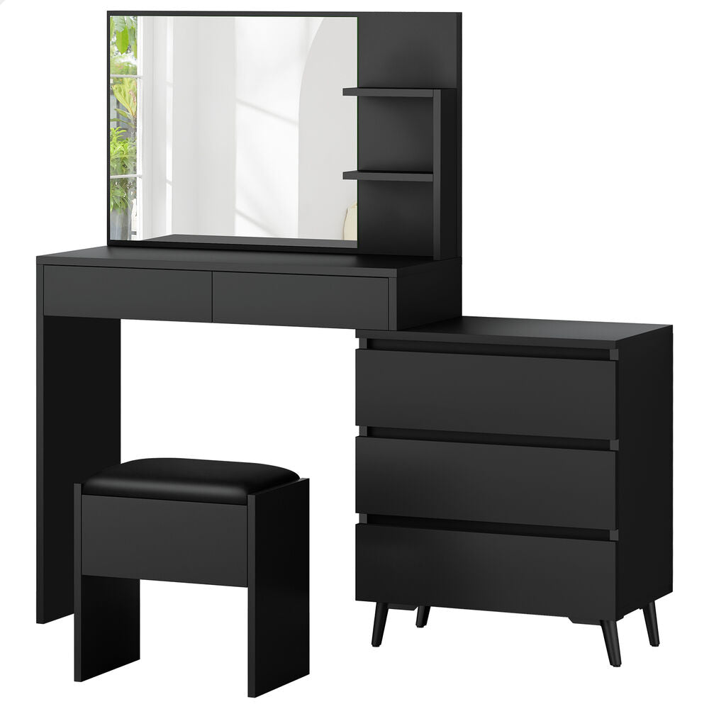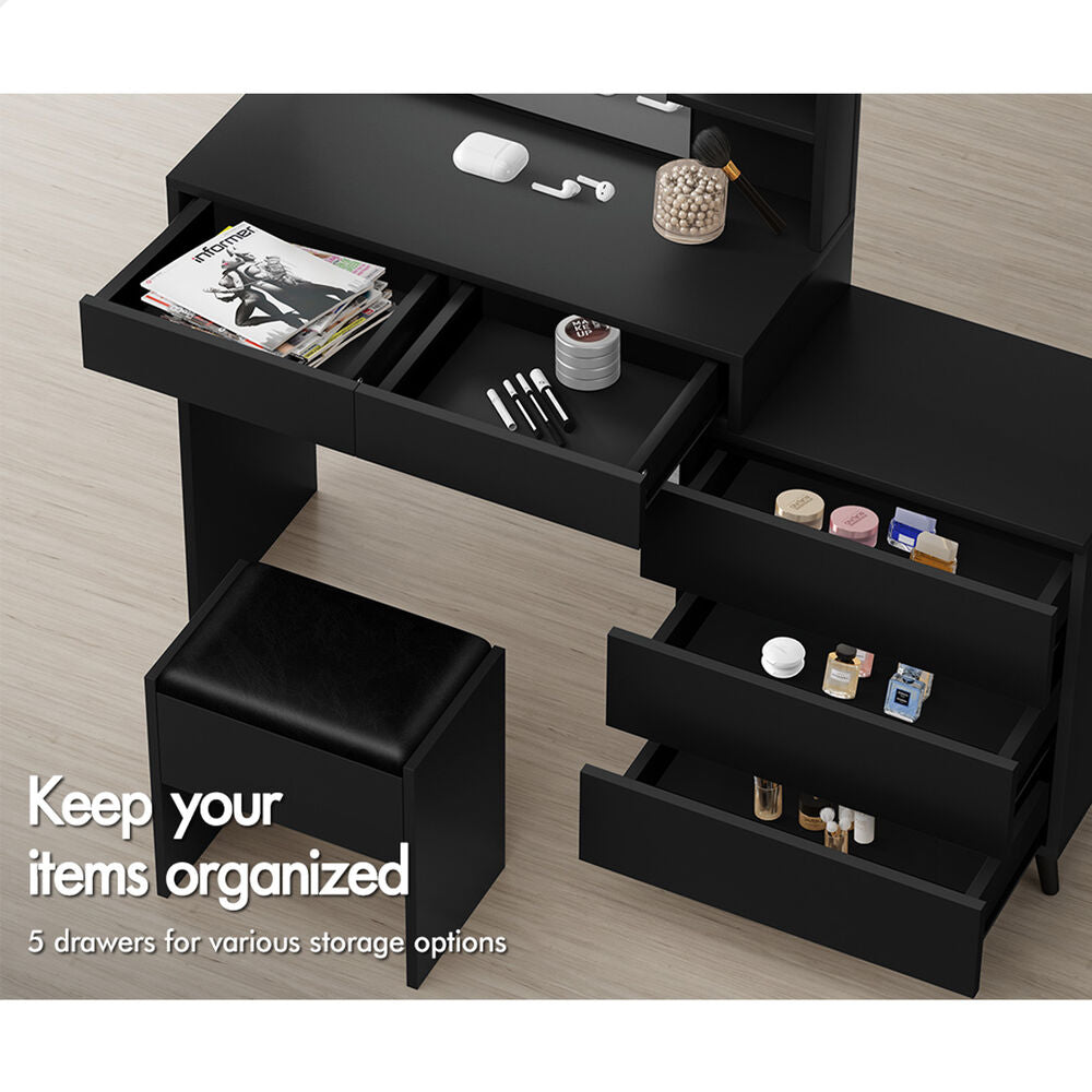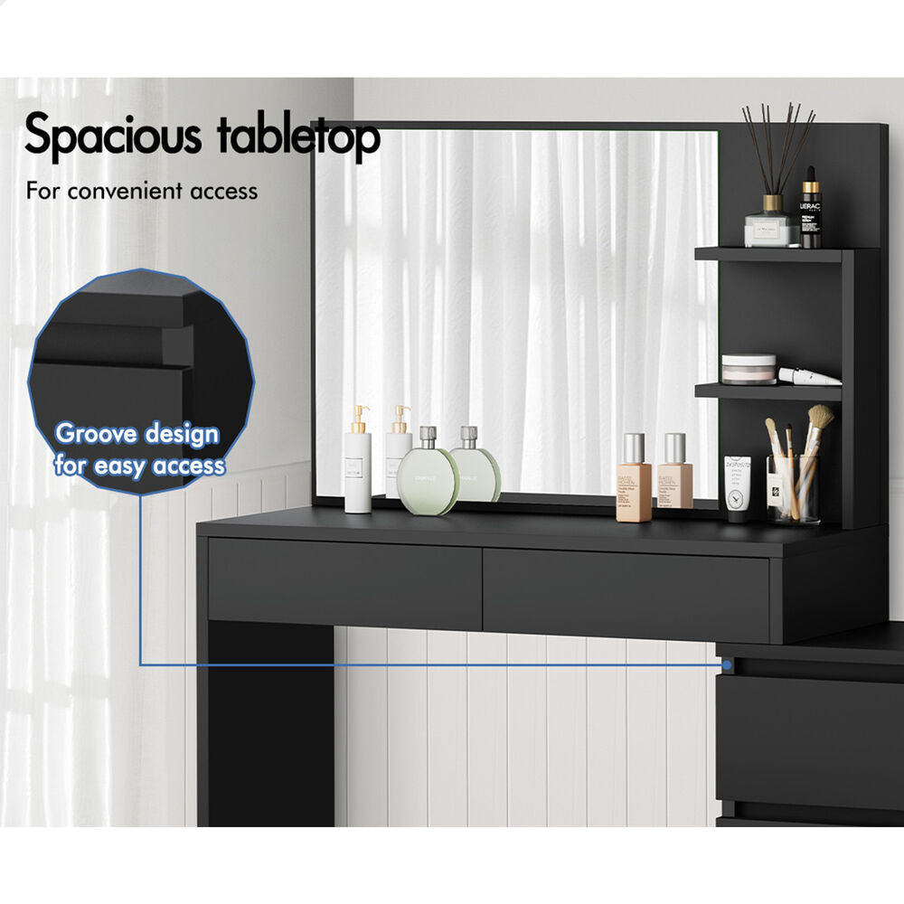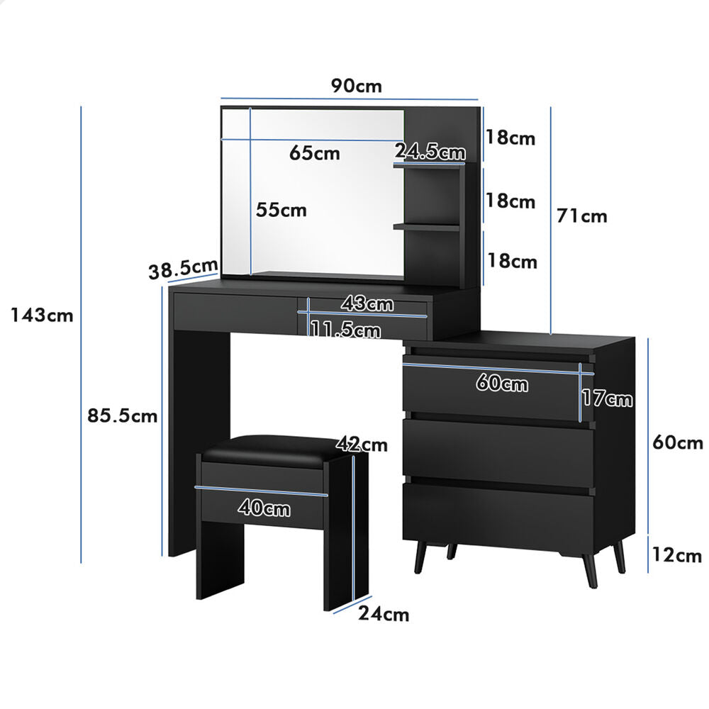 ALFORDSON Dressing Table Stool Set Makeup Mirror Desk Storage Cabinet Black