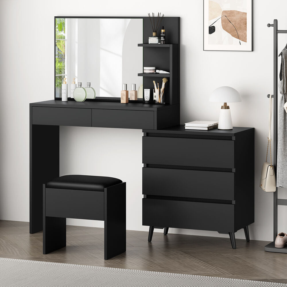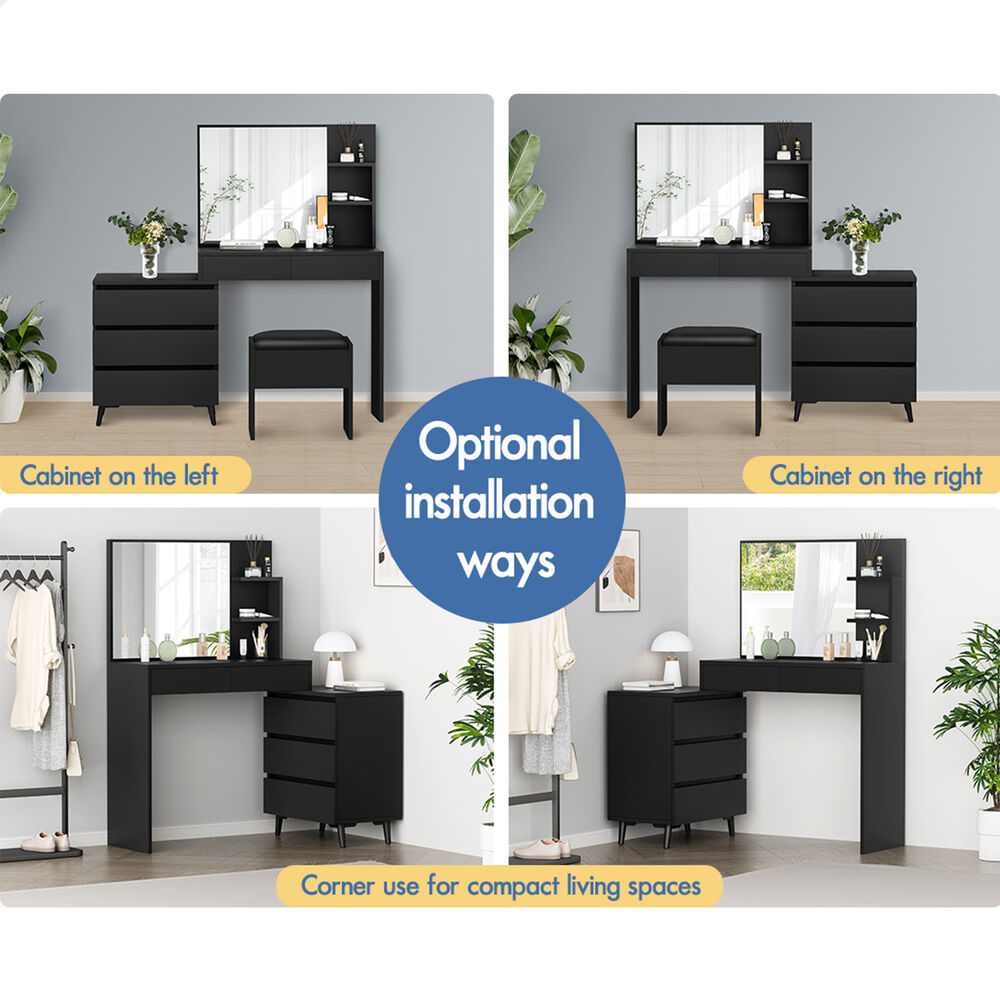 Adjustable side cabinet - With compact and flexible design, the dressing table features a movable 3-drawer chest which can be installed on the left or the right to meet your multiple placement needs. More importantly, the width can be adjusted from 90cm to 140cm, making it possible to fully utilize room space.