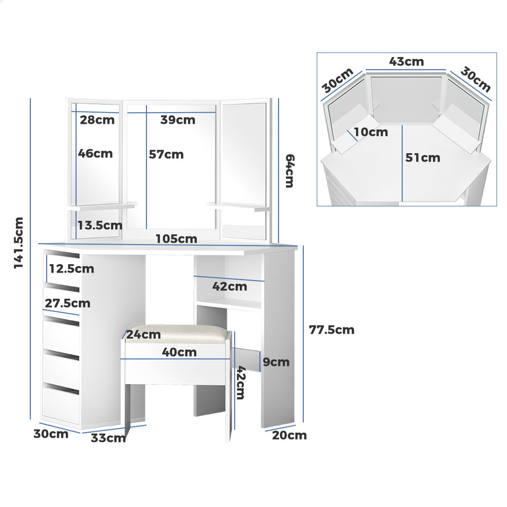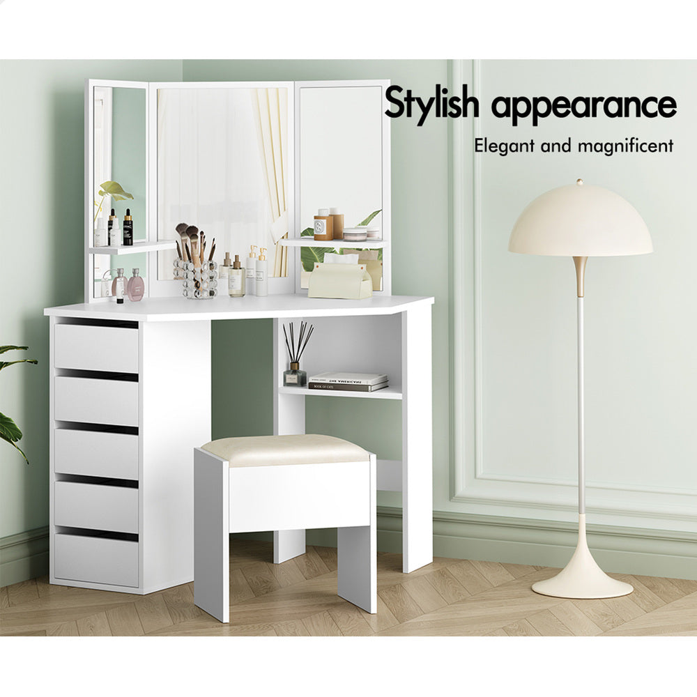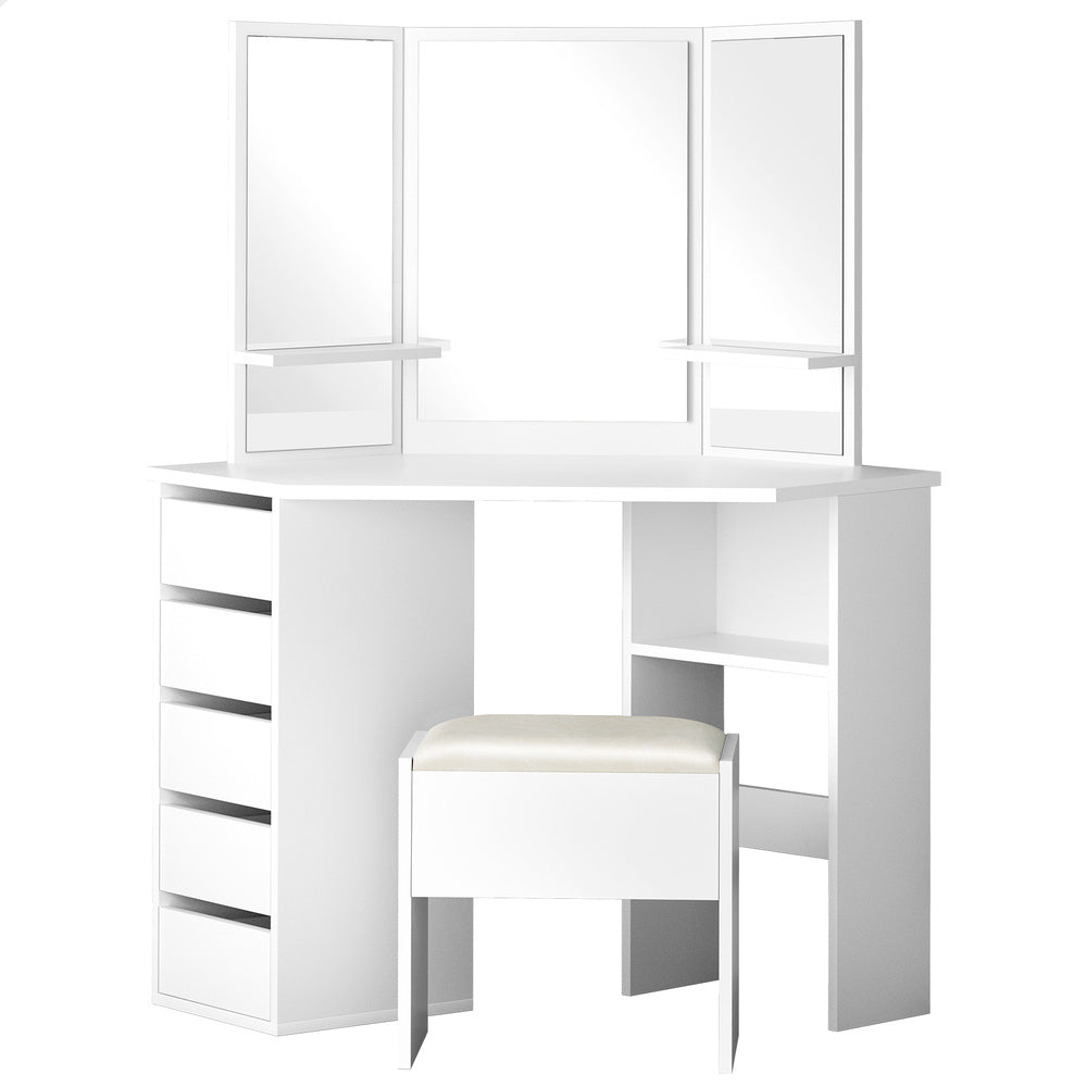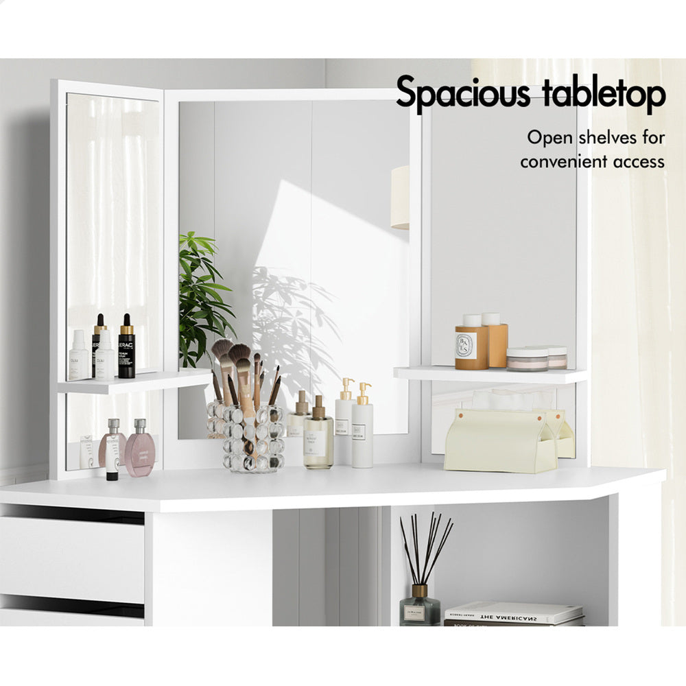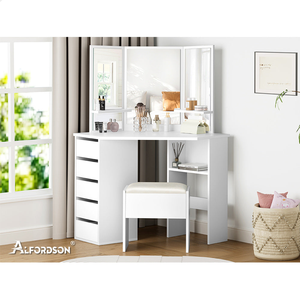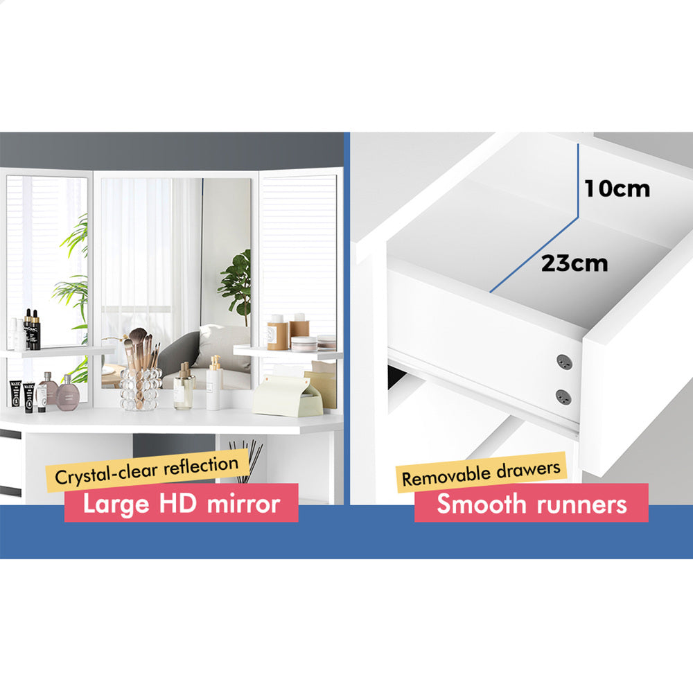ALFORDSON Dressing Table Stool Set Makeup Tri-fold Mirror Vanity Desk White