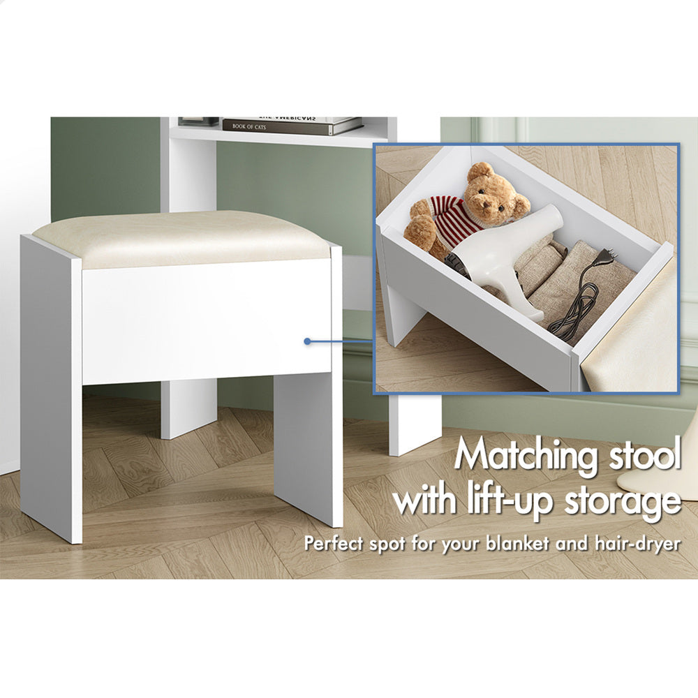 Comes with matching chair - The matching upholstered stool will provide you with a comfortable sitting position while applying make-up. Furthermore, the chair comes with lift-up lid for easy storage, which is a perfect spot for your blanket or hair-dryer.
