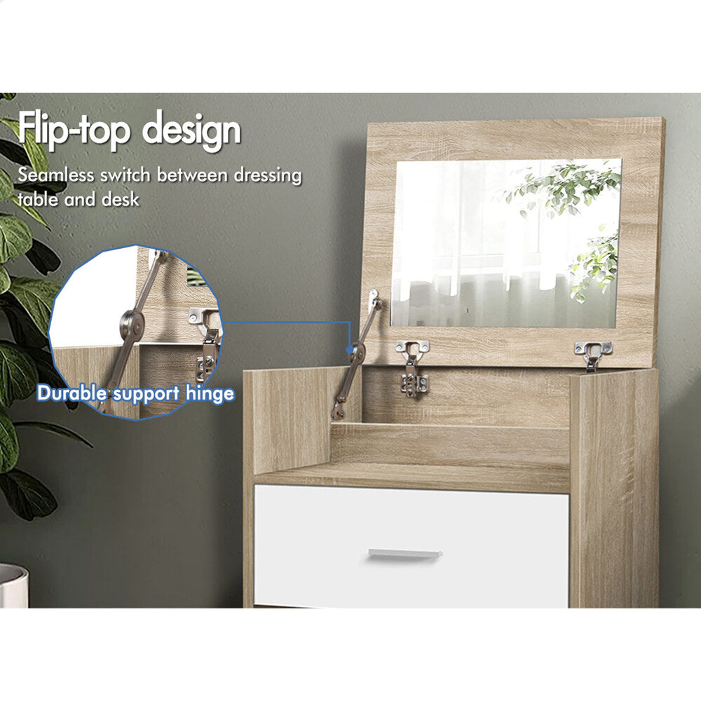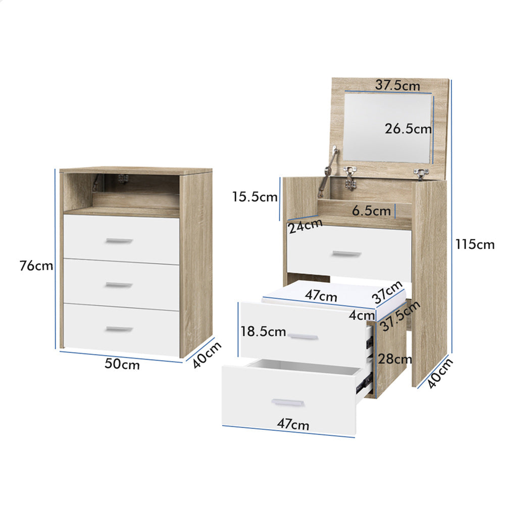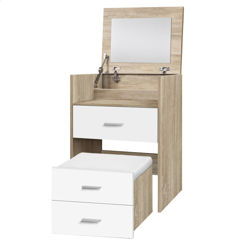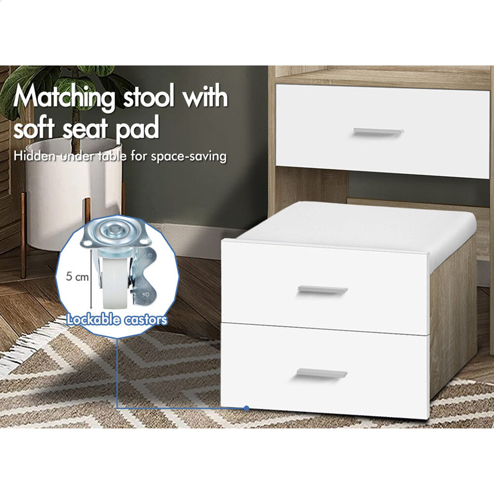 ALFORDSON Dressing Table Stool Set 2-In-1 Makeup Mirror Storage Desk Wood