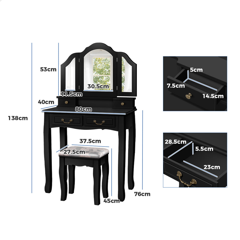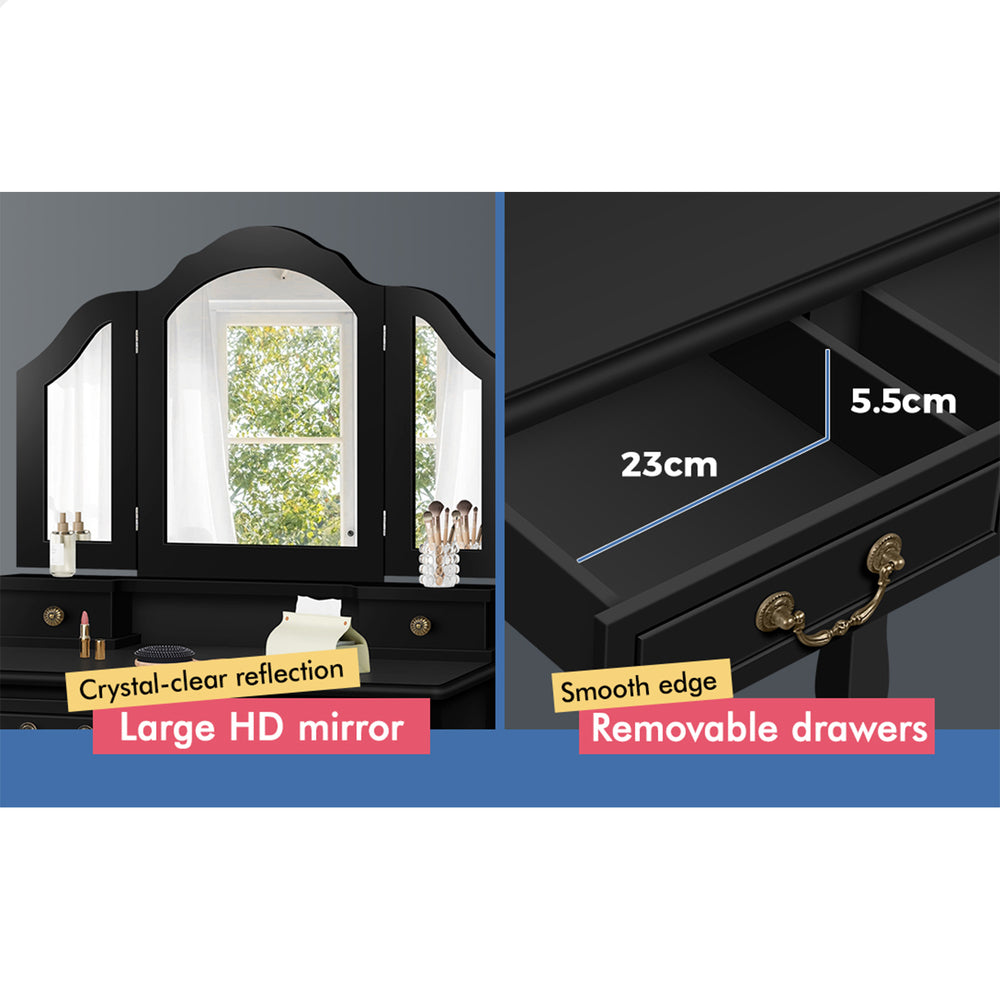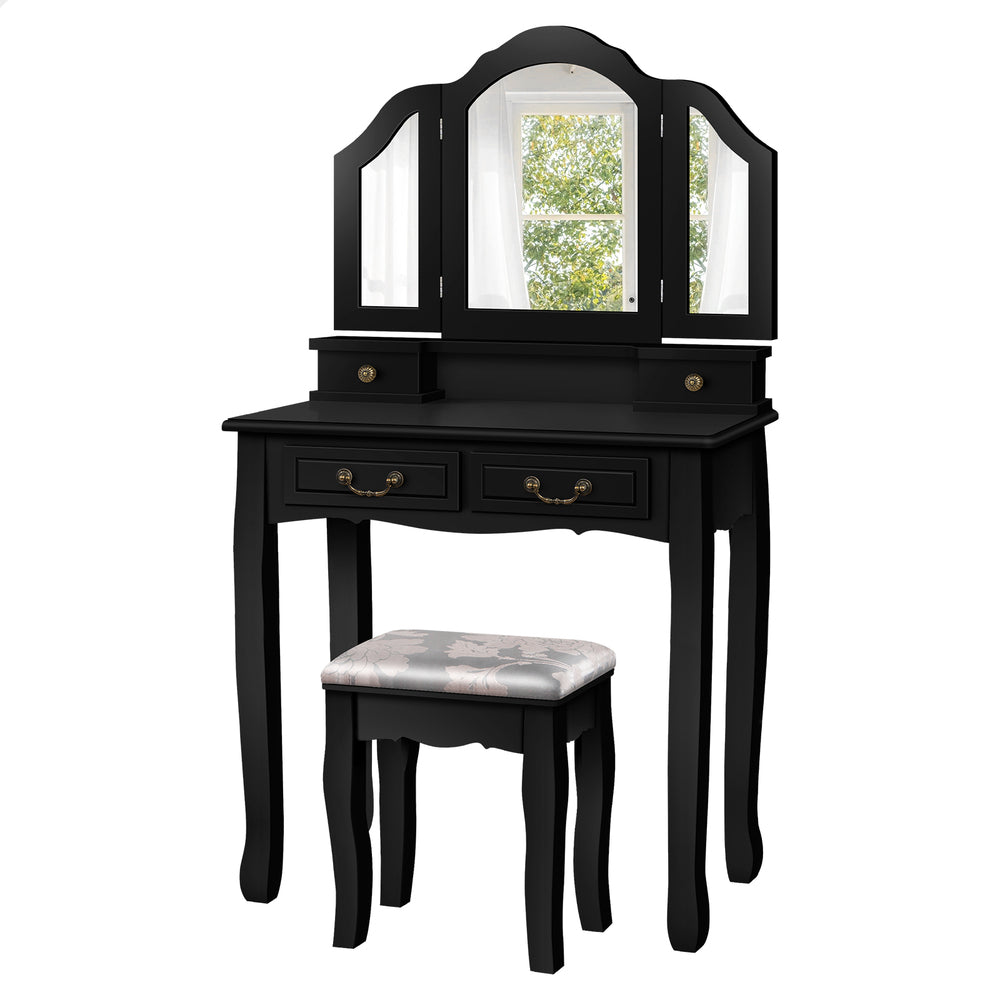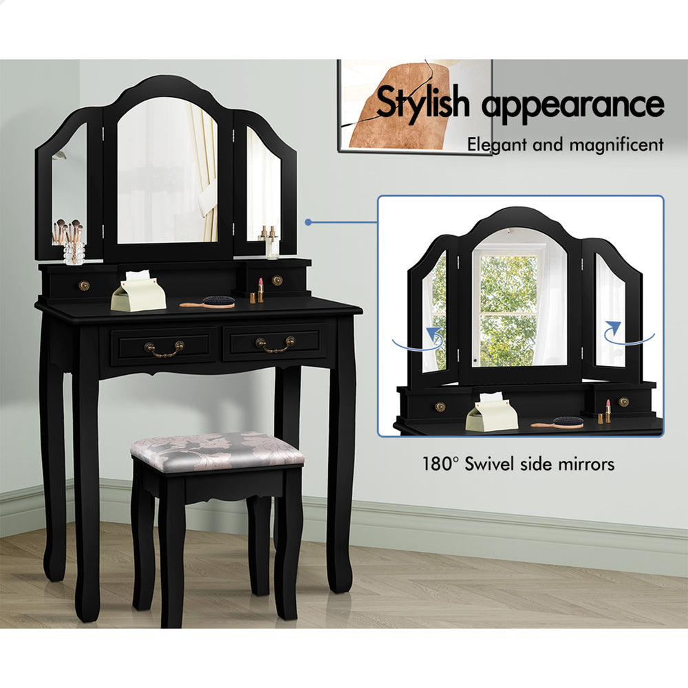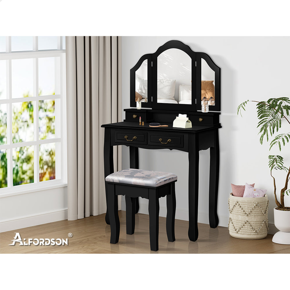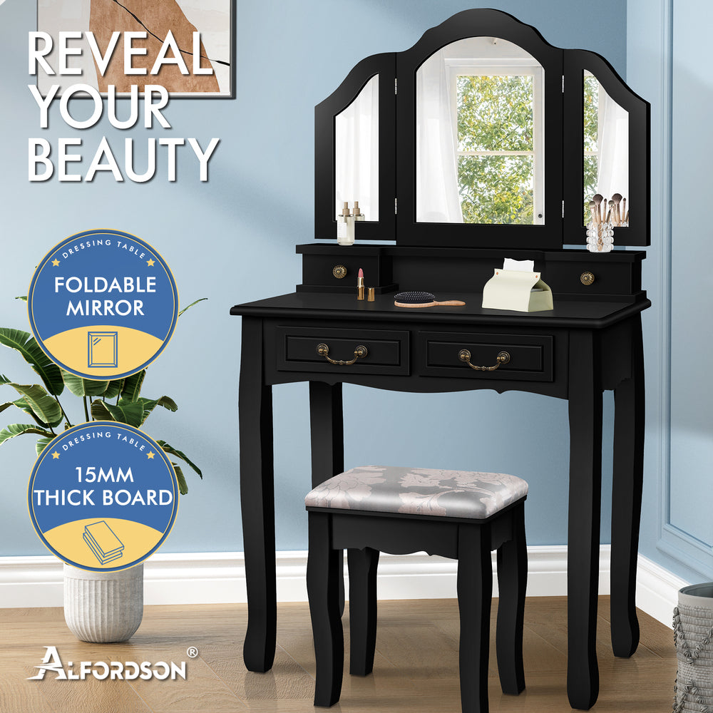 ALFORDSON Dressing Table Stool Set Makeup Foldable Mirror Vanity Desk Black