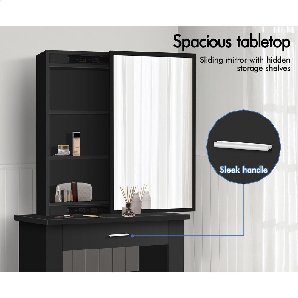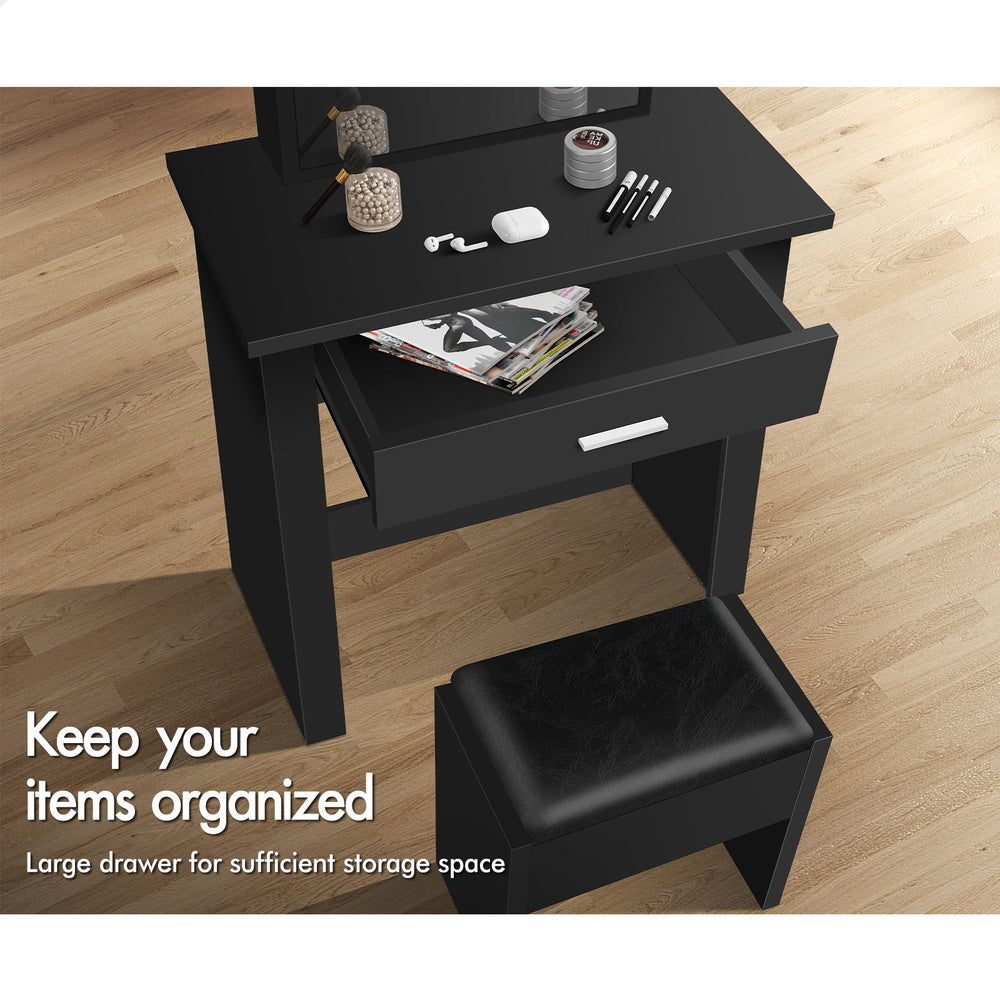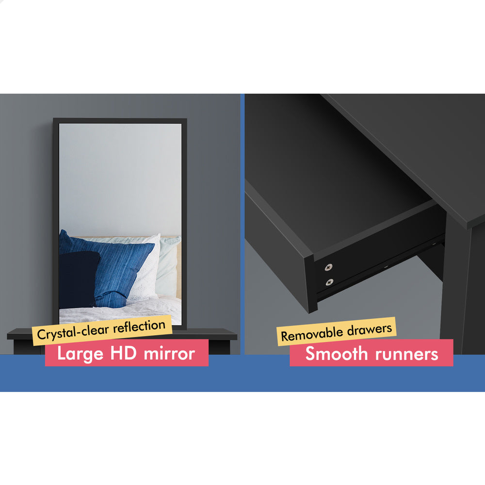 ALFORDSON Dressing Table Stool Set Sliding Makeup Mirror Vanity Desk Black