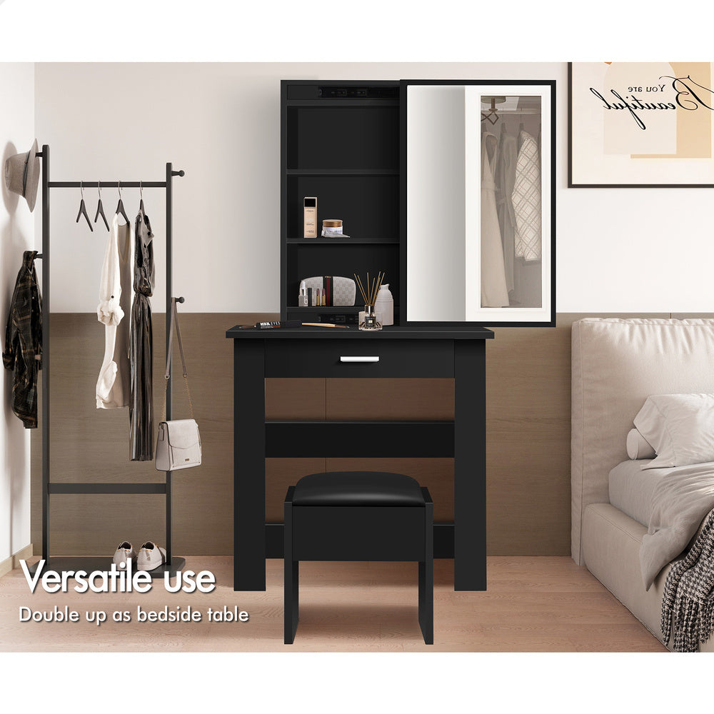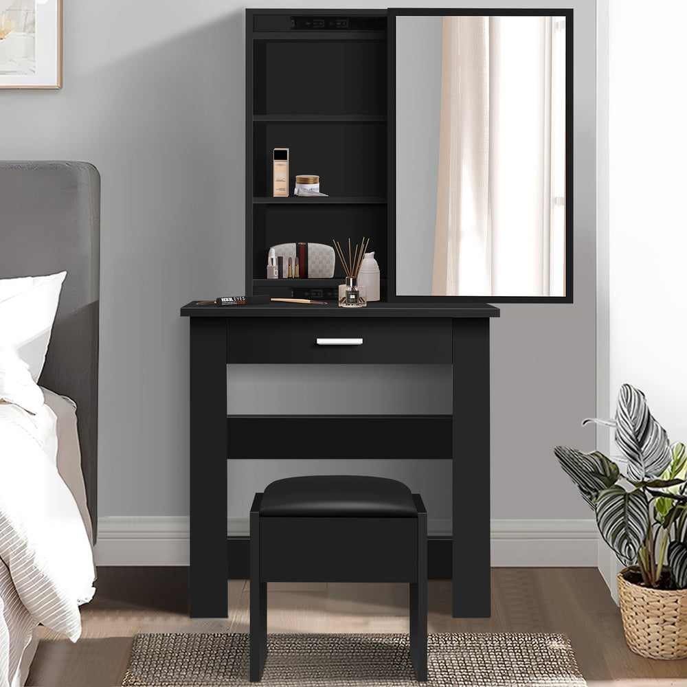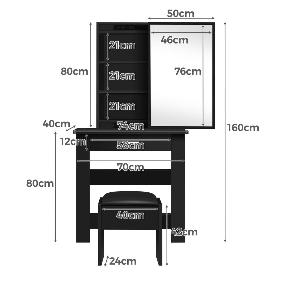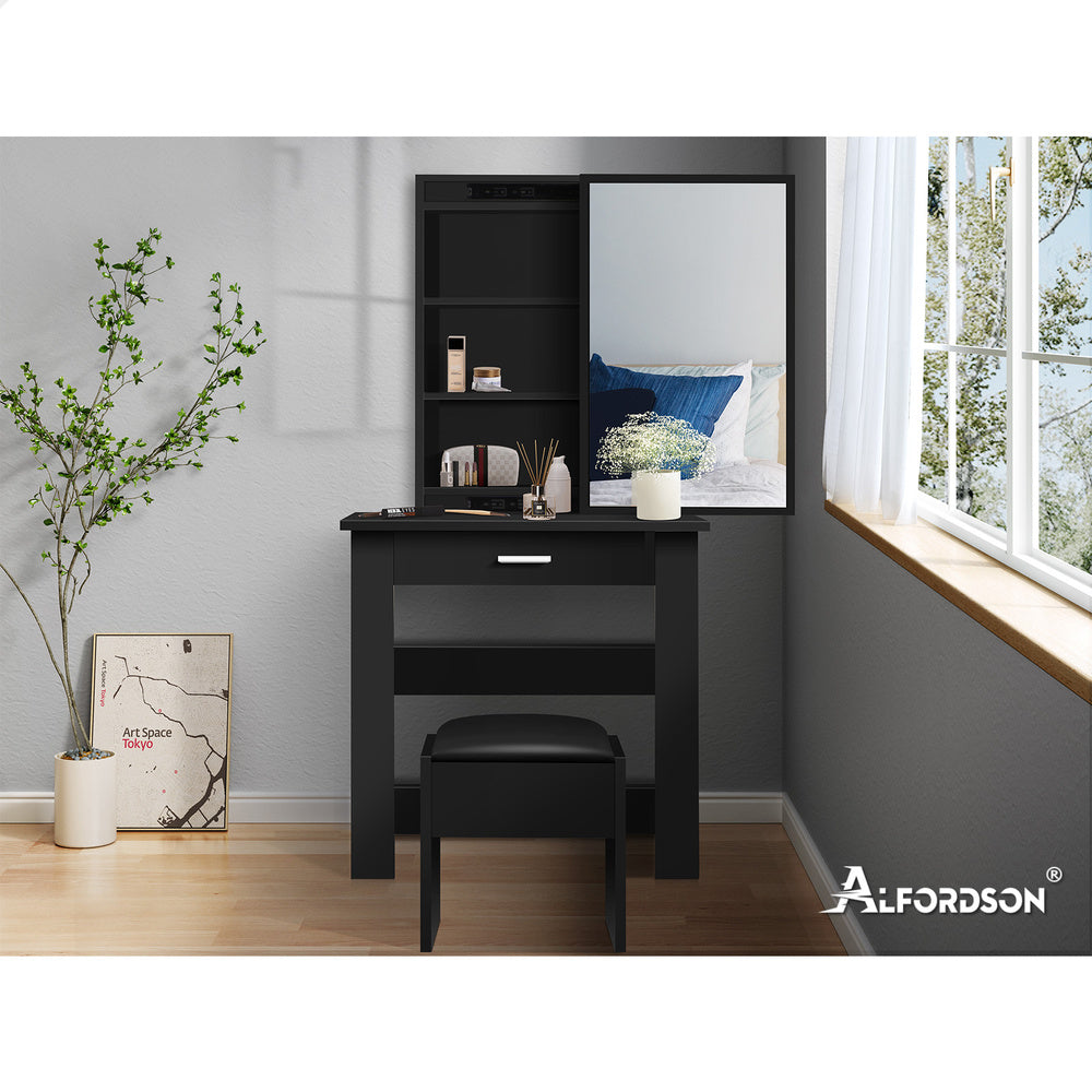 ALFORDSON Dressing Table Stool Set Sliding Makeup Mirror Vanity Desk Black