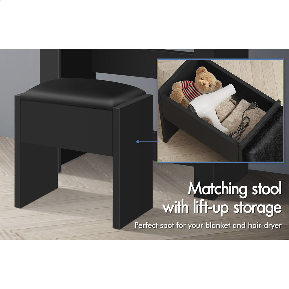 Comes with matching chair - The matching upholstered stool will provide you with a comfortable sitting position while applying make-up. Furthermore, the chair comes with lift-up lid for easy storage, which is a perfect spot for your blanket or hair-dryer.