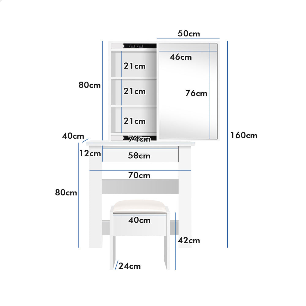 Keep your items organized - It features a large lockable drawer for ample storage space. For items you want to access easily, like make-up products, lotions, or perfumes, you can simply put them on desktop of table. For other items, like jewellery, you can store them away in drawers so they won't gather dust. Featuring a cabinet with sliding mirror, you can get your cosmetics in a convenient way.