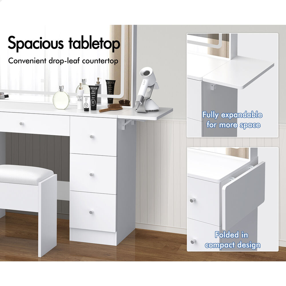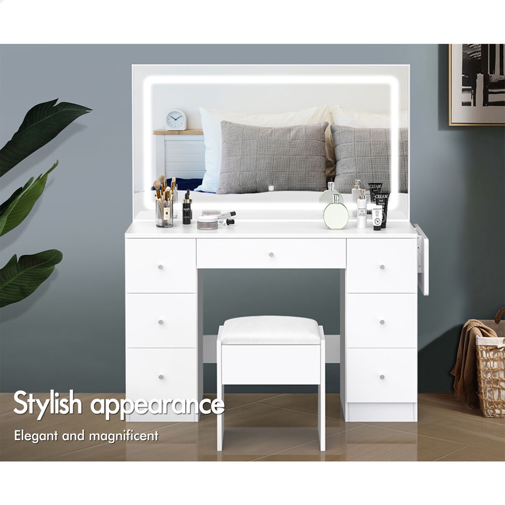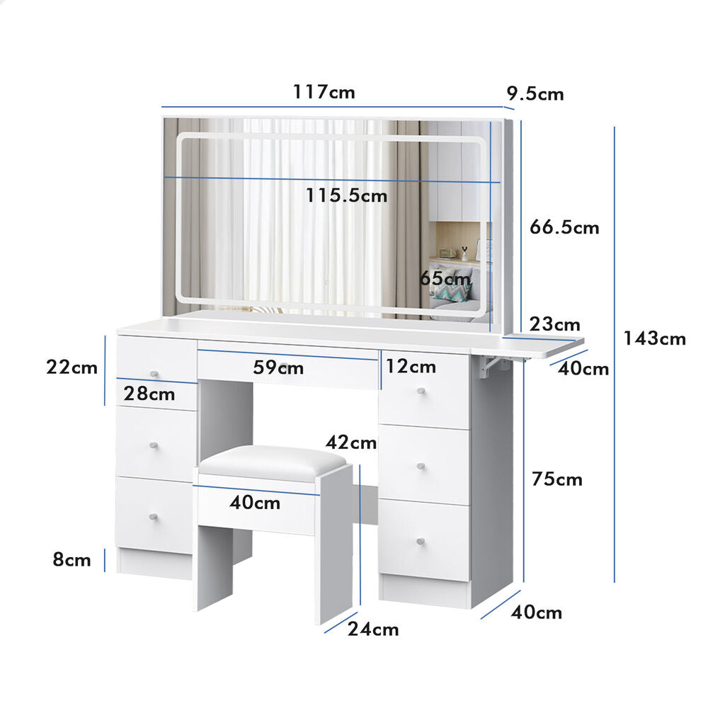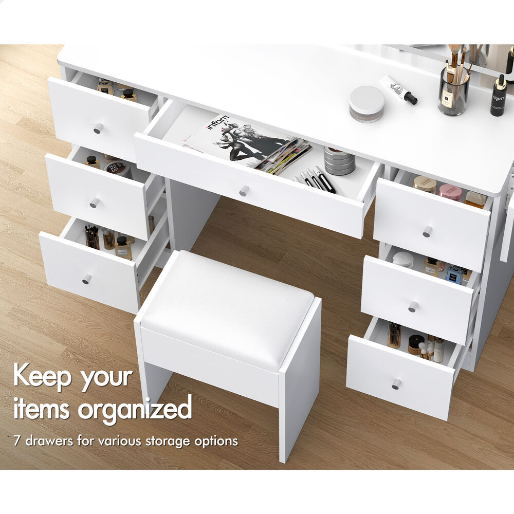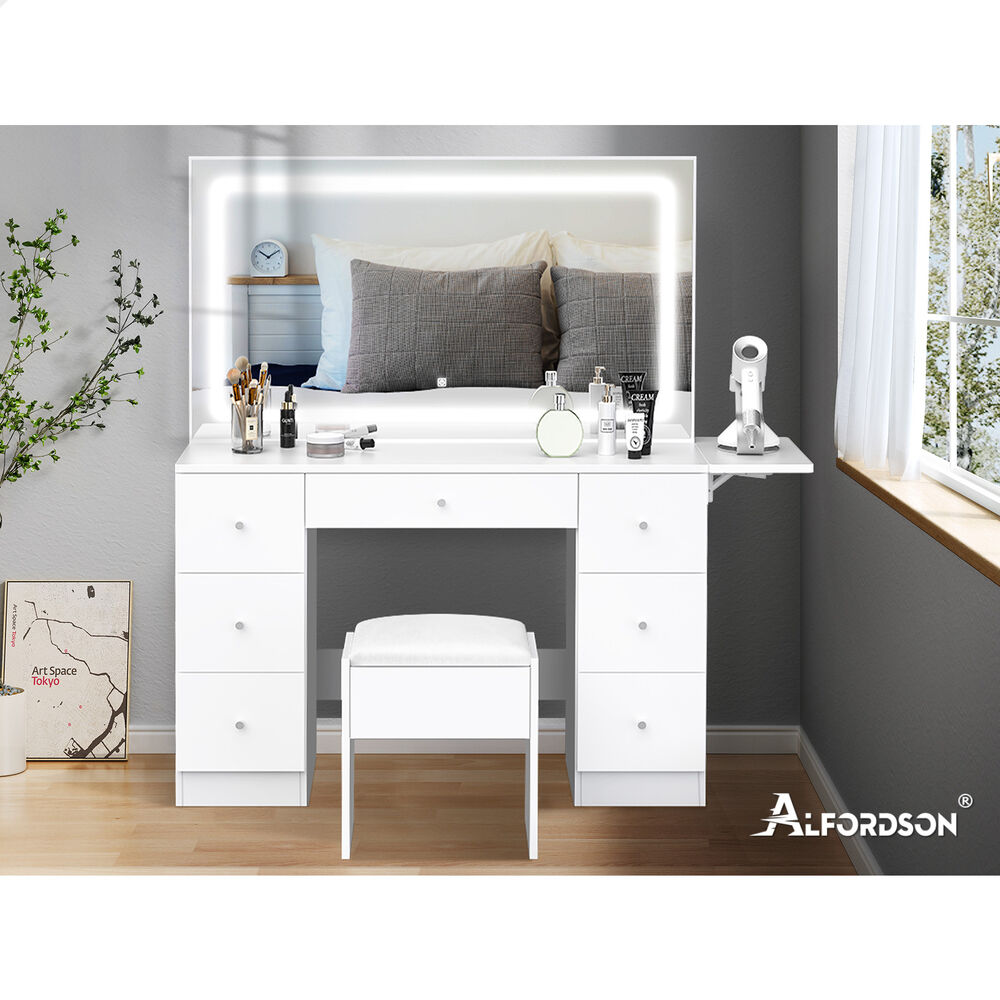 ALFORDSON Dressing Table Stool Set Makeup Mirror LED Vanity Desk 7 Drawers White