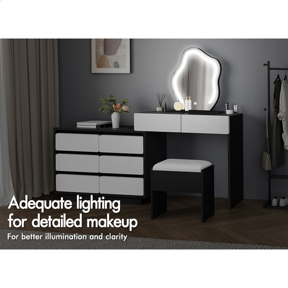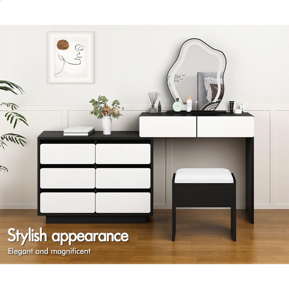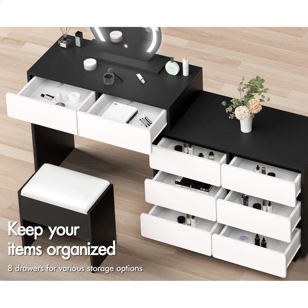 ALFORDSON Dressing Table Stool Set Makeup Mirror Desk LED 8 Drawers Black White