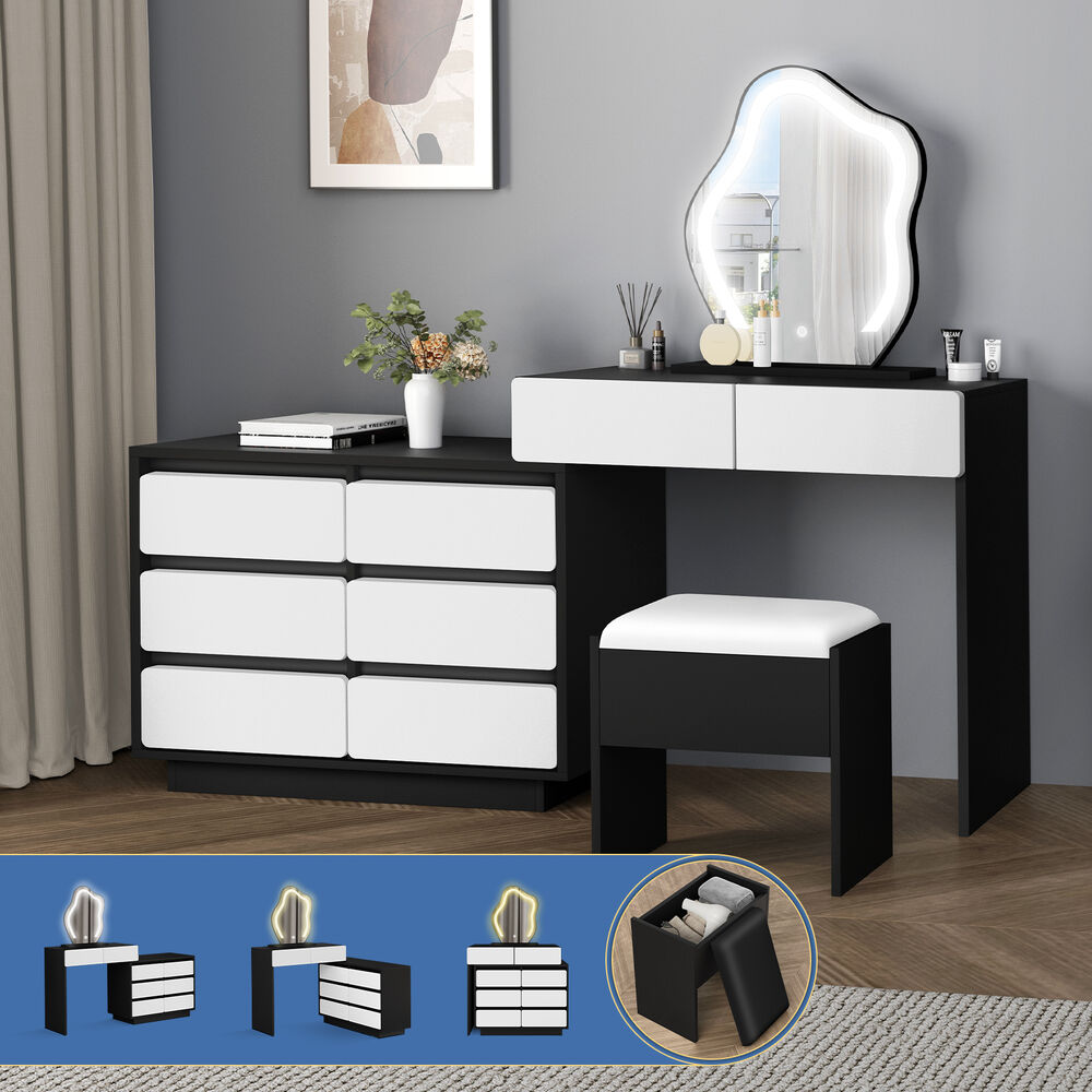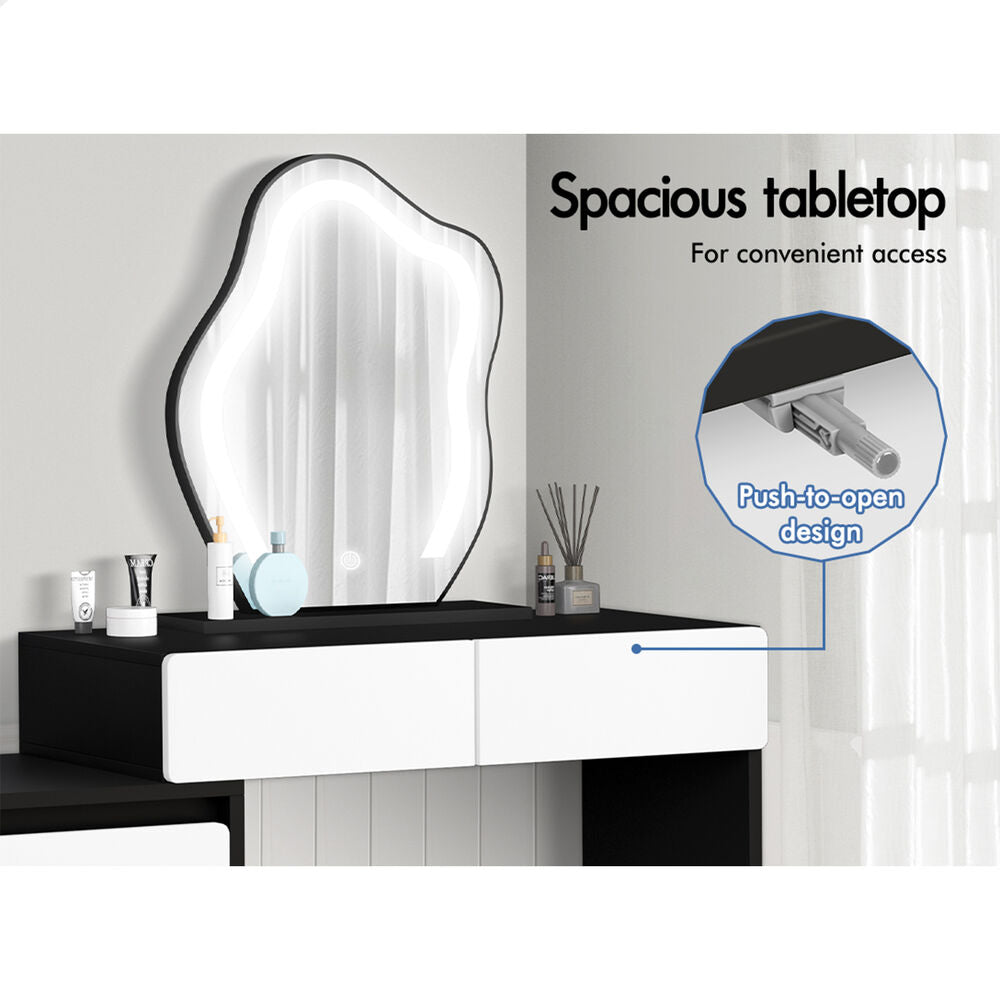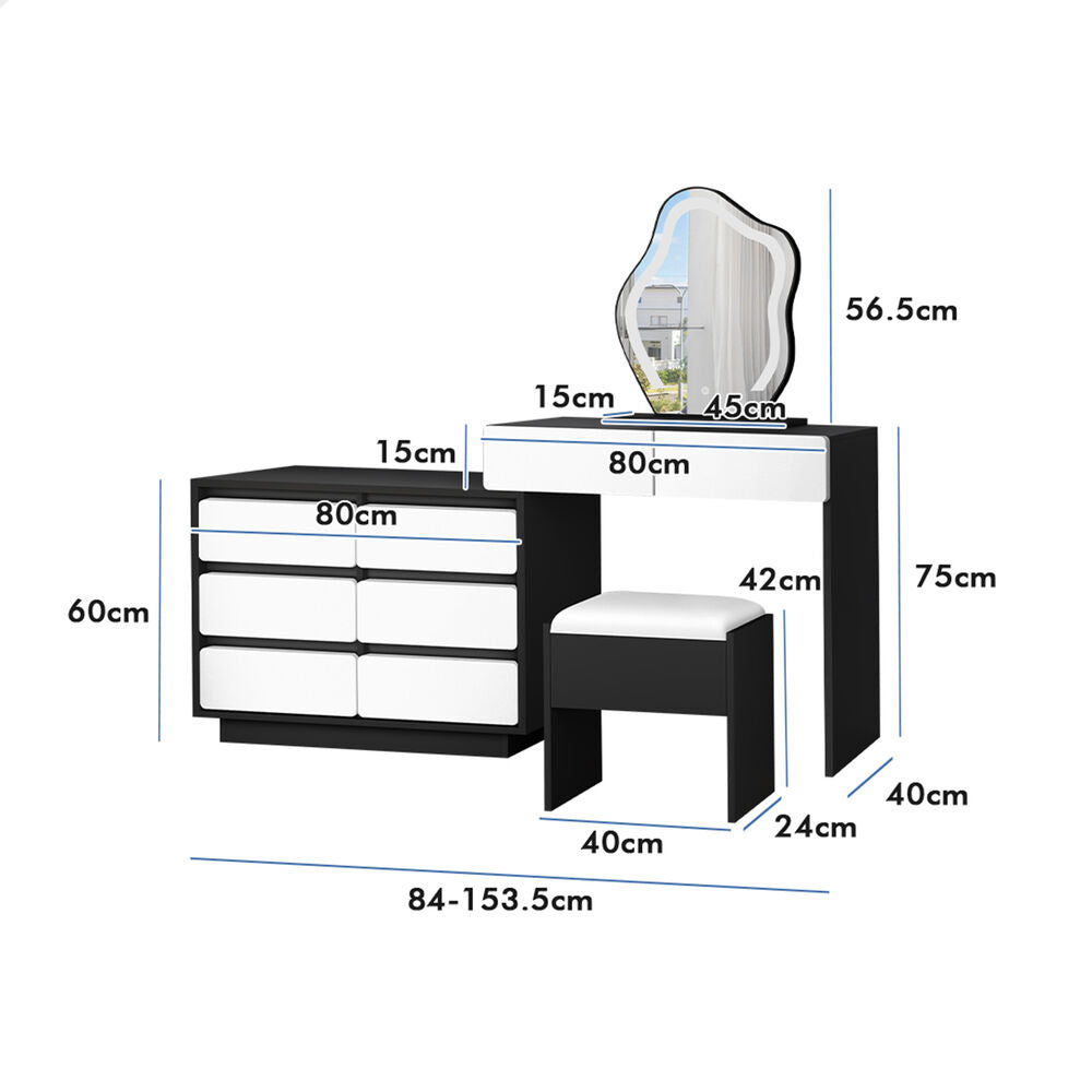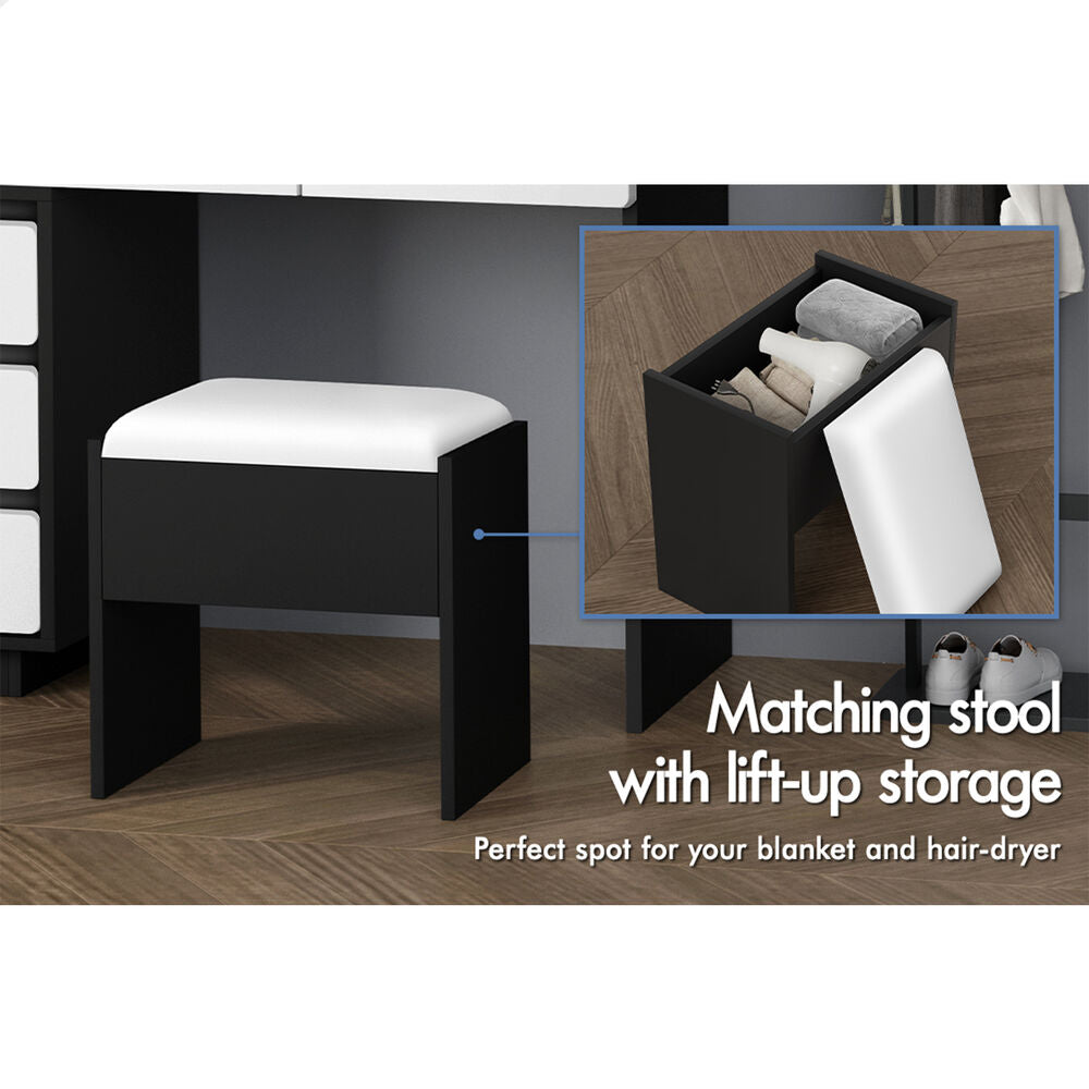 ALFORDSON Dressing Table Stool Set Makeup Mirror Desk LED 8 Drawers Black White