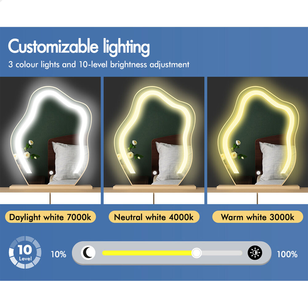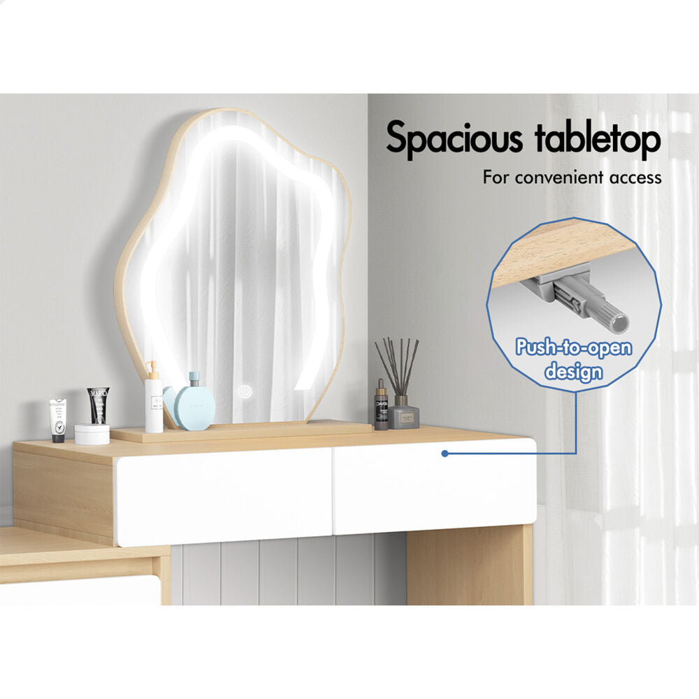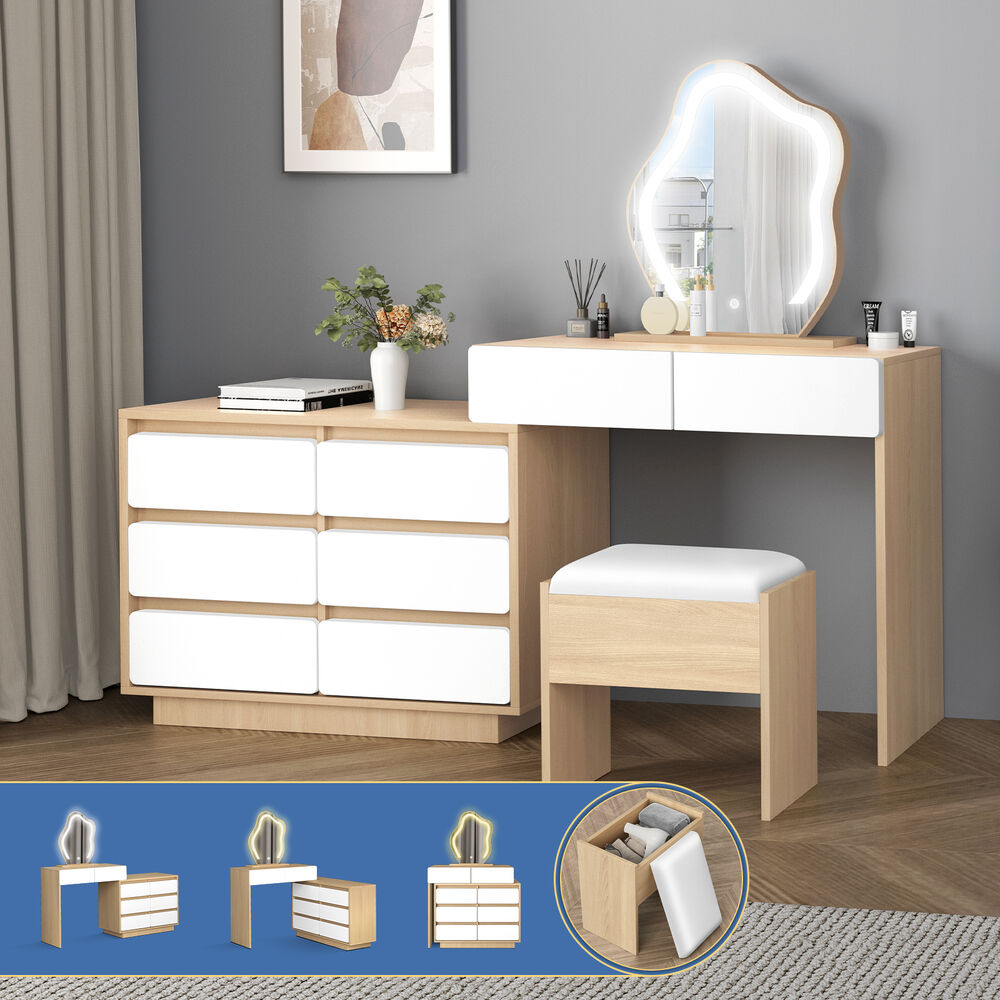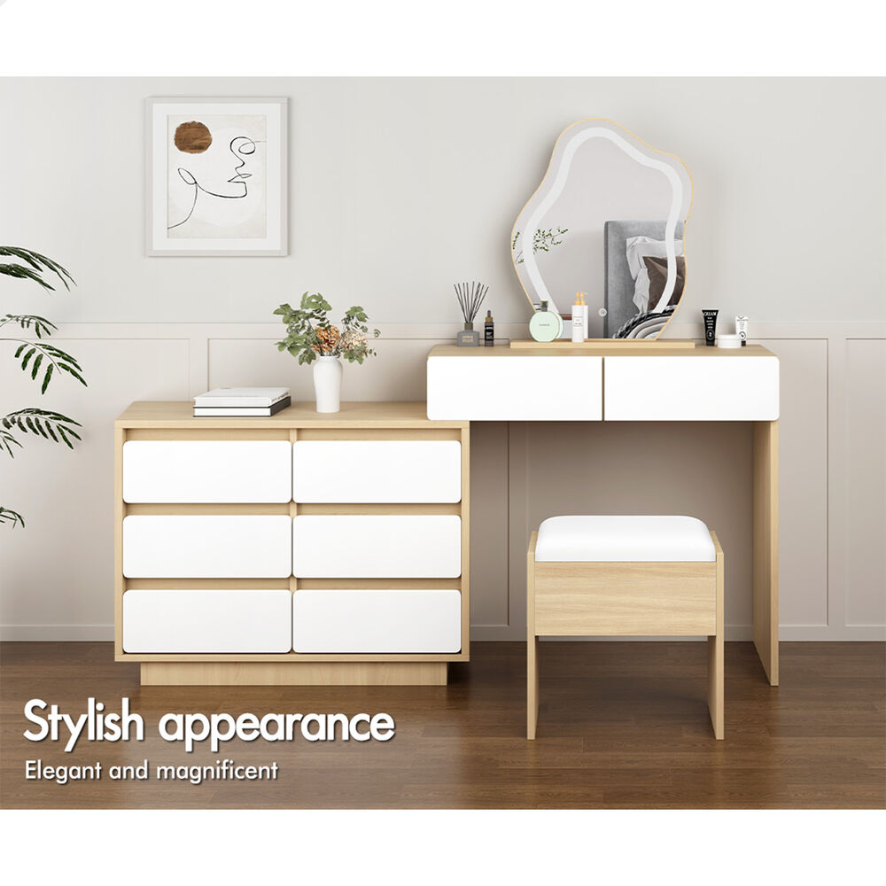 ALFORDSON Dressing Table Stool Set Makeup Mirror Desk LED 8 Drawers Oak