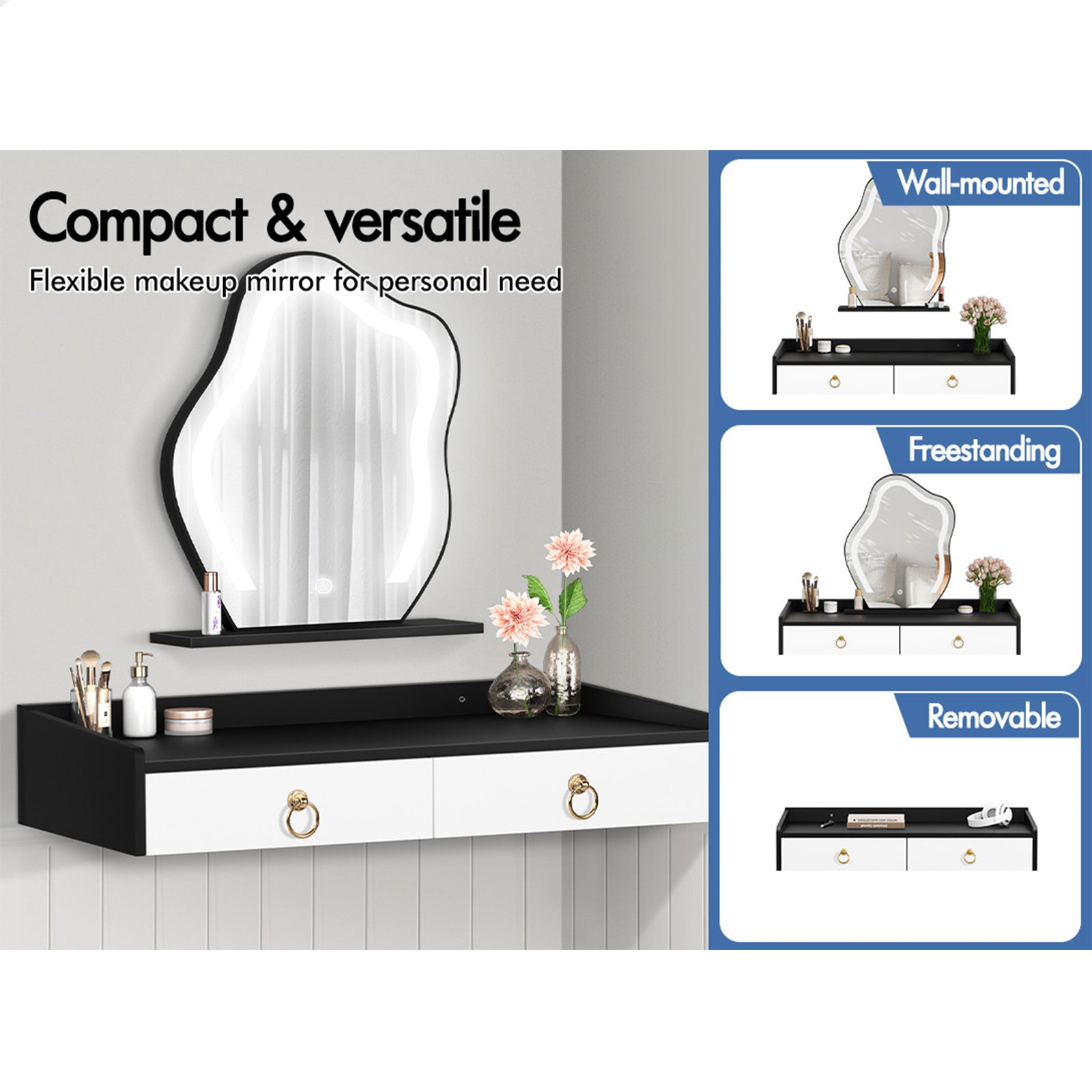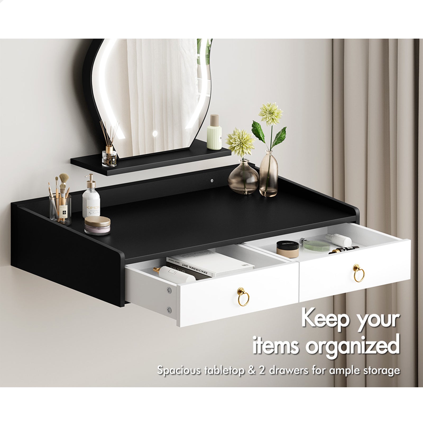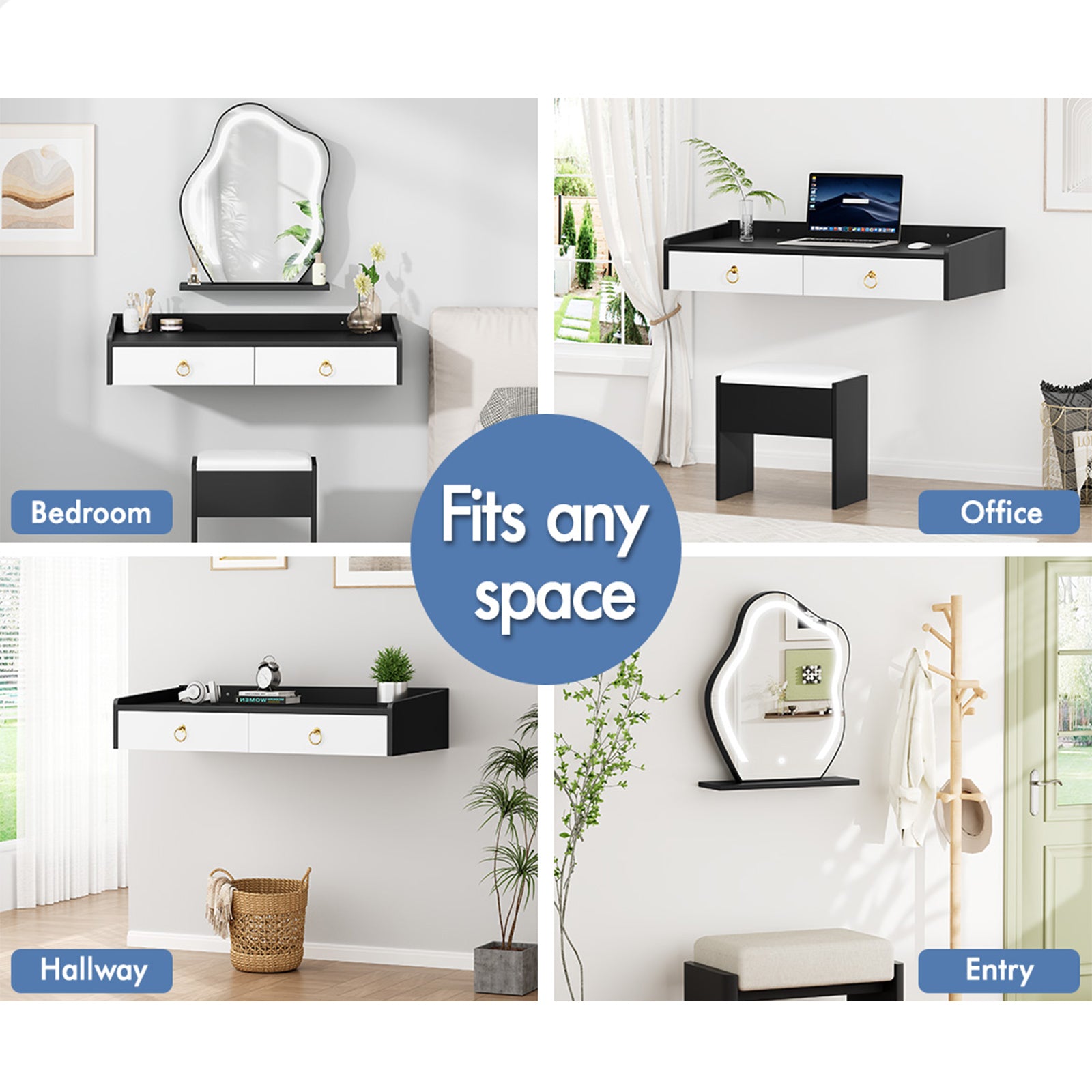 Space-saving design - With dual-use mirror, you can choose between wall-mounting to save desk space or placing it freestanding on tabletop for flexible styling options. Supported by heavy-duty brackets, this dressing table is securely mounted to free up valuable floor space in compact bedrooms, dorm rooms, or apartments while maintaining a clutter-free aesthetic.