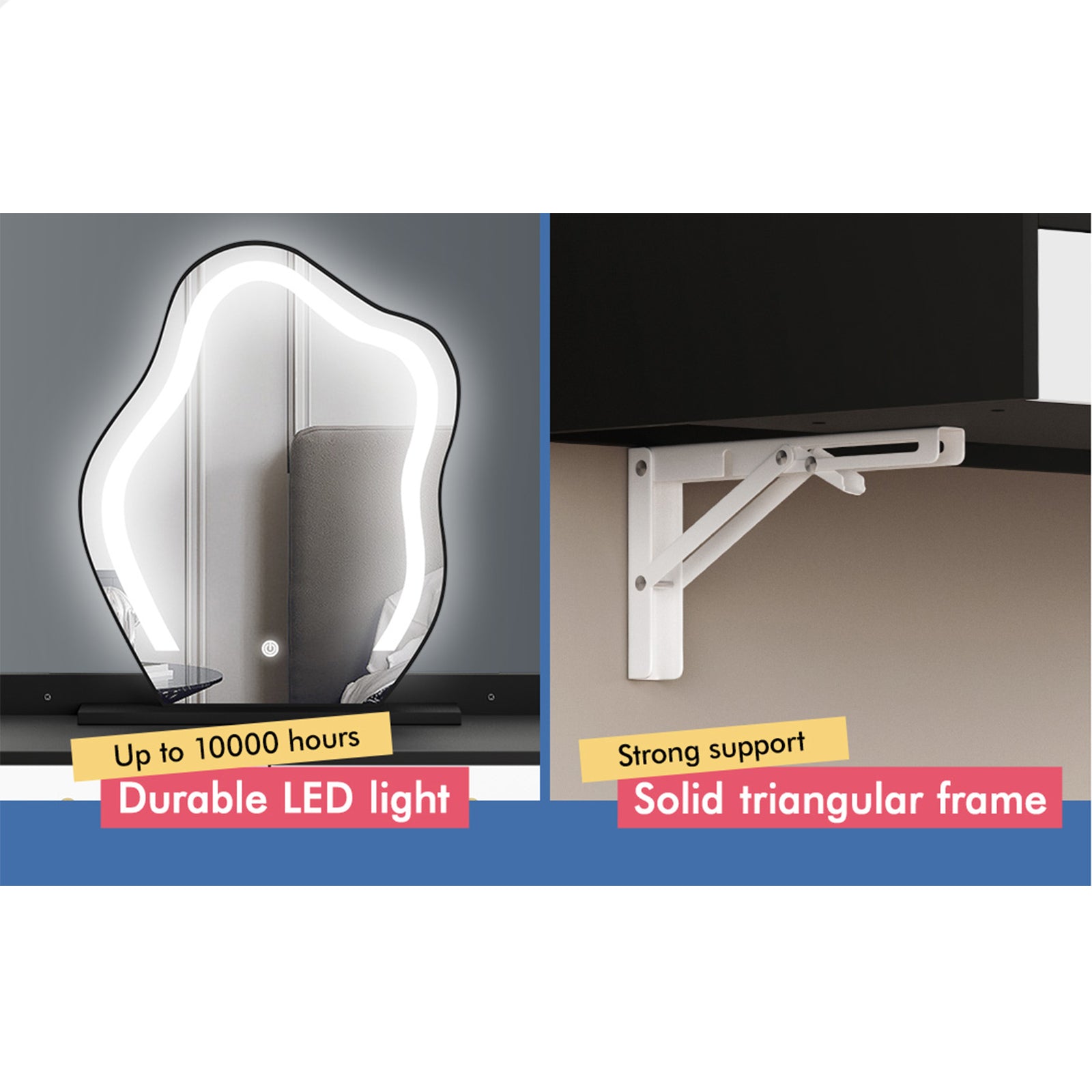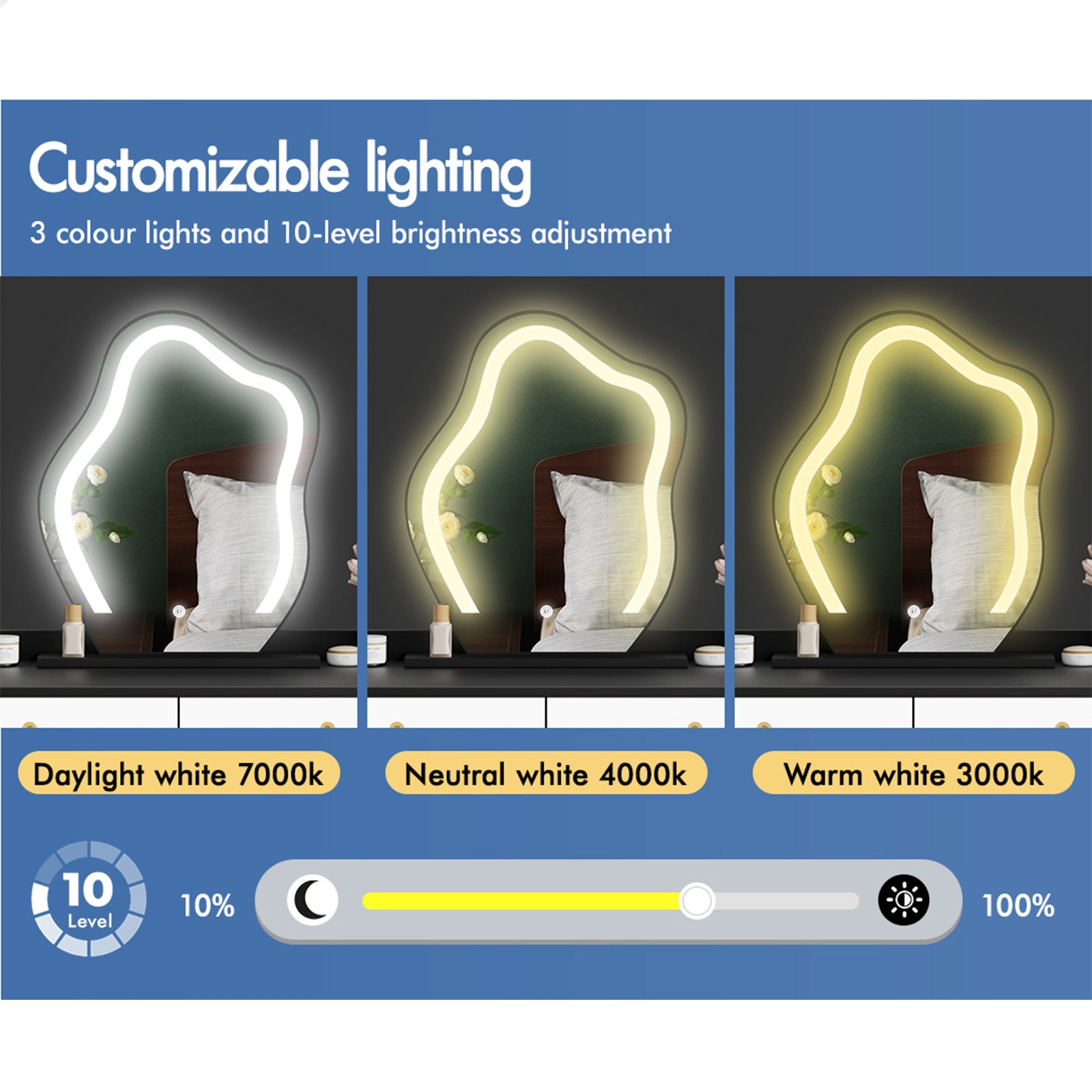 Customizable lighting - The dressing table features 3 LED light colours - neutral white, warm white, and daylight white and the brightness of each colour can be adjusted in 10 levels, providing adequate light to complete your make-up.
