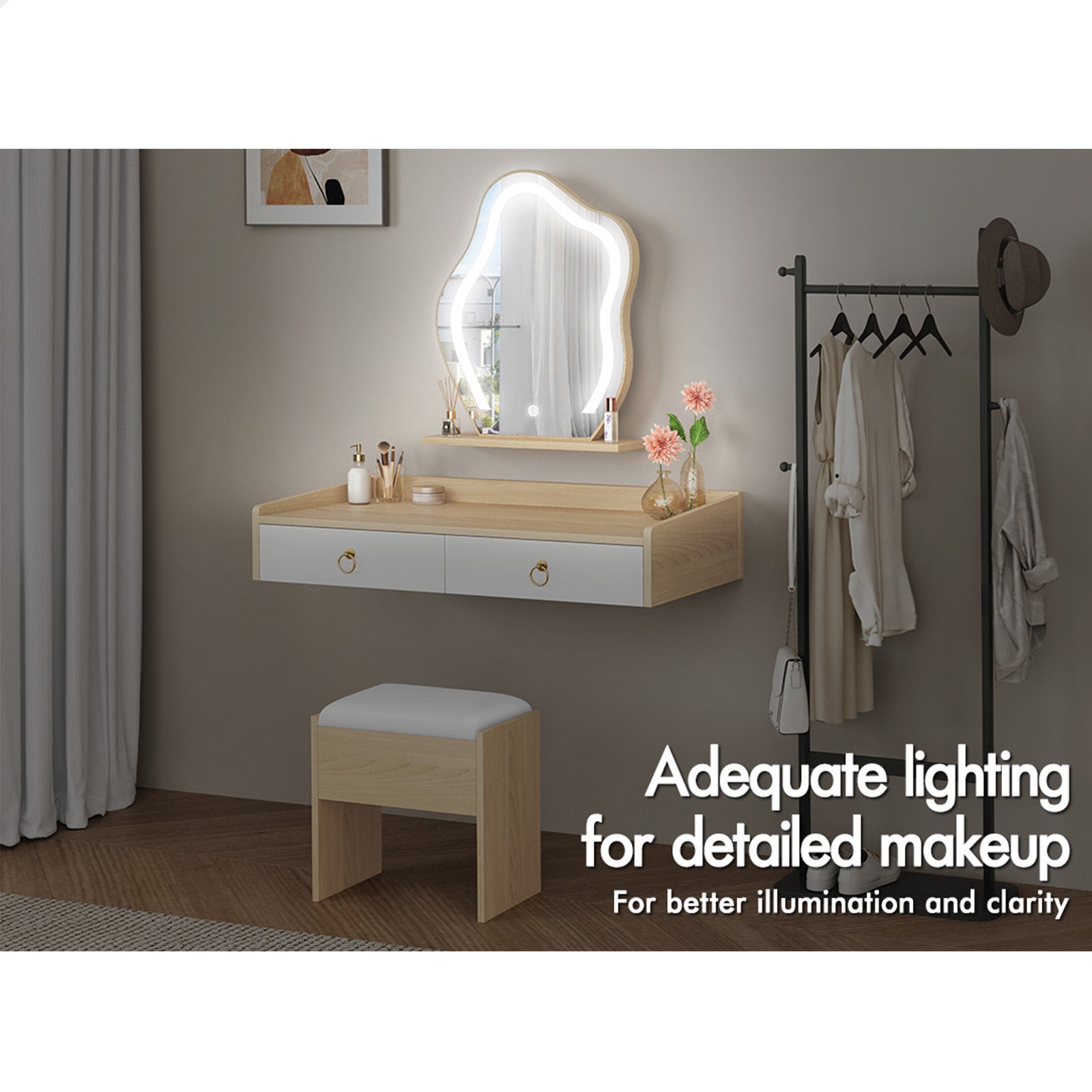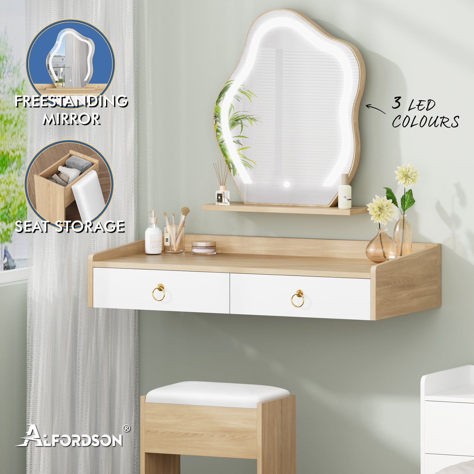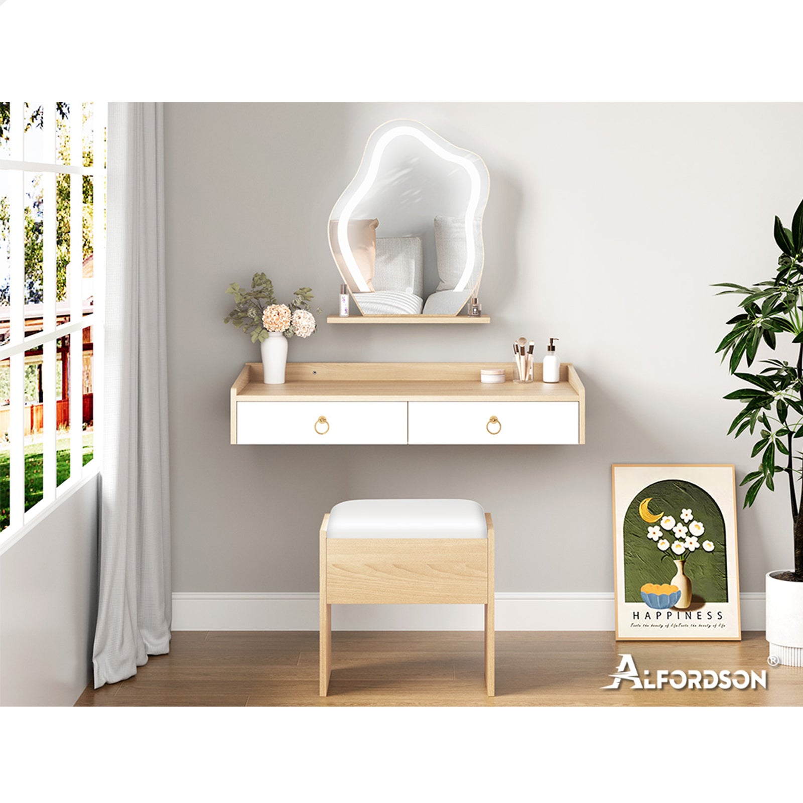 ALFORDSON Dressing Table Stool Set Floating Makeup Mirror LED Vanity Desk Oak