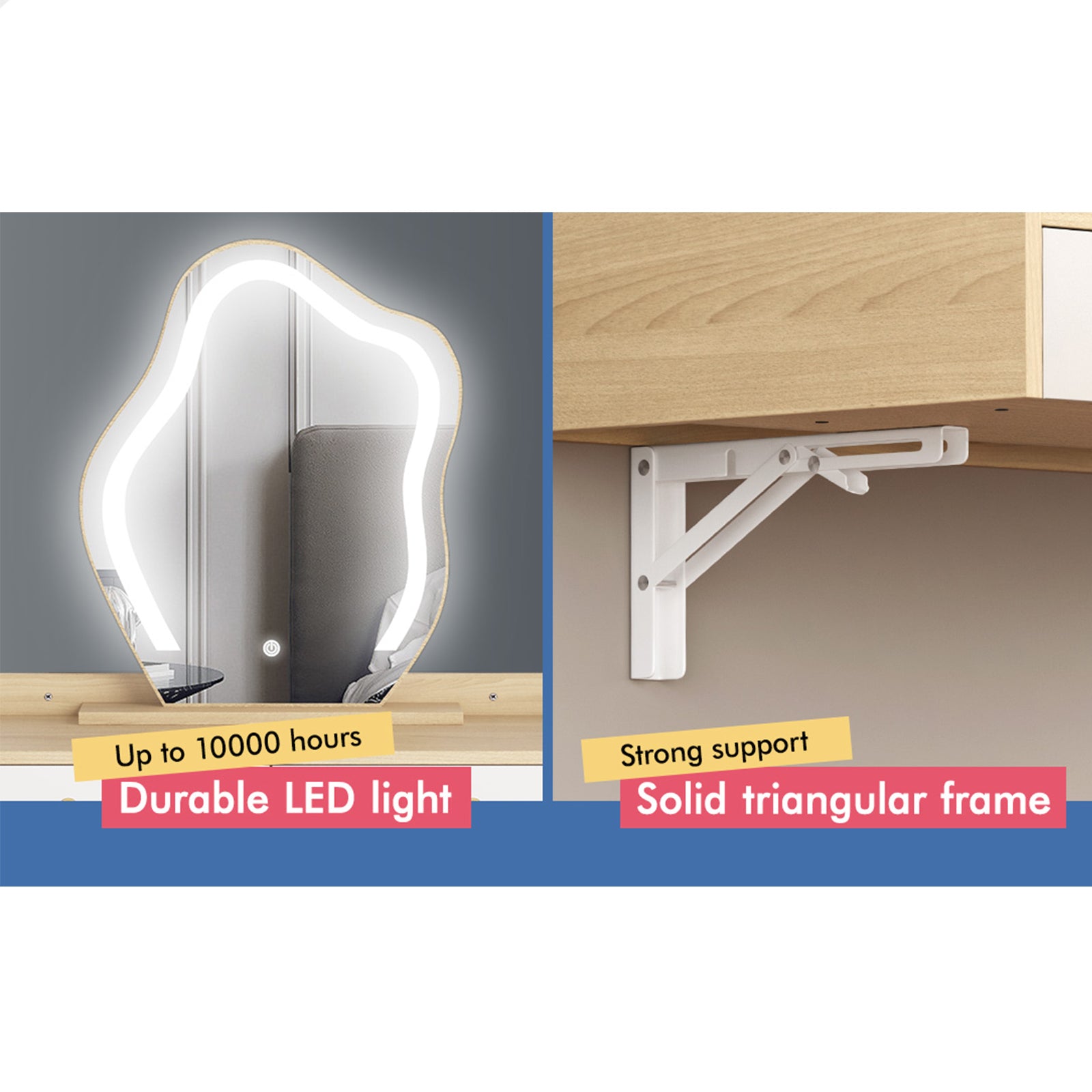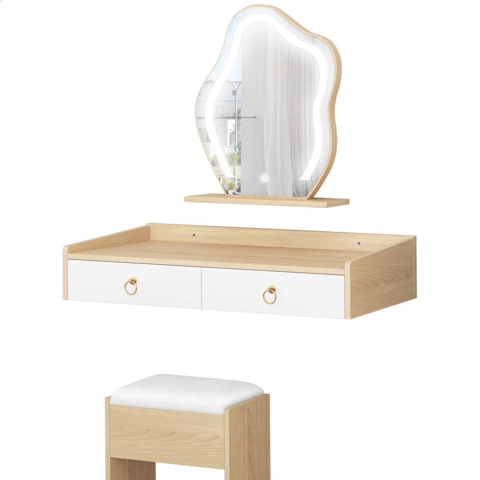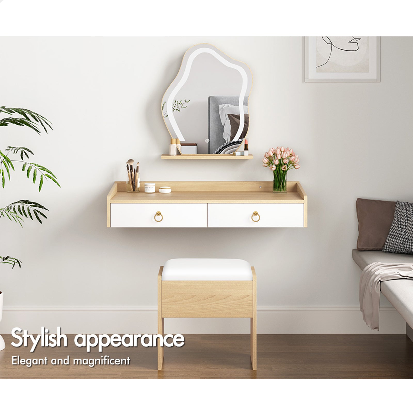 ALFORDSON Dressing Table Stool Set Floating Makeup Mirror LED Vanity Desk Oak