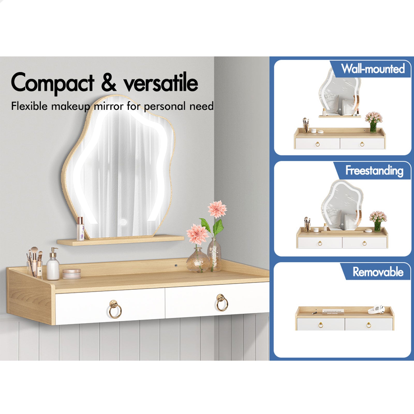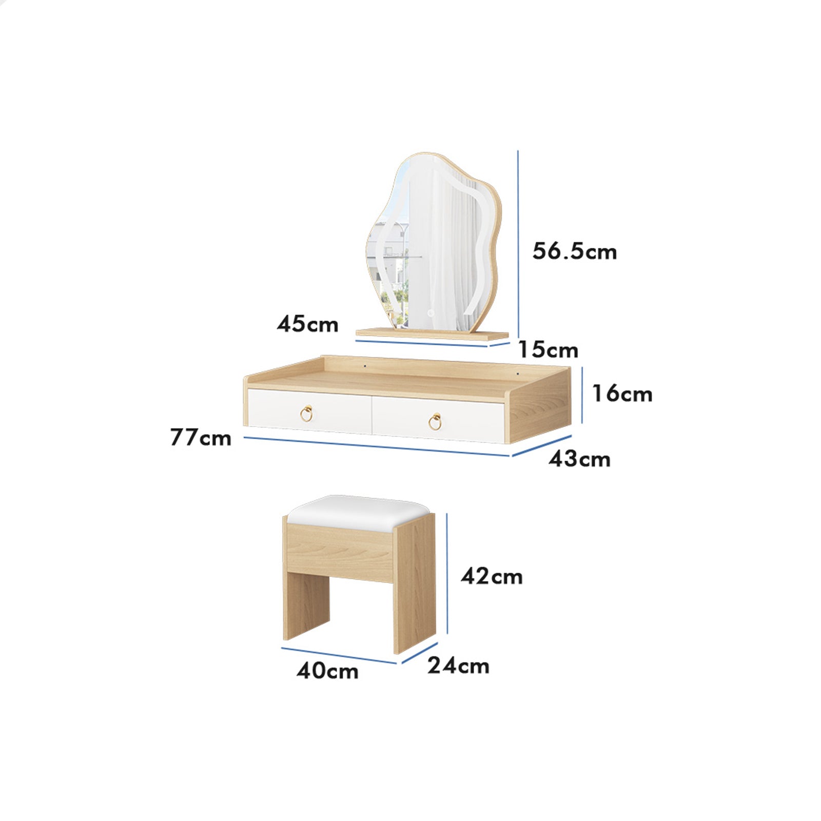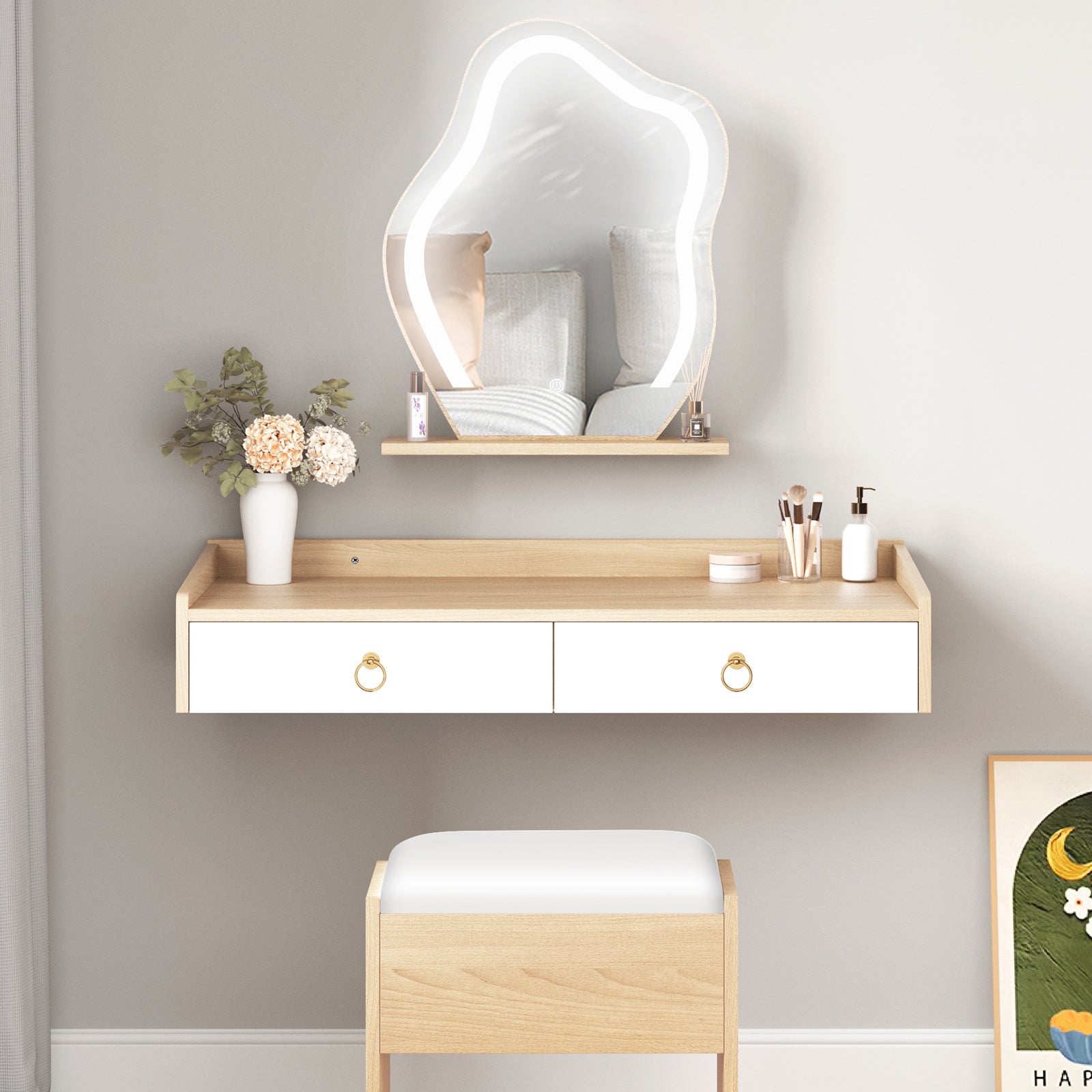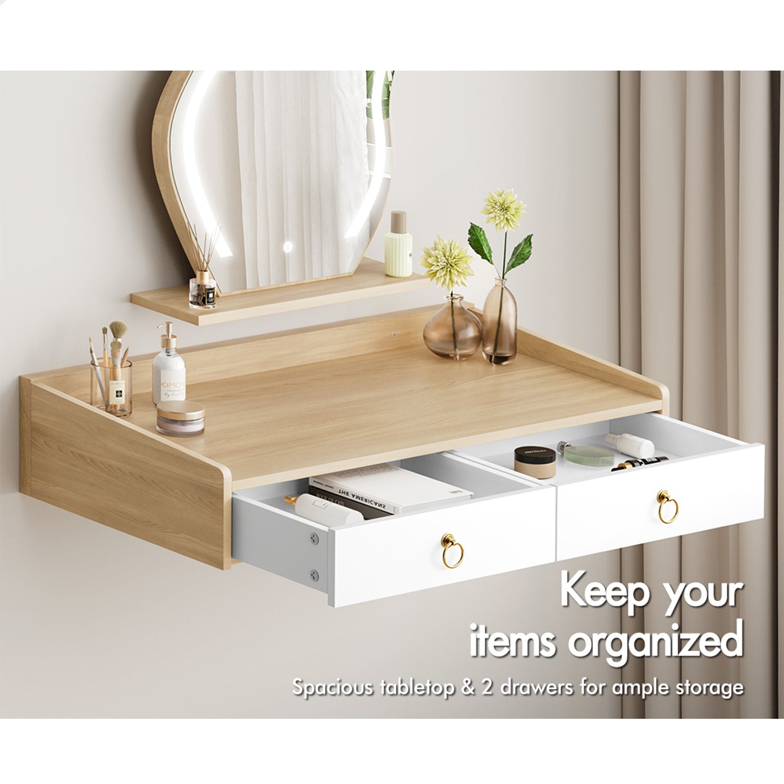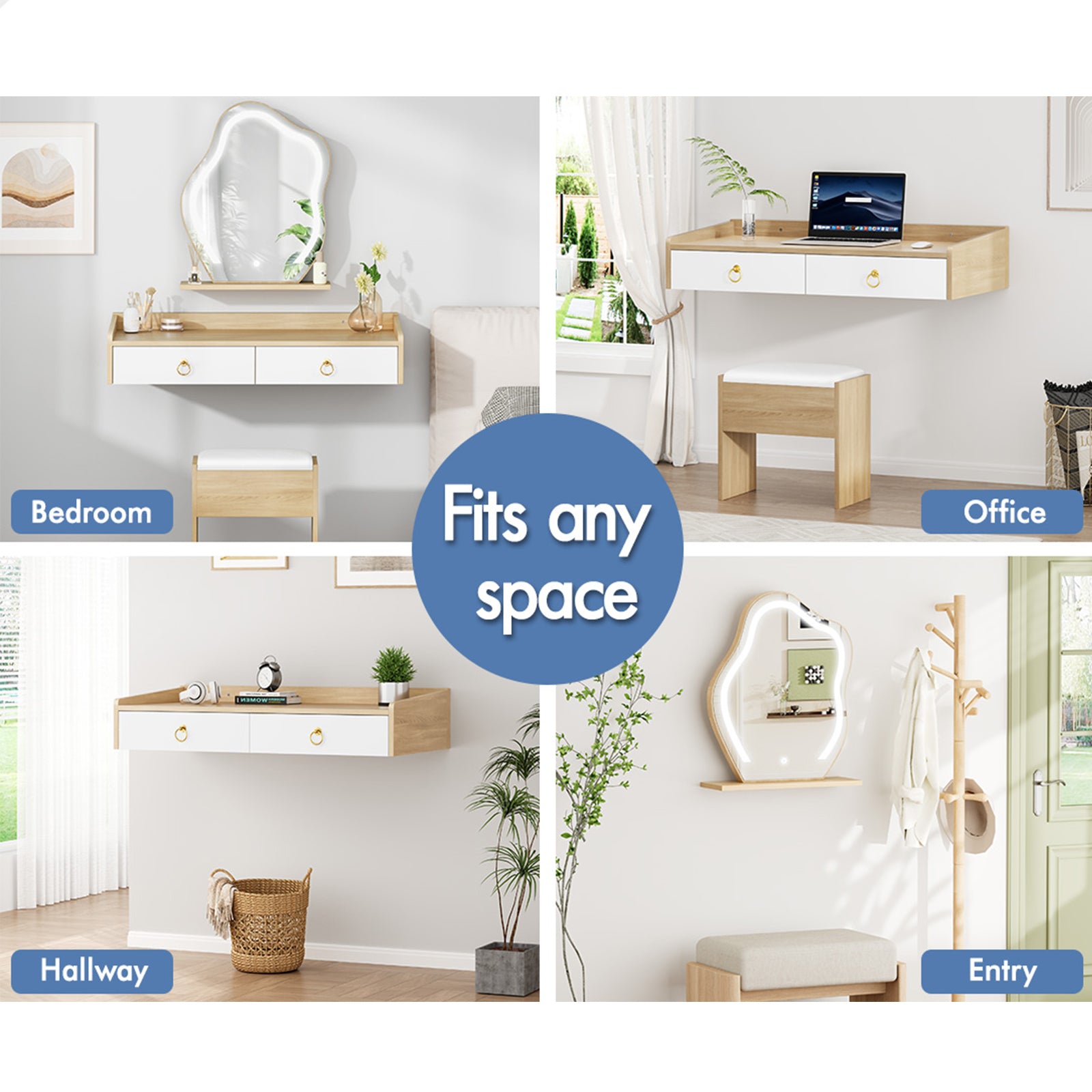 Space-saving design - With dual-use mirror, you can choose between wall-mounting to save desk space or placing it freestanding on tabletop for flexible styling options. Supported by heavy-duty brackets, this dressing table is securely mounted to free up valuable floor space in compact bedrooms, dorm rooms, or apartments while maintaining a clutter-free aesthetic.