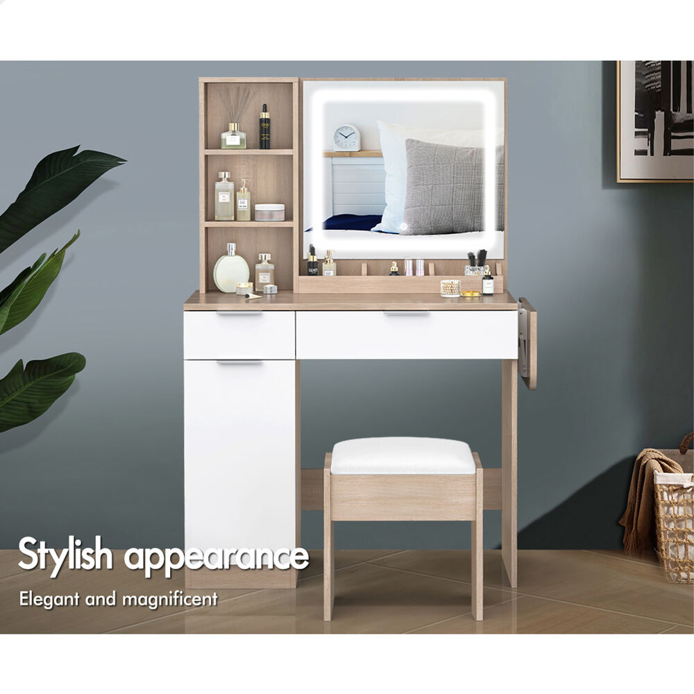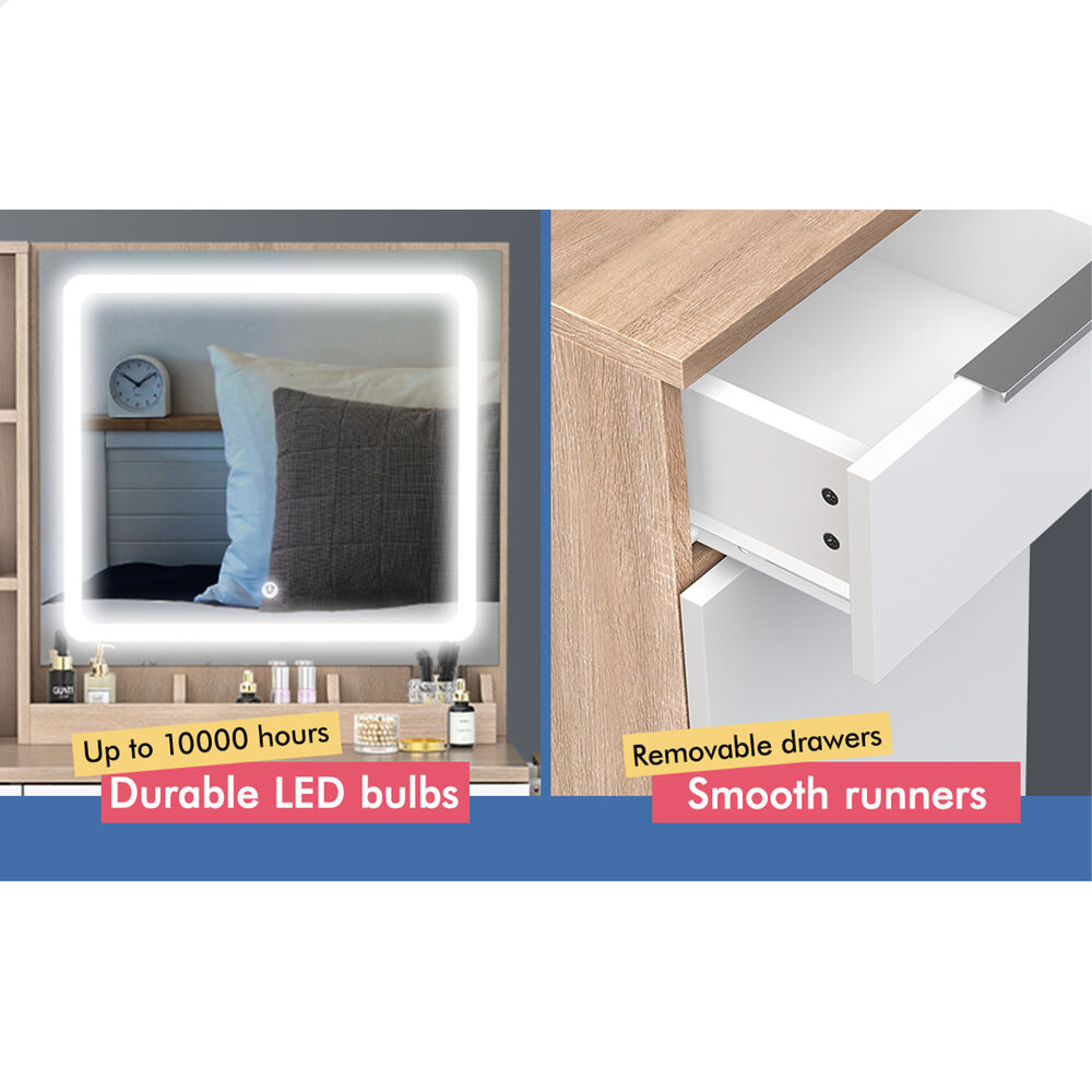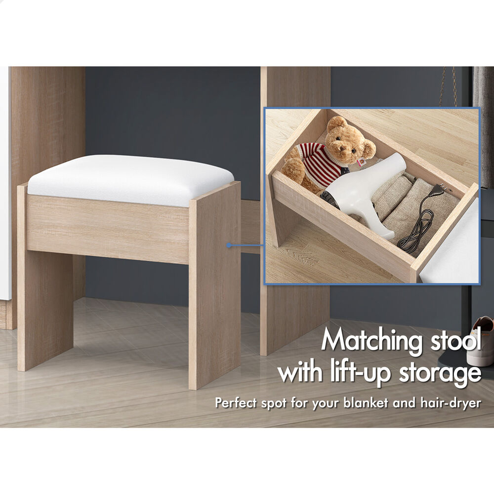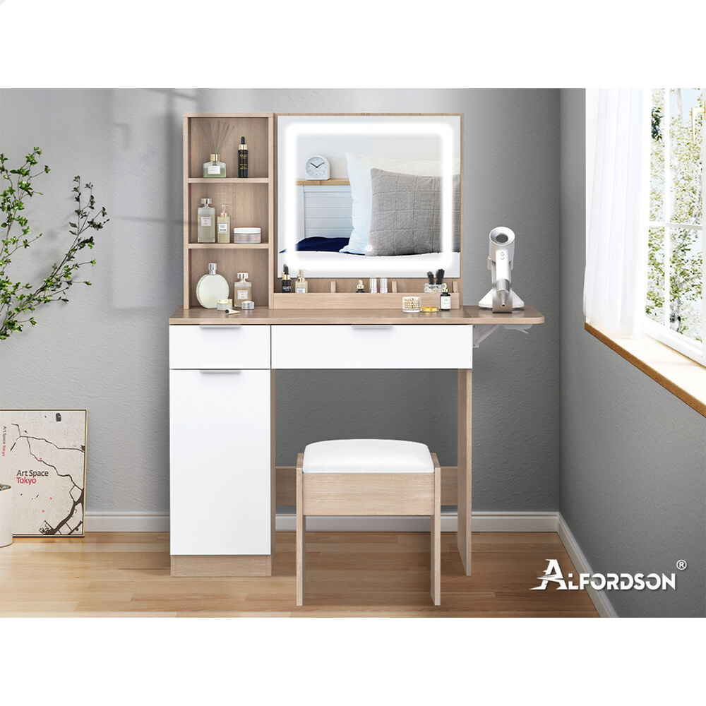 ALFORDSON Dressing Table Stool Set LED Vanity Desk Makeup Mirror Drawers Oak
