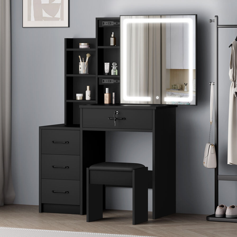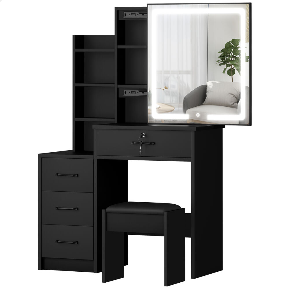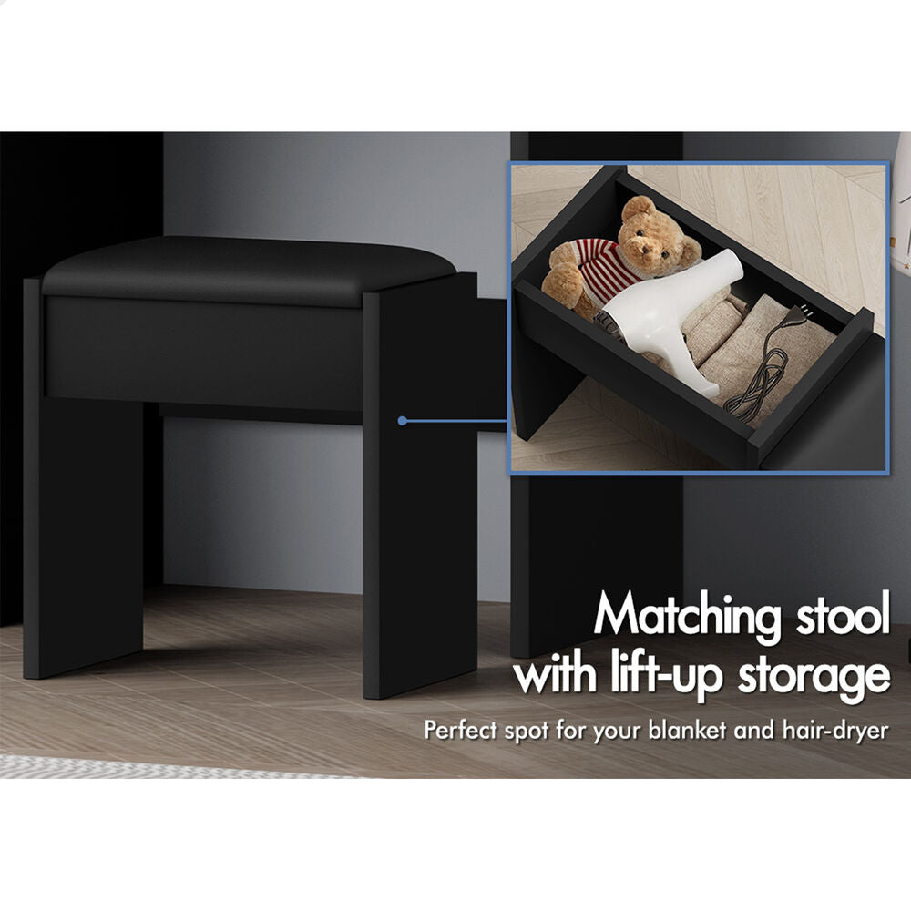 Comes with matching chair - The matching upholstered stool will provide you with a comfortable sitting position while applying make-up. Furthermore, the chair comes with lift-up lid for easy storage, which is a perfect spot for your blanket or hair-dryer.