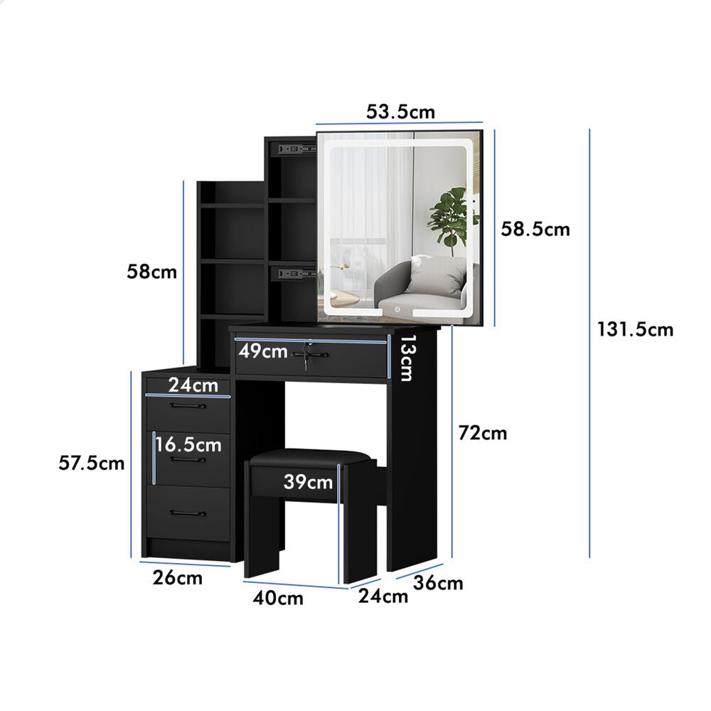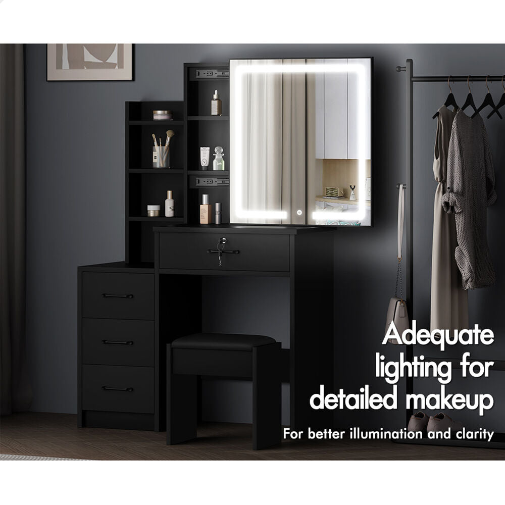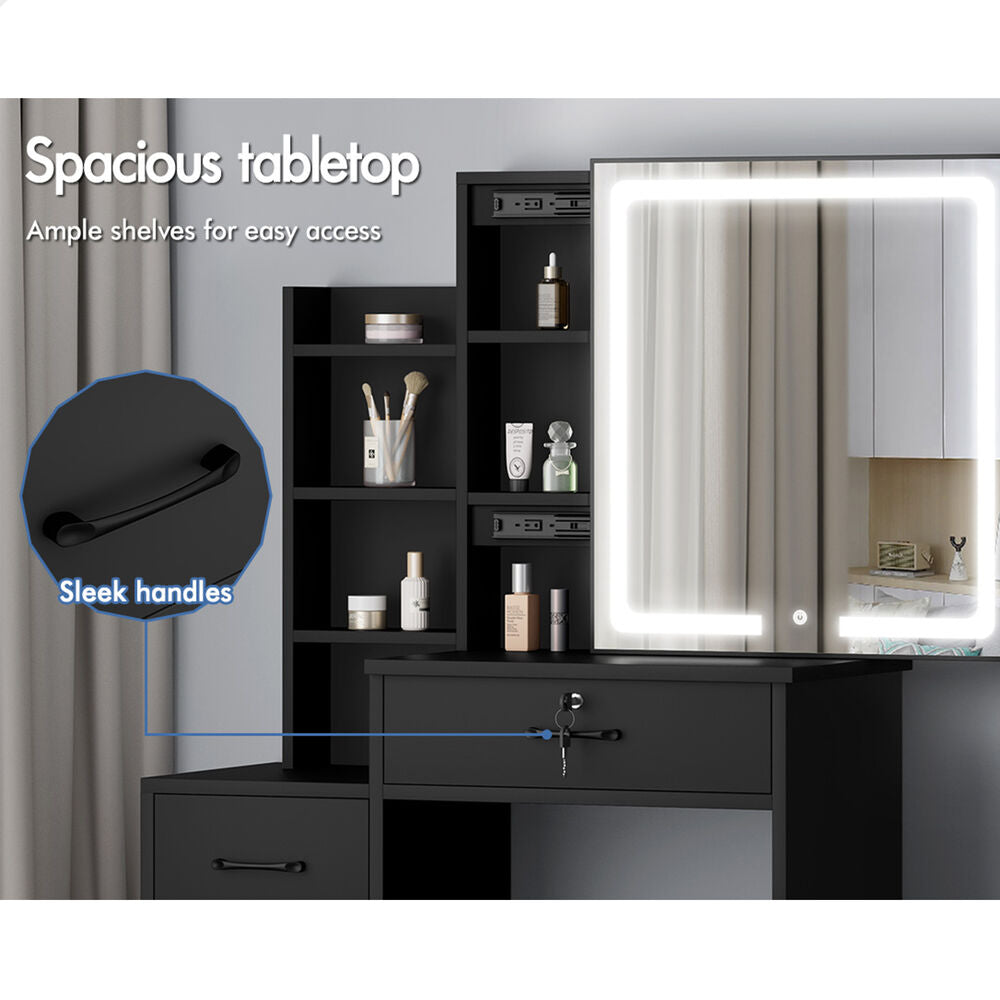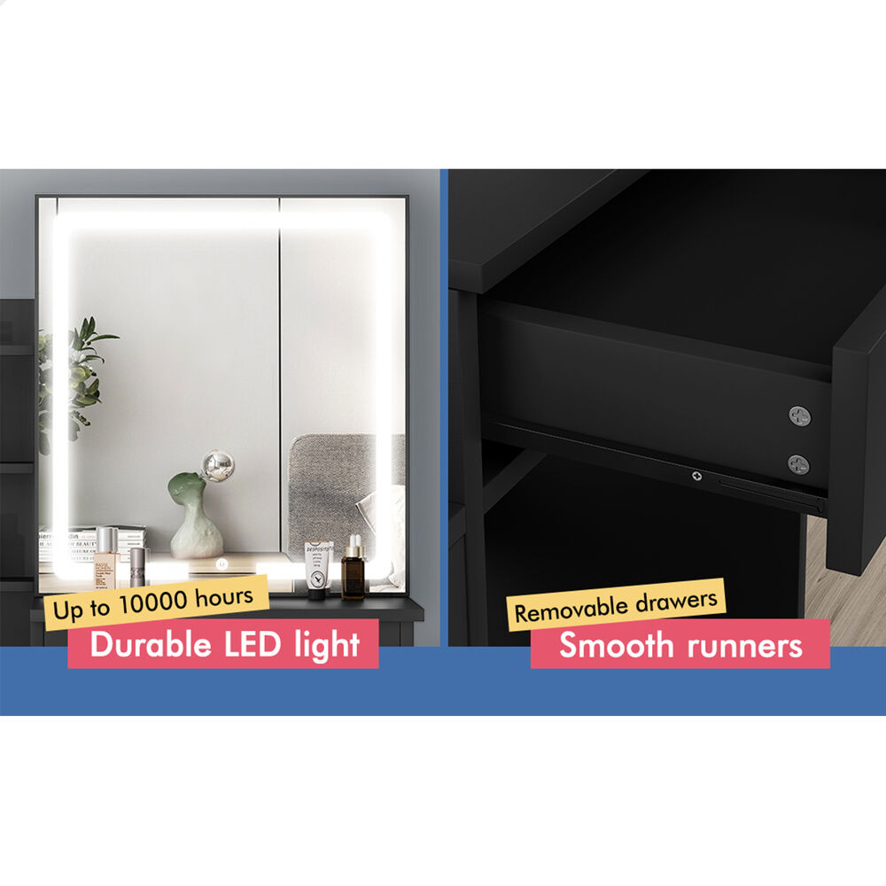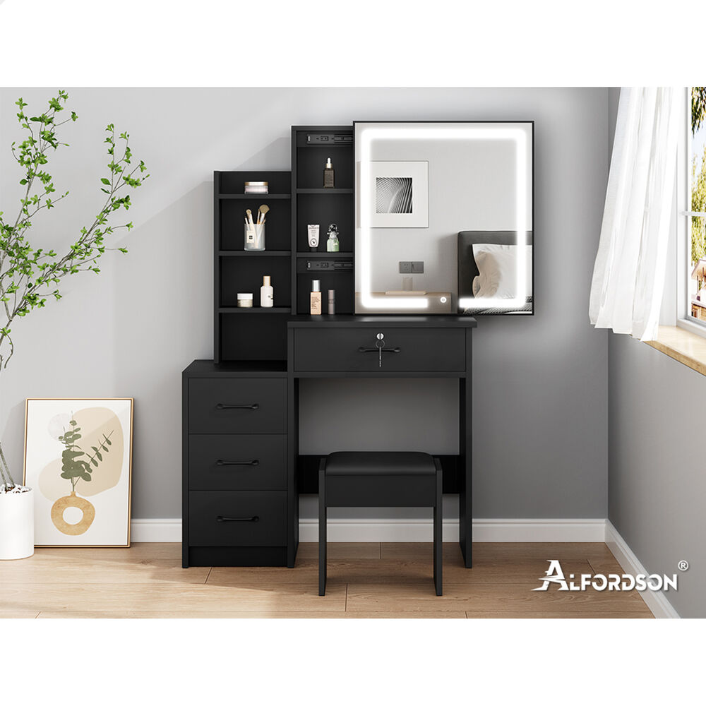 ALFORDSON Dressing Table Stool Set Makeup Mirror Vanity Desk Cabinet Black