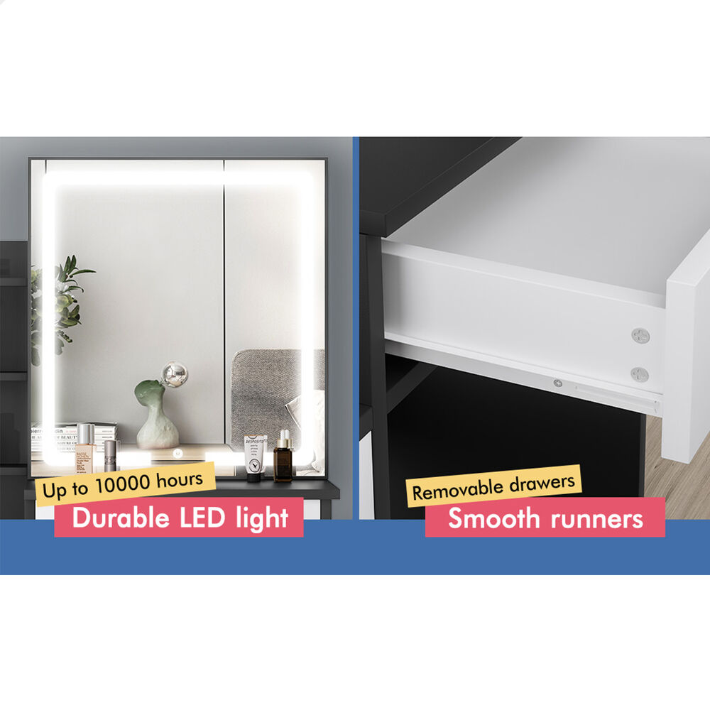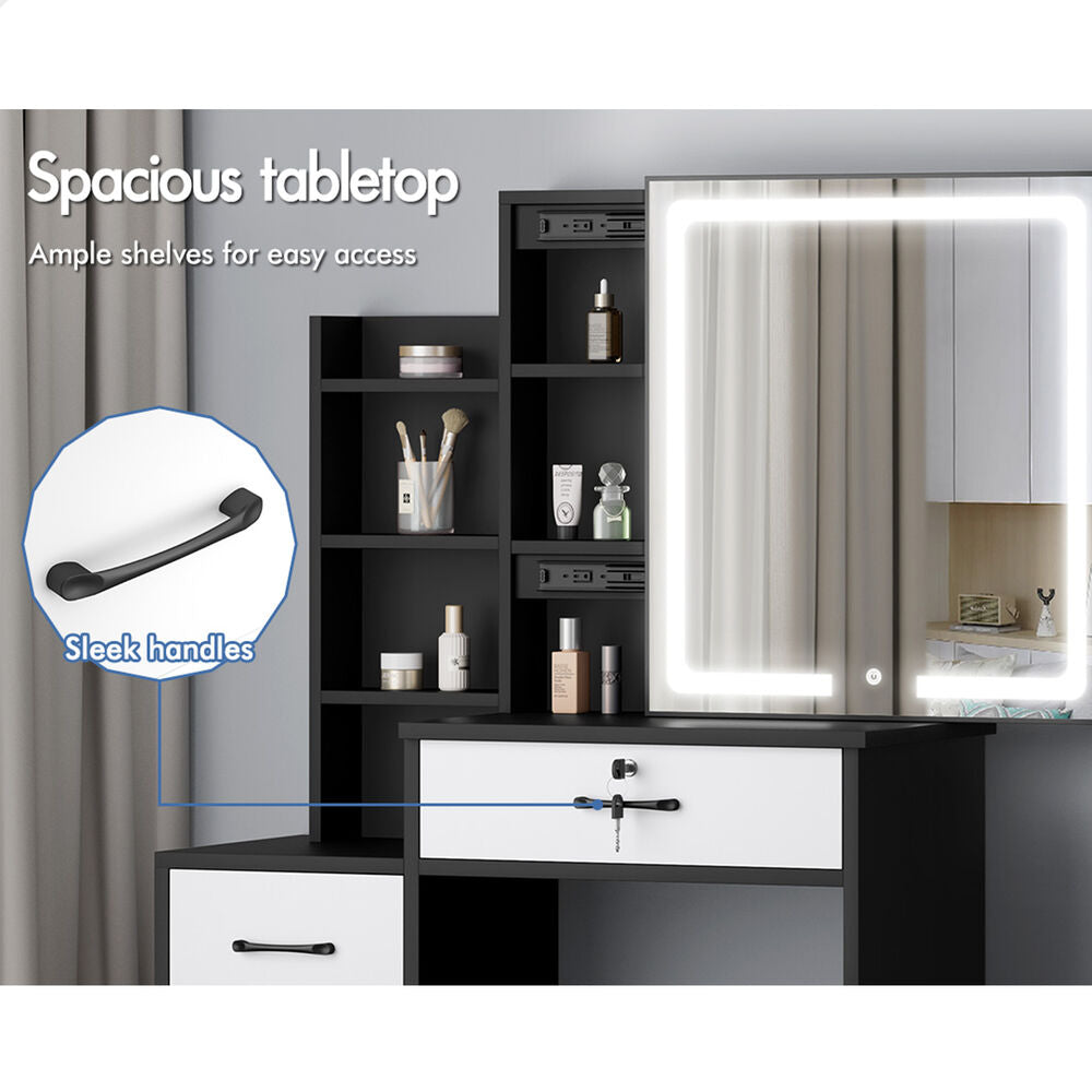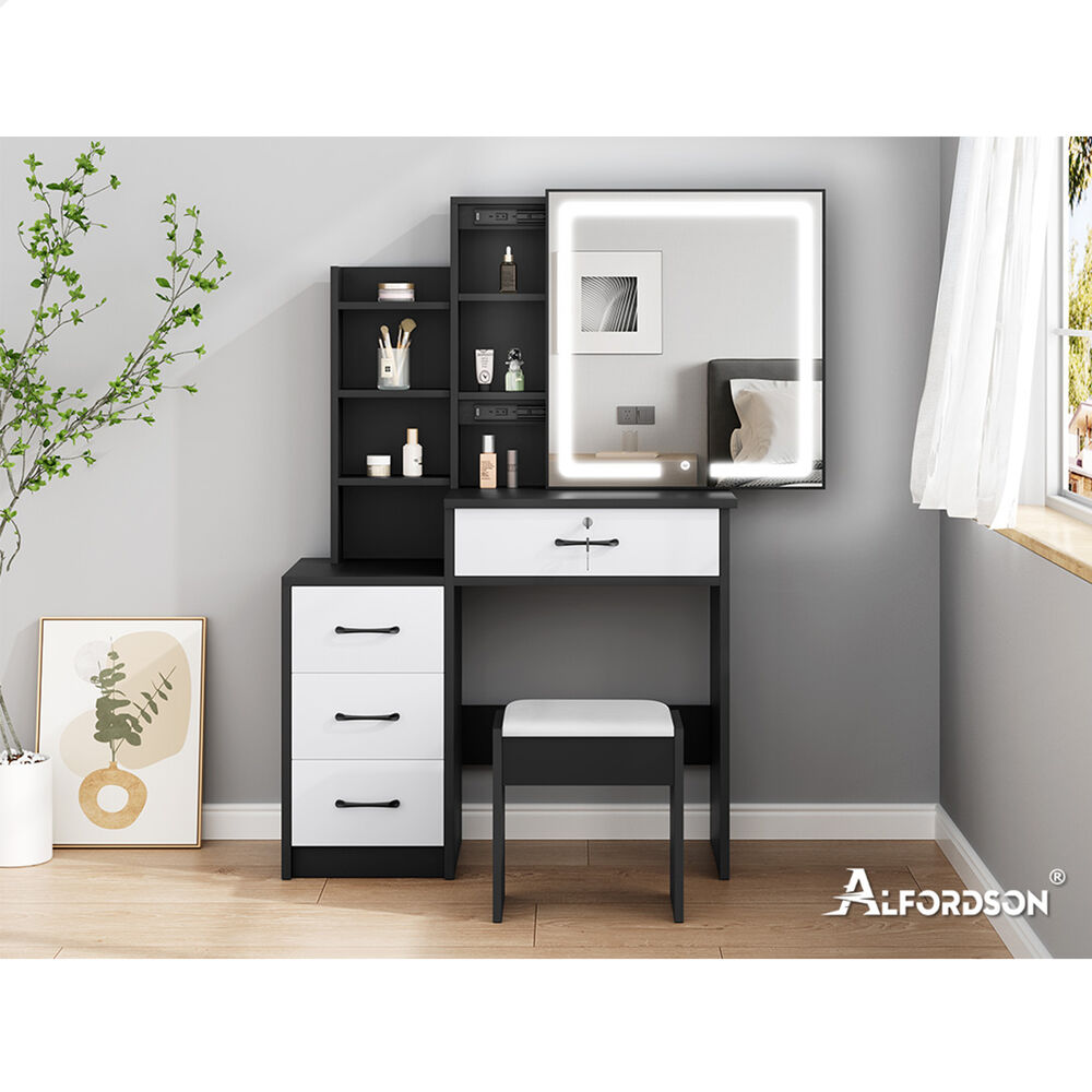 ALFORDSON Dressing Table Stool Set Makeup Mirror Vanity Desk Cabinet Black White