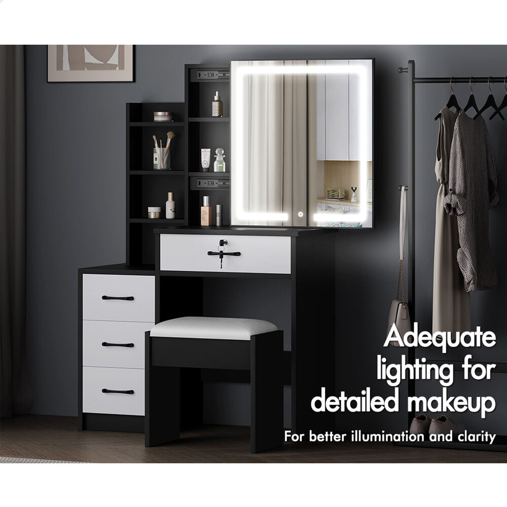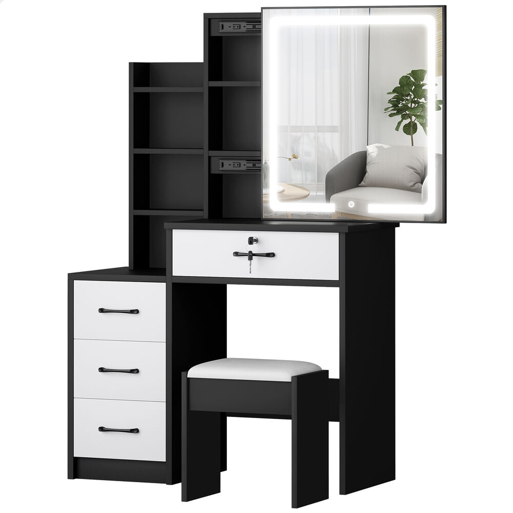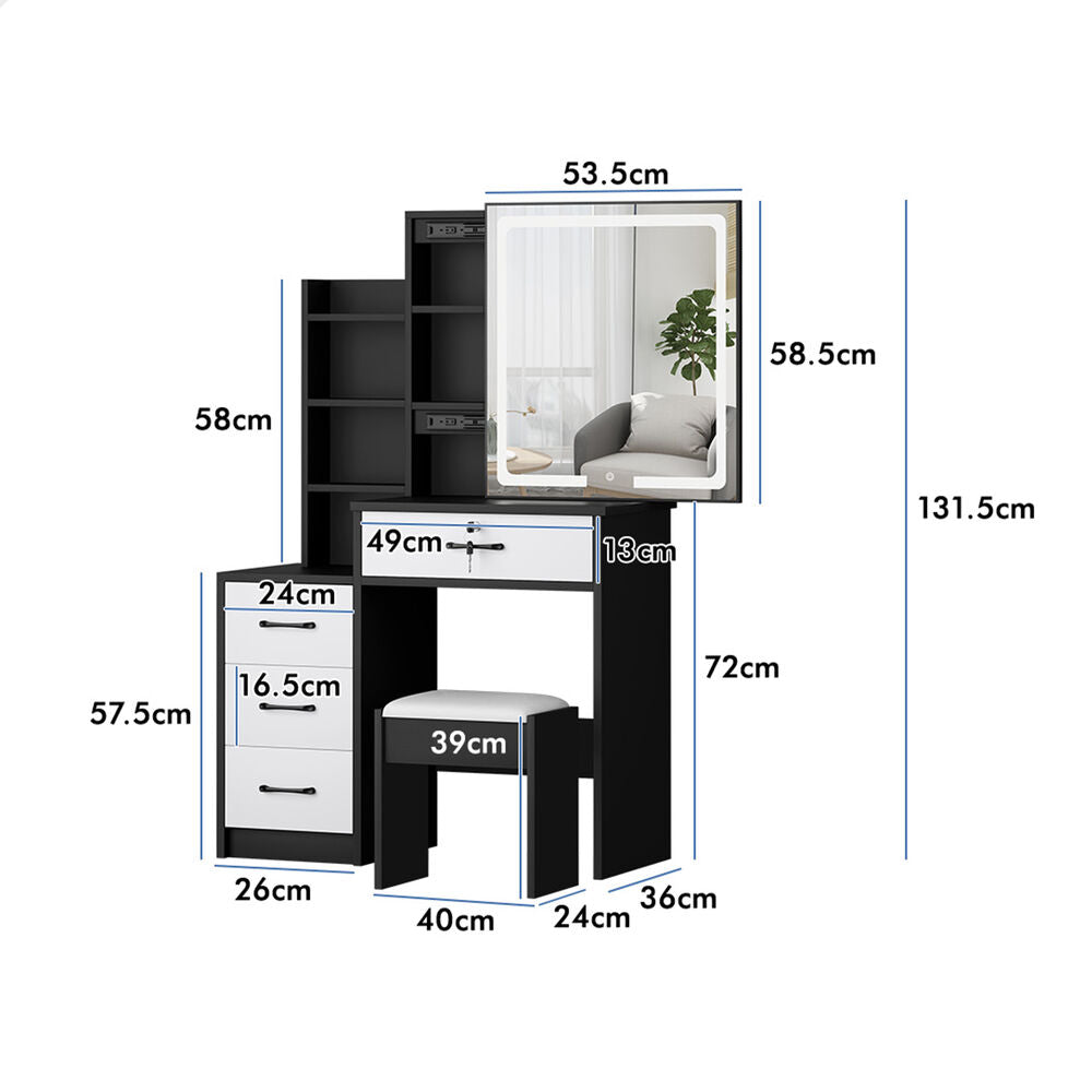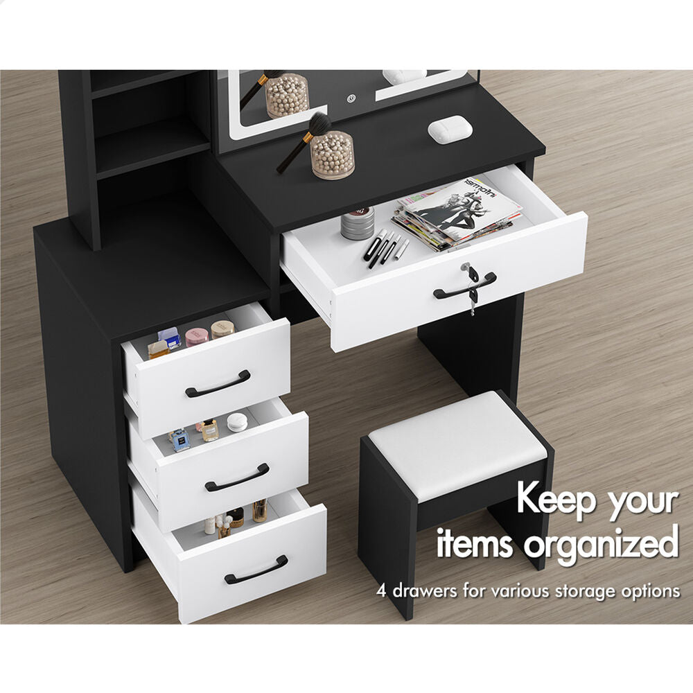 ALFORDSON Dressing Table Stool Set Makeup Mirror Vanity Desk Cabinet Black White