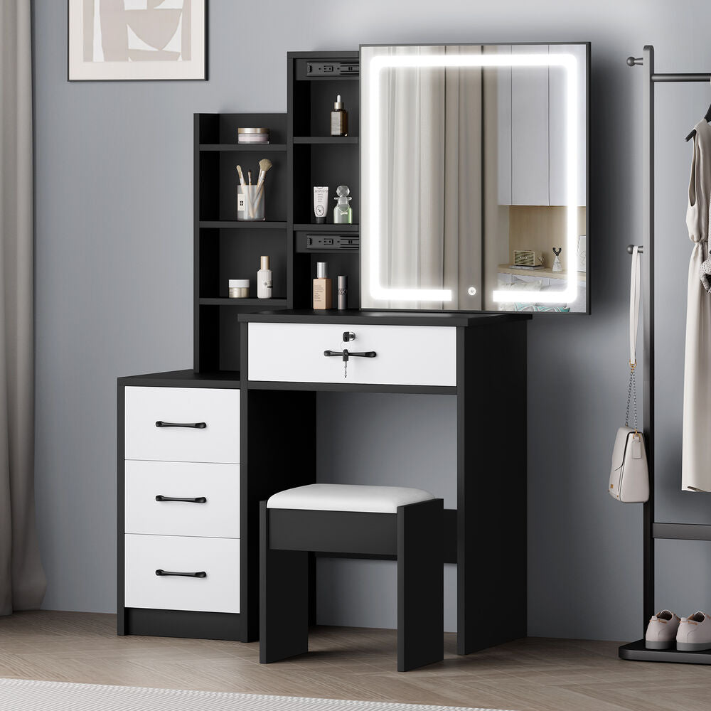 Comes with matching chair - The matching upholstered stool will provide you with a comfortable sitting position while applying make-up. Furthermore, the chair comes with lift-up lid for easy storage, which is a perfect spot for your blanket or hair-dryer.