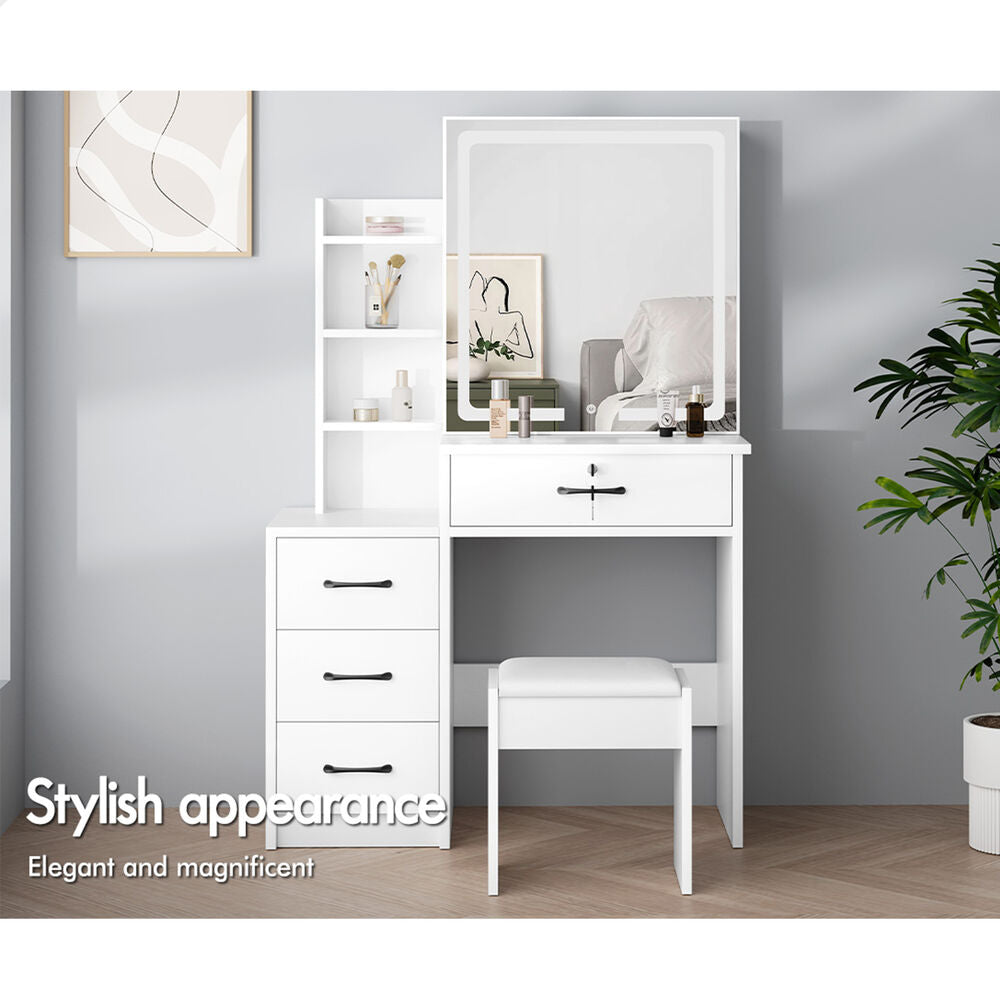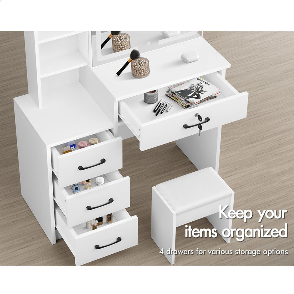Keep your items organized - It features open shelves, 4 drawers and hidden shelving for ample storage space. For items you want to access easily, like make-up products, lotions, or perfumes, you can simply put them on desktop of table. For other items, like jewellery, you can store them away in drawers so they won't gather dust. Featuring a side cabinet, this dressing table can serve as nightstand next to your bed for use.