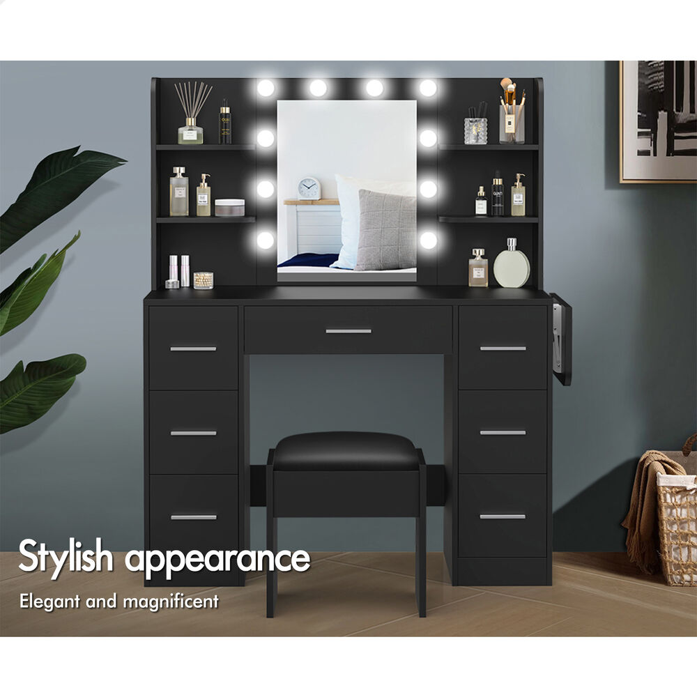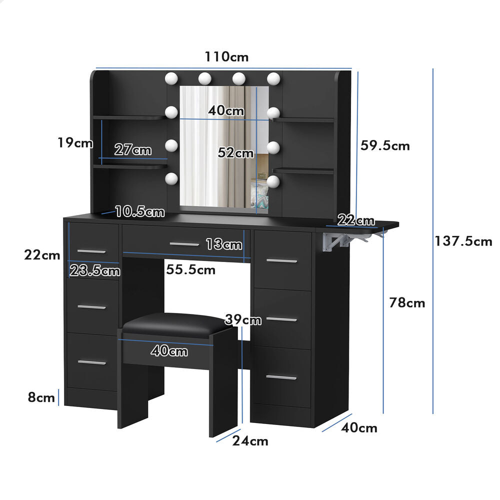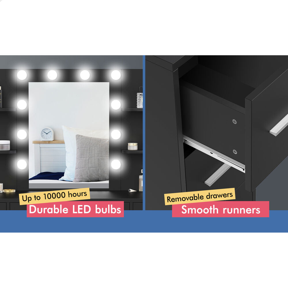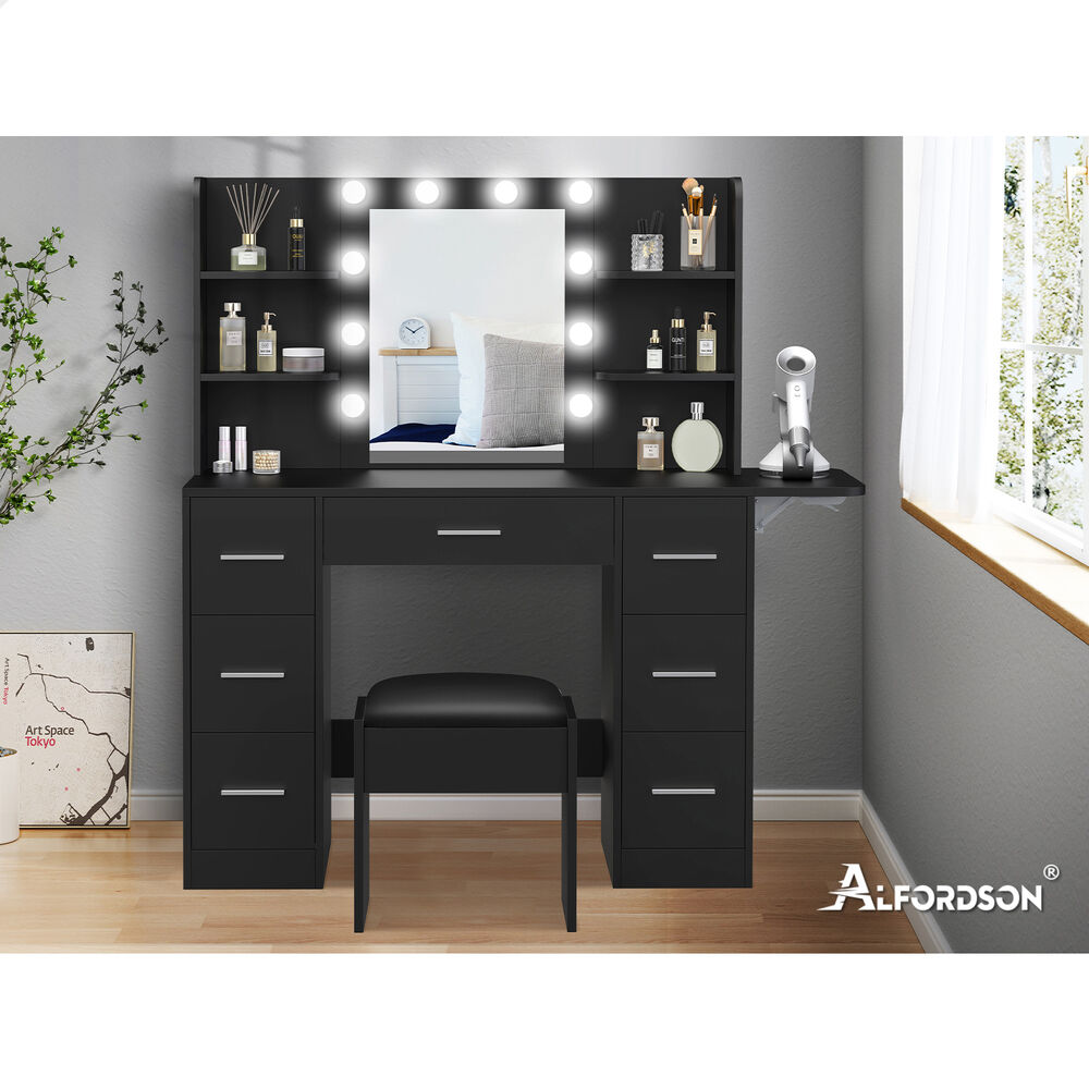 ALFORDSON Dressing Table Stool Set Makeup Mirror Vanity Desk LED Bulbs Black
