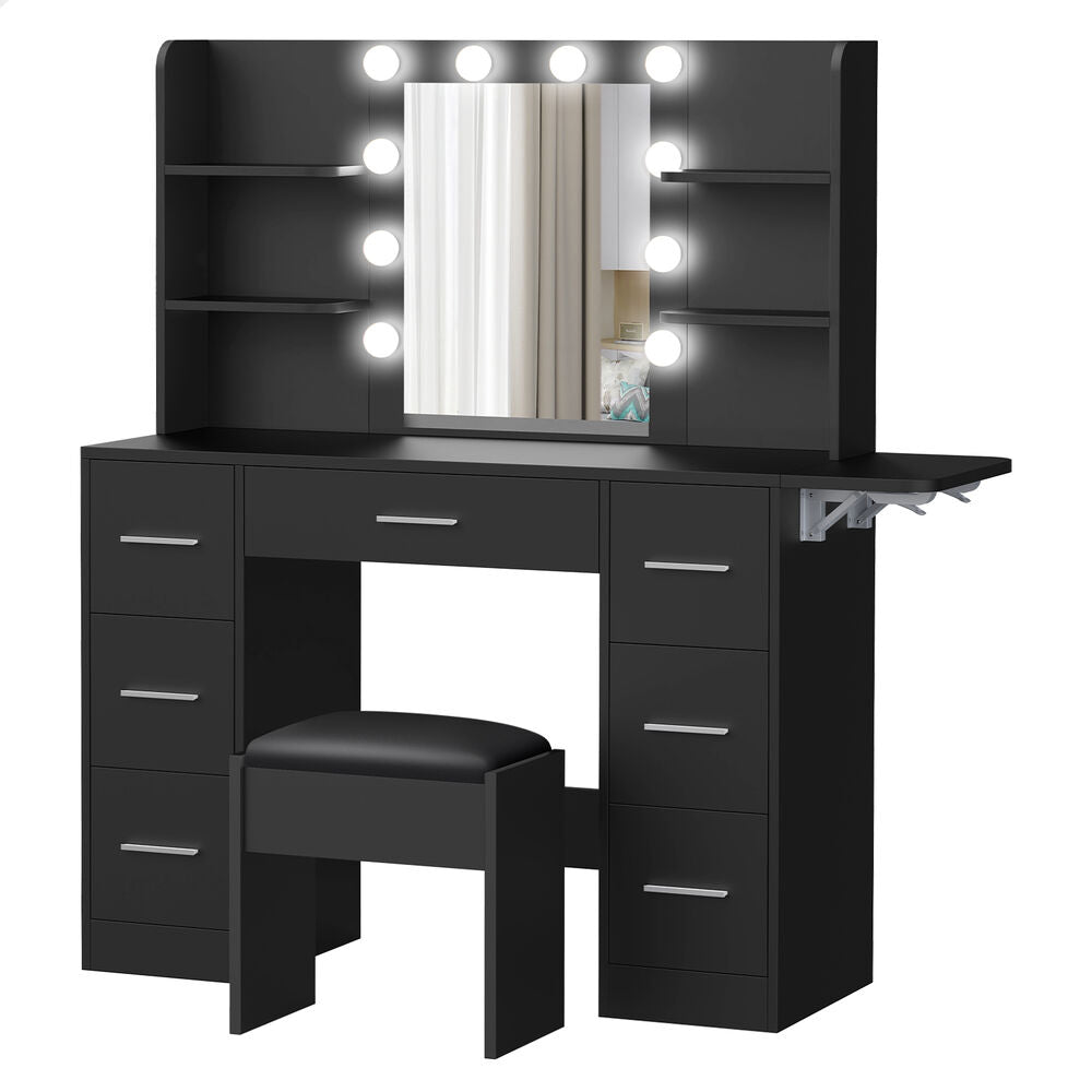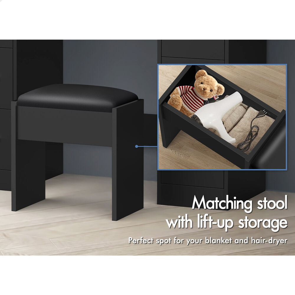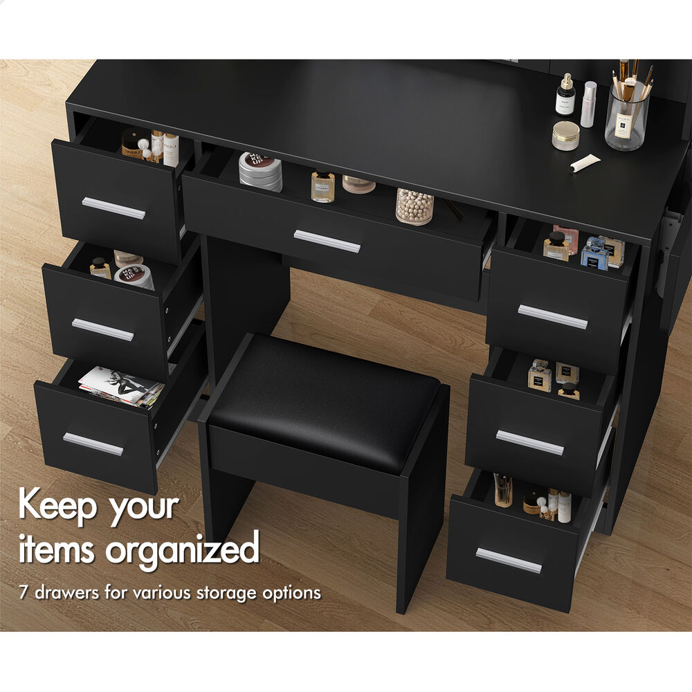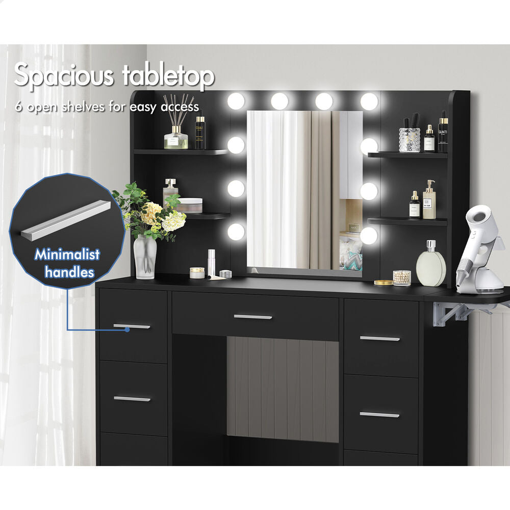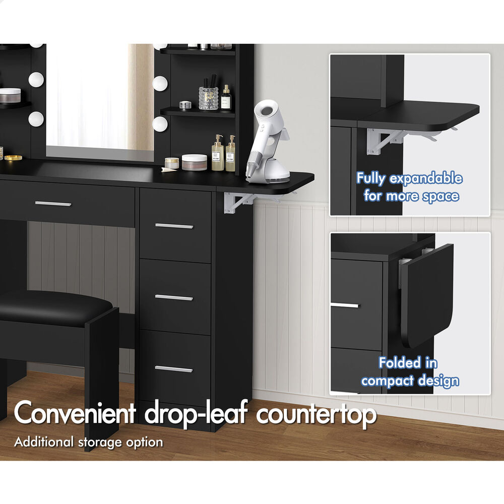 ALFORDSON Dressing Table Stool Set Makeup Mirror Vanity Desk LED Bulbs Black