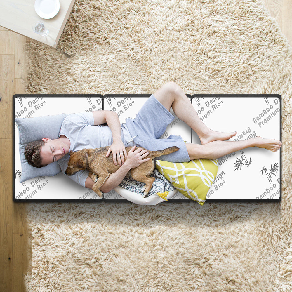 The silky velvet fabric is so gentle and skin-friendly. It covers the odourless premium density foam, with no chemical smell at all. Featuring high breathability, thermal and sound insulating, our folding mattress is also certified by SGS as anti-dust mite, and granted authorization to OEKO-TEX.