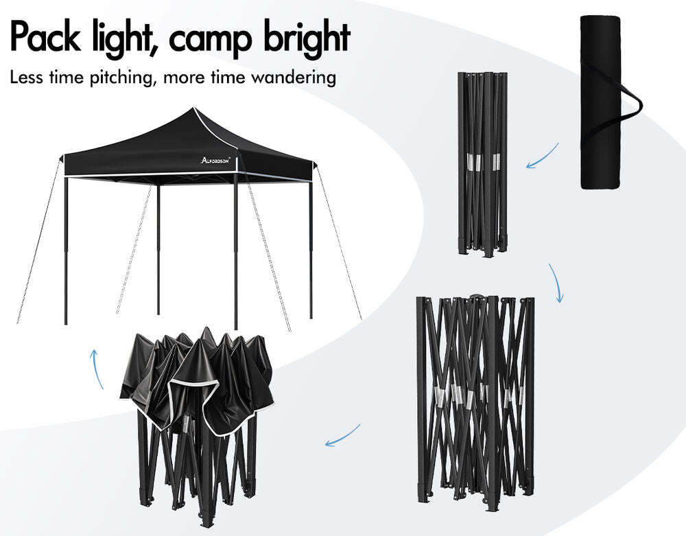 ALFORDSON Gazebo 3x3m Pop Up Marquee 600D Oxford Folding Outdoor Tent Black