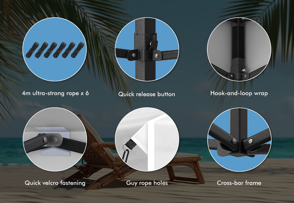 Made from high-quality 600D Oxford fabric, our gazebo is built to endure the Australian weather's challenges, such as extreme sunlight, heavy rain, and occasional wind gusts. Its robust frame, accompanied by 6 ropes and 6 pegs, guarantees stability and long-lasting durability, while the canopy offers significant shade and shields against harmful UV rays.