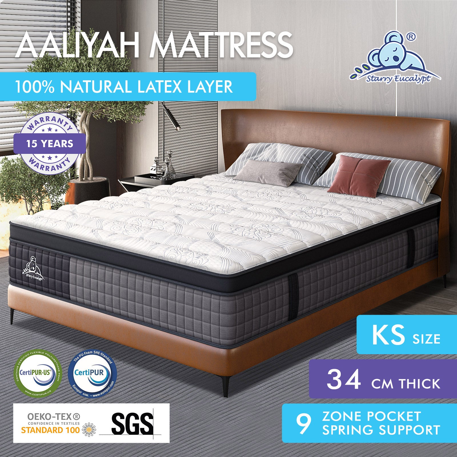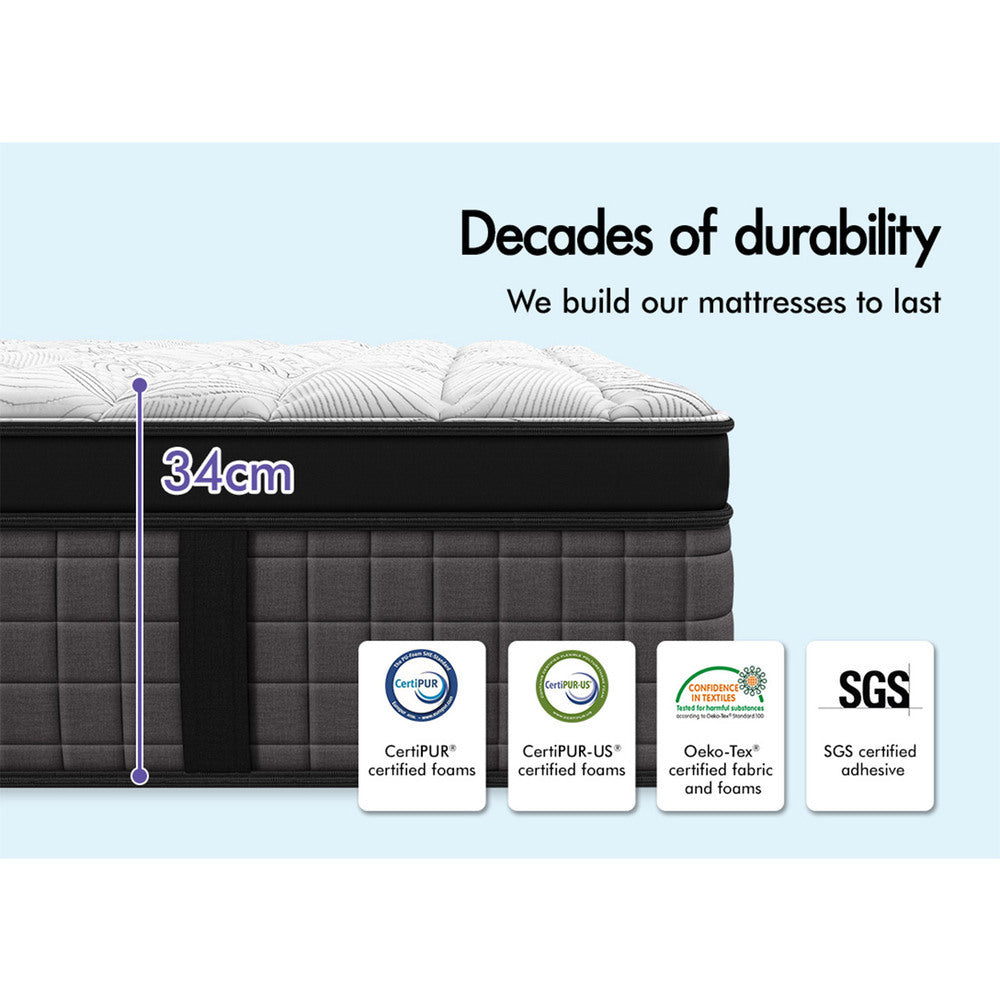 STARRY EUCALYPT Mattress Pocket Spring King Single Size Latex Euro Top 34cm 9 zone