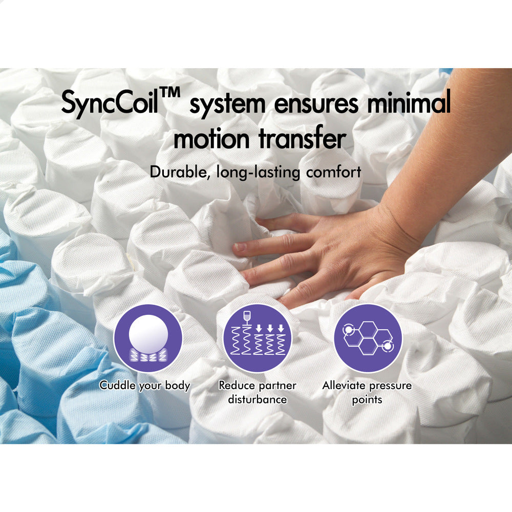 Aside from being comfortable, our SyncCoilTM system inside the mattress is targeted supportive. Featuring 7-zone independent pocketed innerspring design with edge support, your body weight is evenly absorbed and distributed comprehensively from head to toe throughout the mattress. The spring system can also minimize motion transfer and avoid partner disturbance, which ensures you a relaxed and a good night sleep.